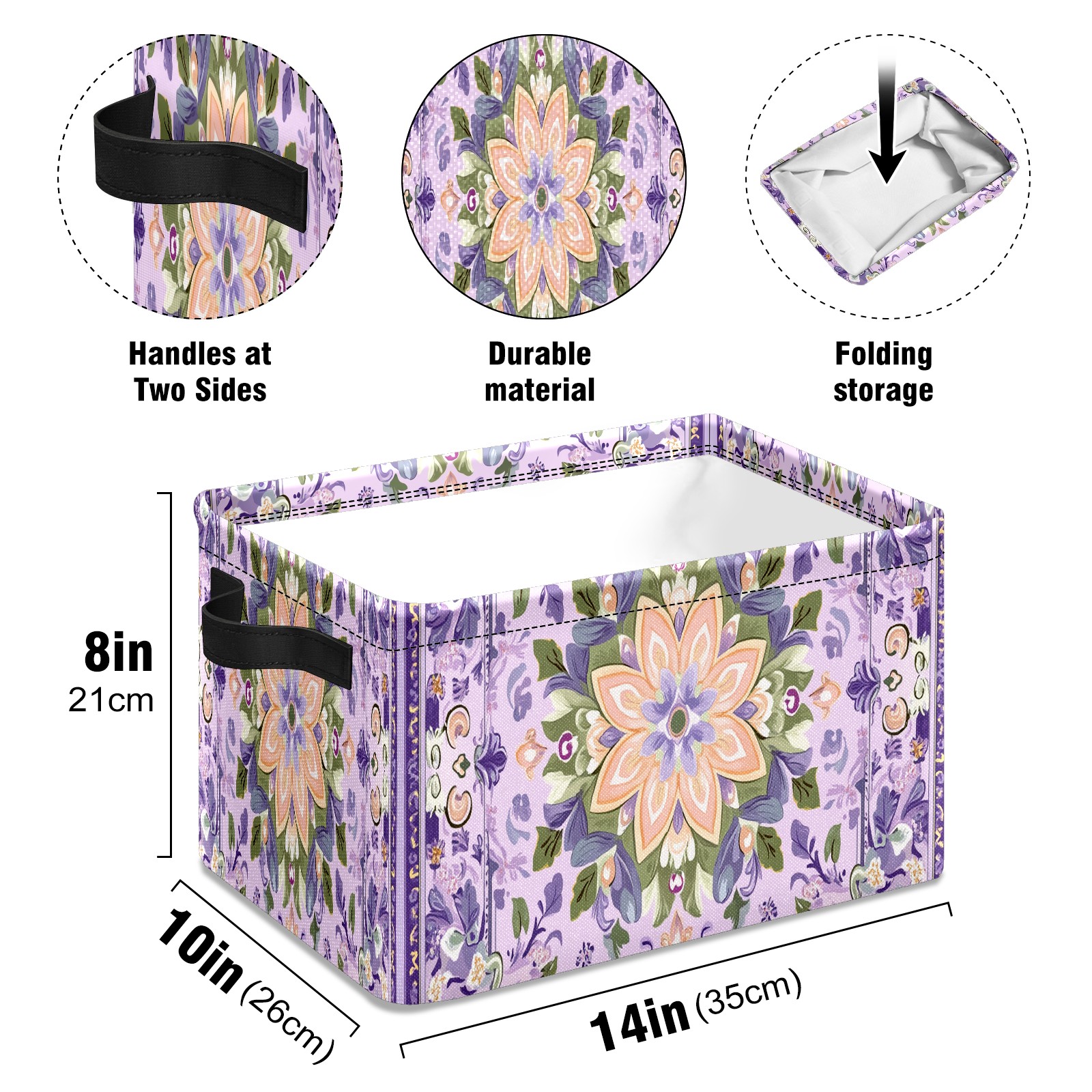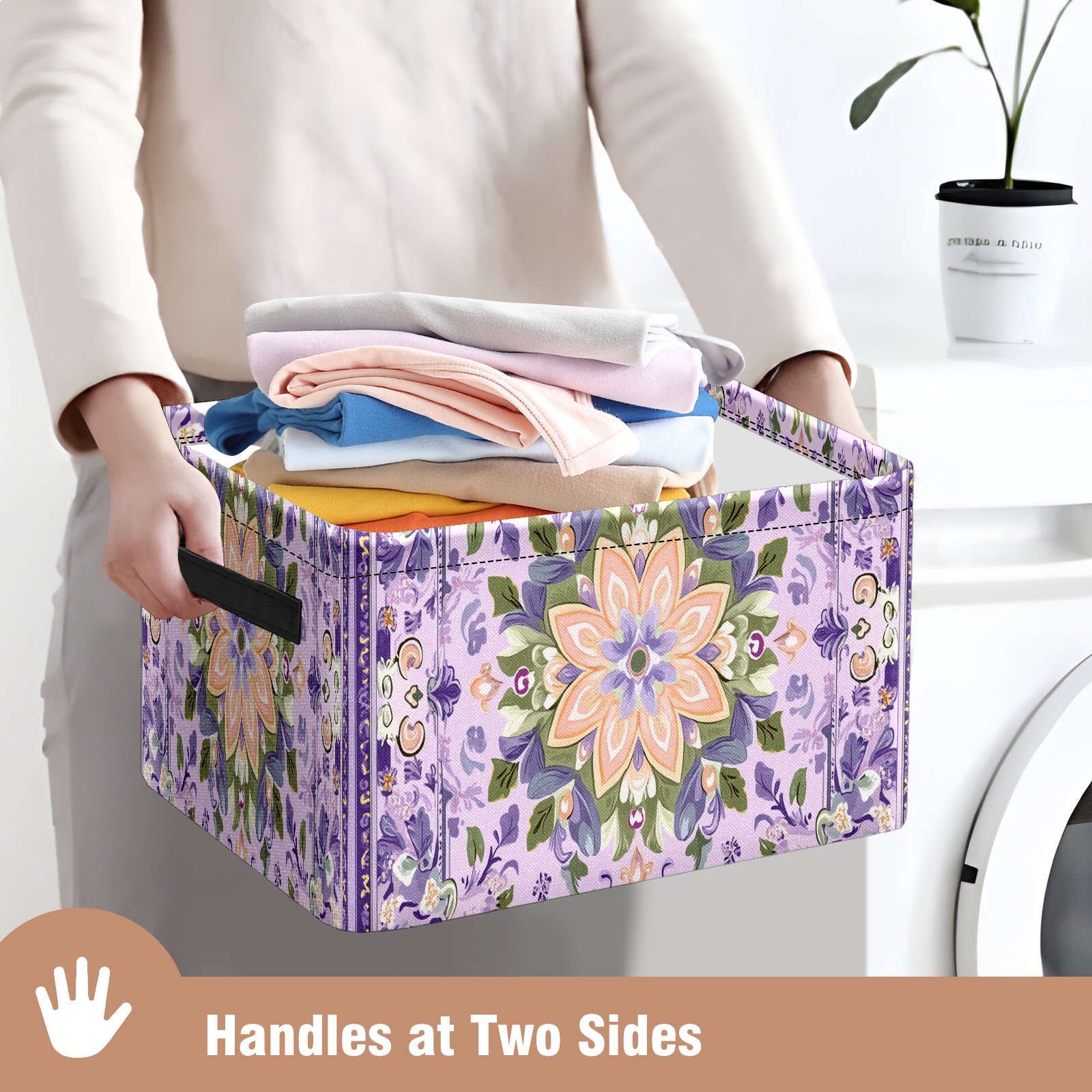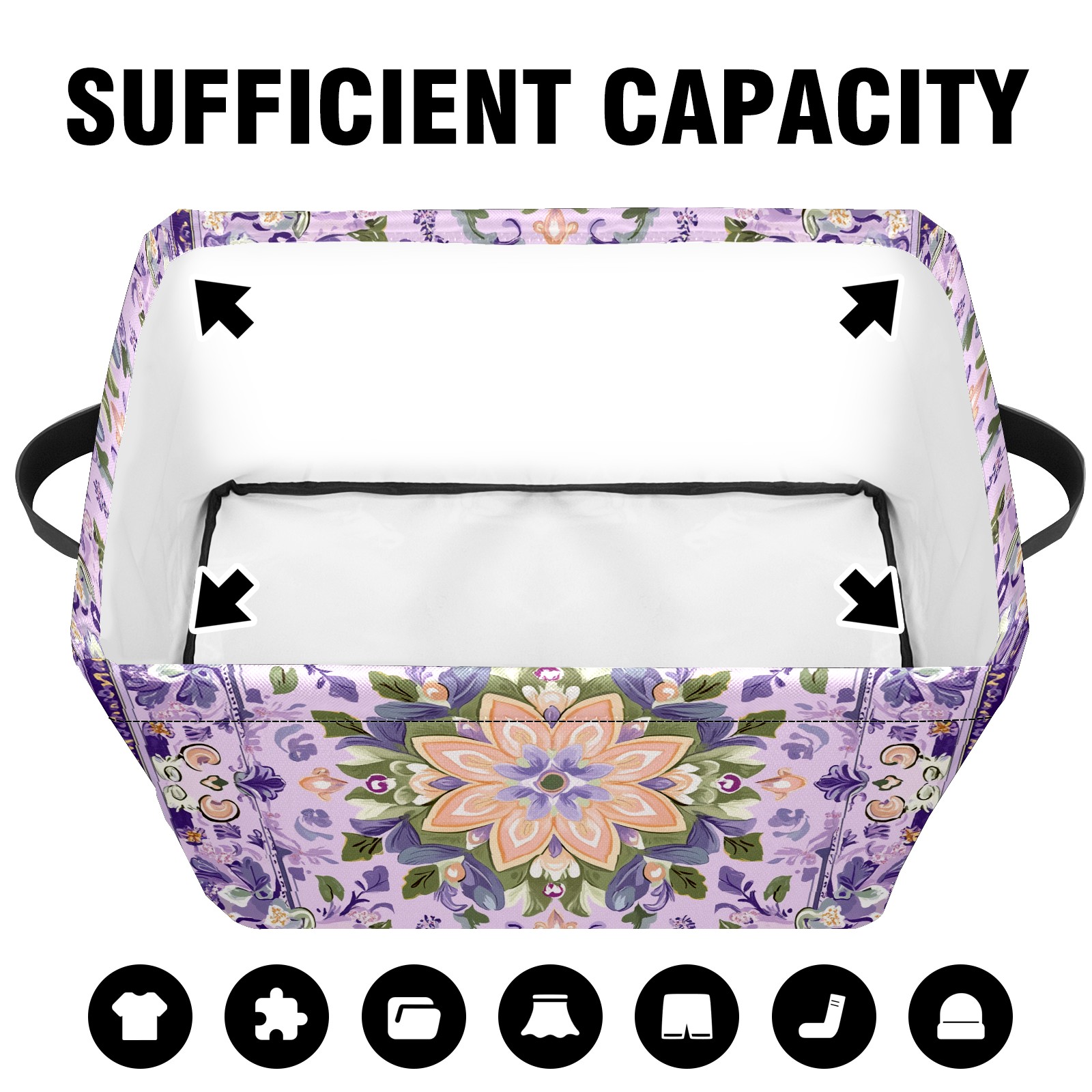 Foldable and Stackable Fabric Storage Basket for Home Organization with Handles, Decorative Closet Bins for Shelves and Laundry Storage( Dark Purple Green Pattern)