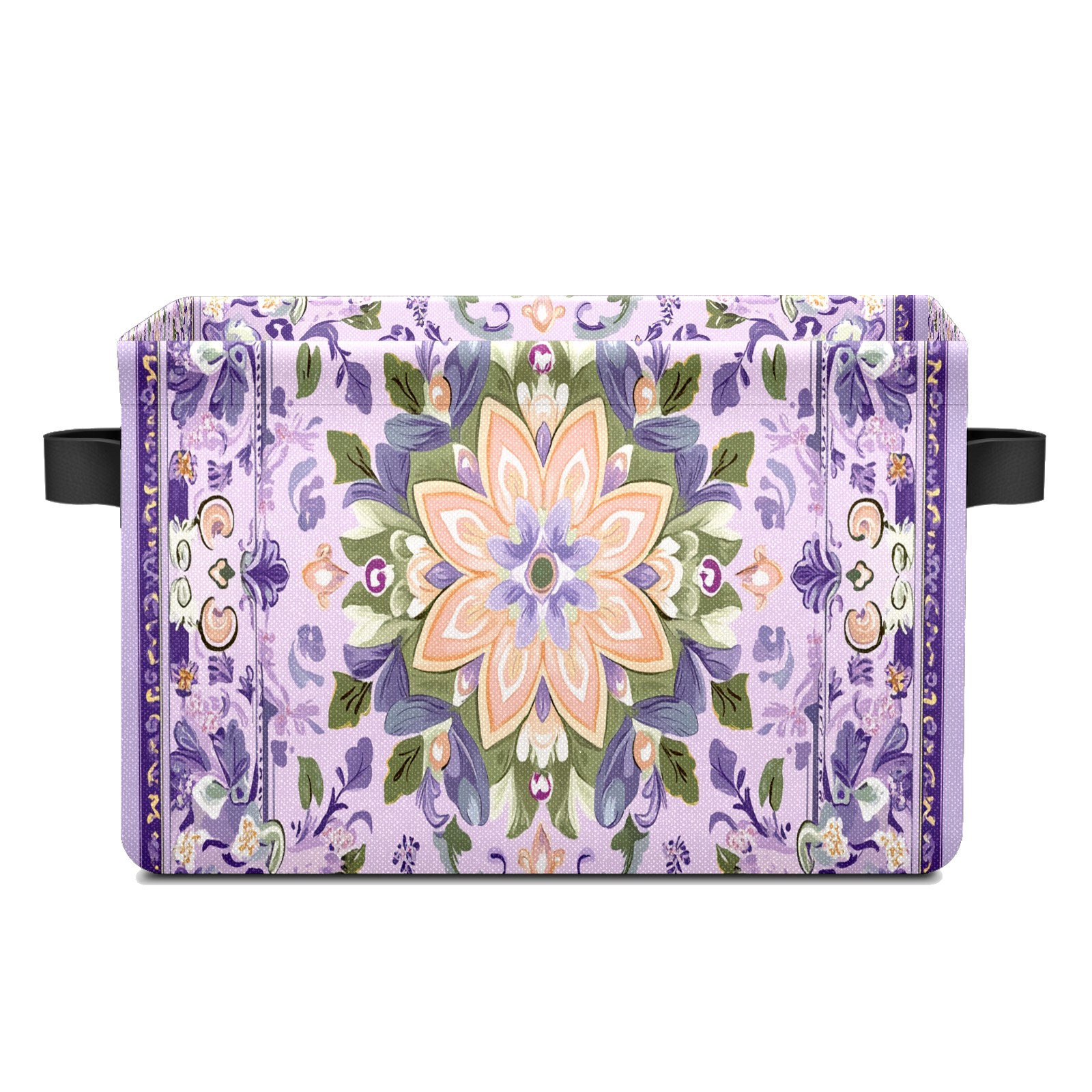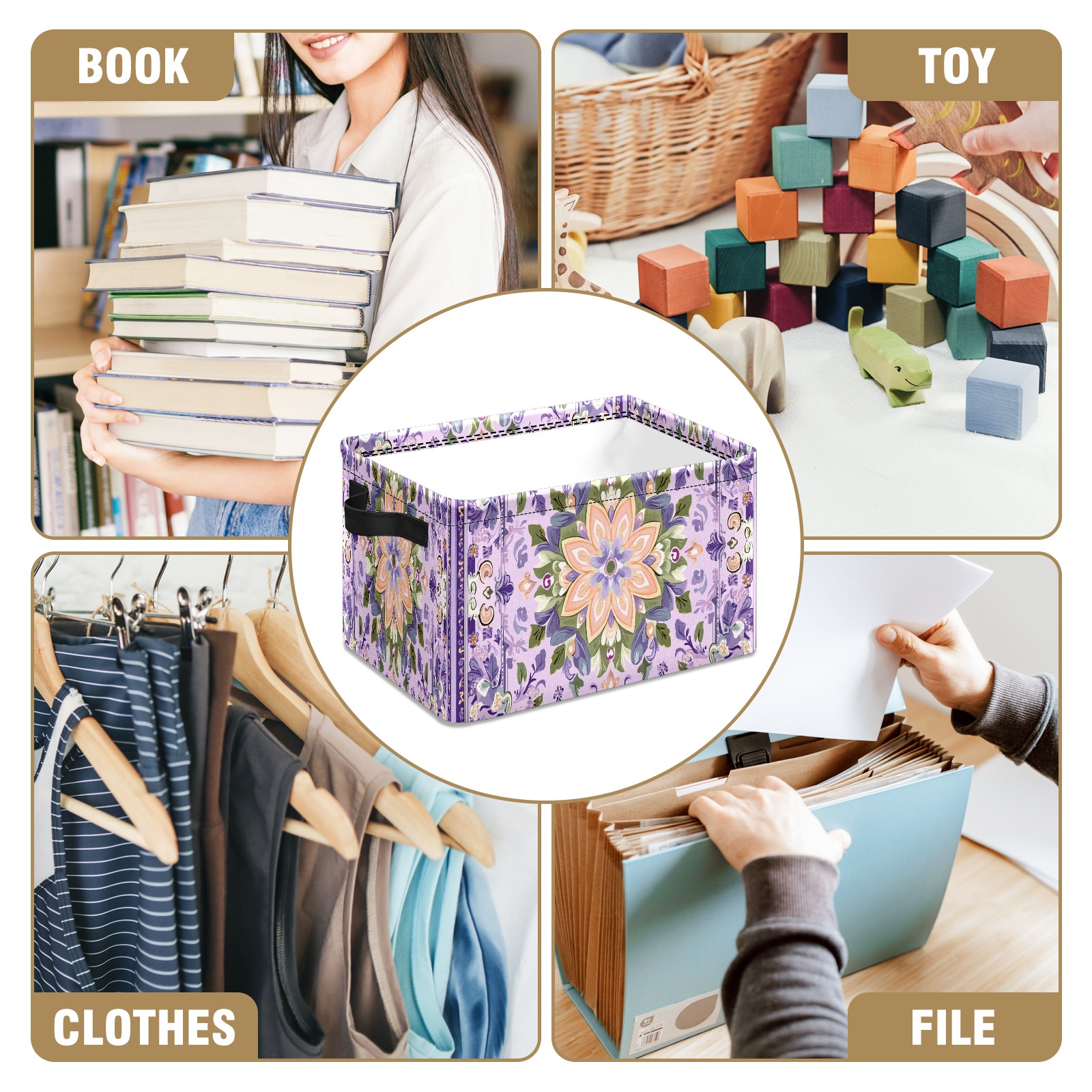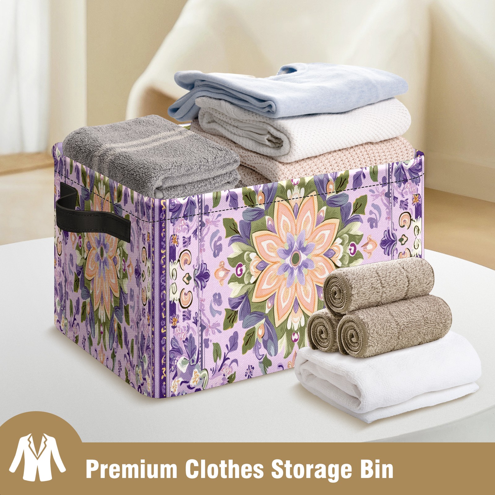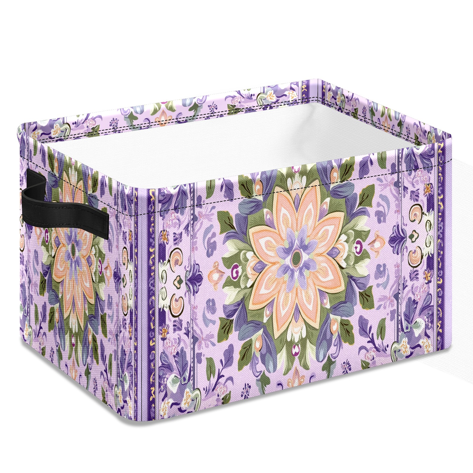 Foldable and Stackable Fabric Storage Basket for Home Organization with Handles, Decorative Closet Bins for Shelves and Laundry Storage( Dark Purple Green Pattern)