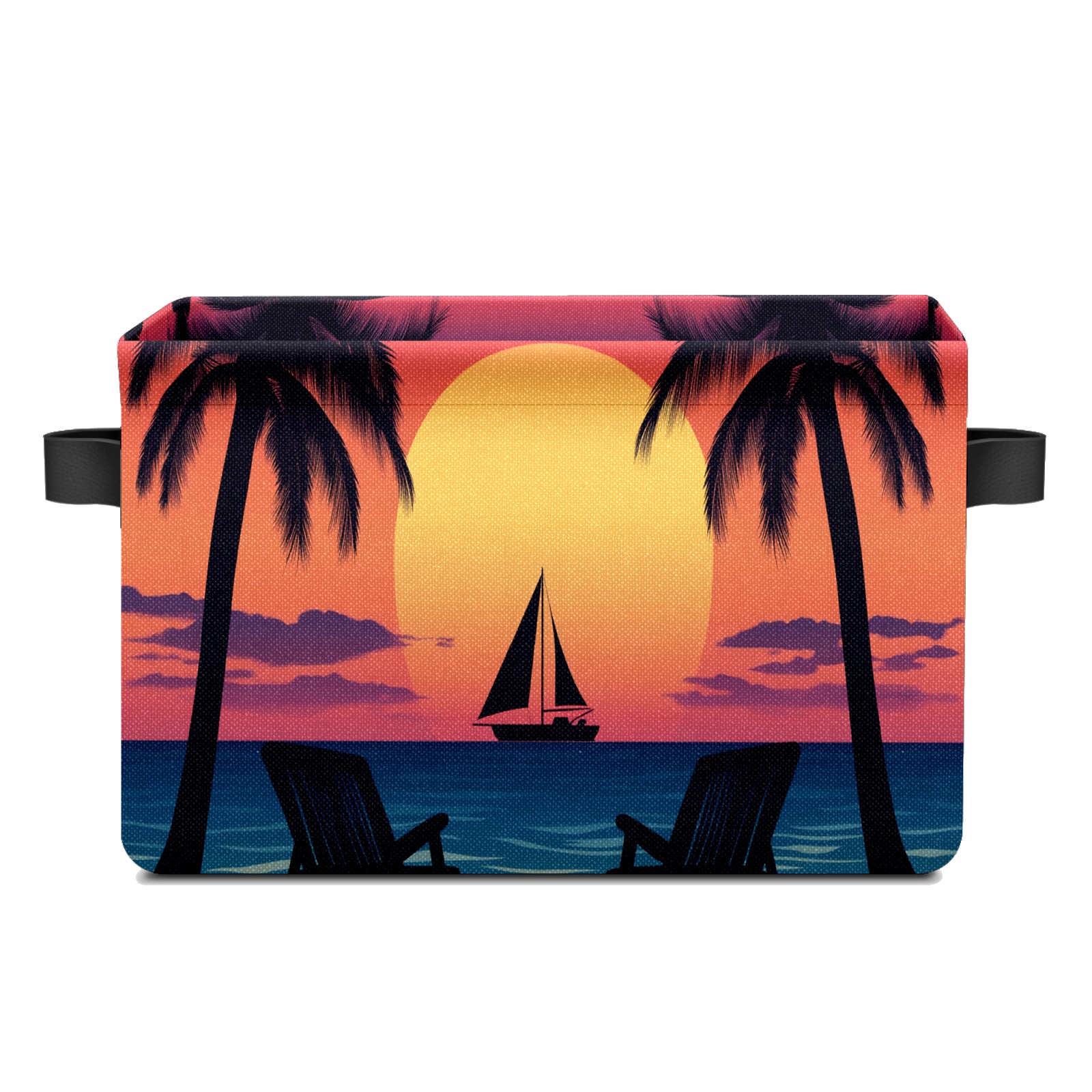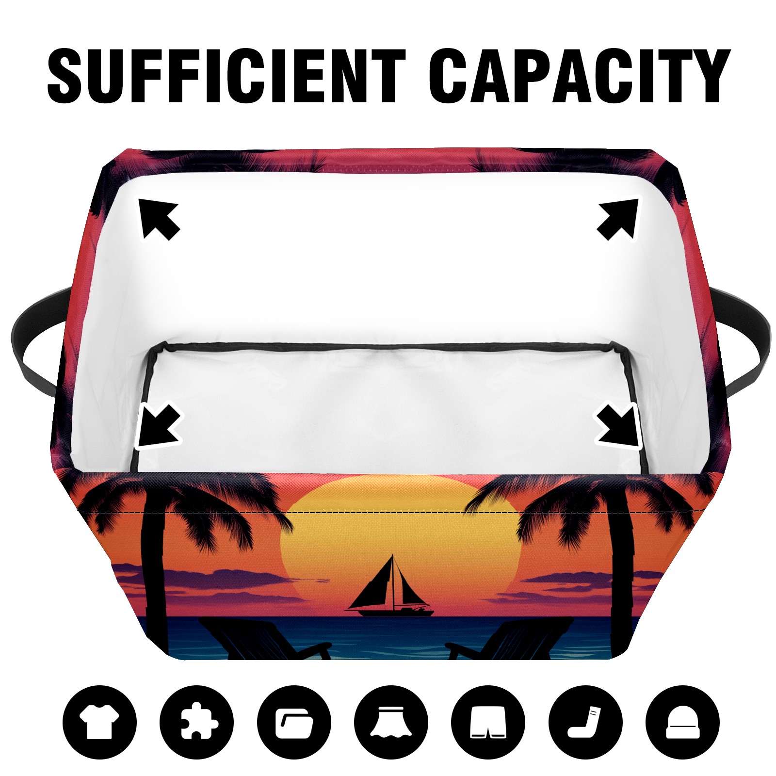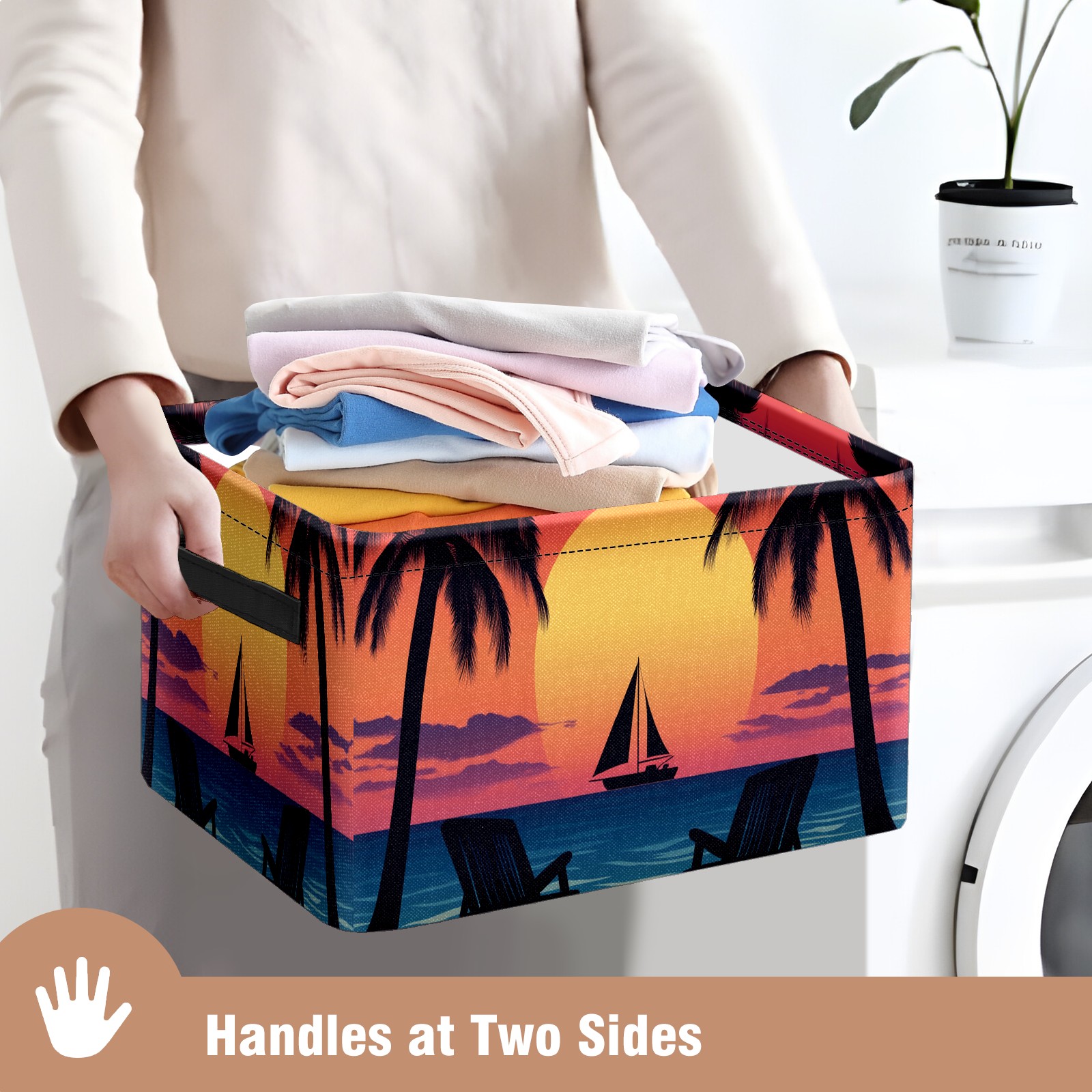 Foldable and Stackable Fabric Storage Basket for Home Organization with Handles, Decorative Closet Bins for Shelves and Laundry Storage( Orange Sunset Sailboat)
