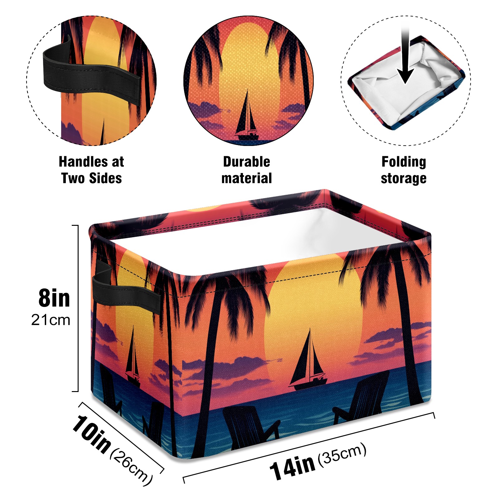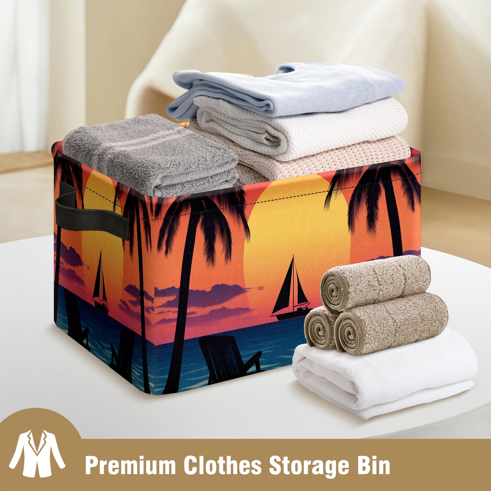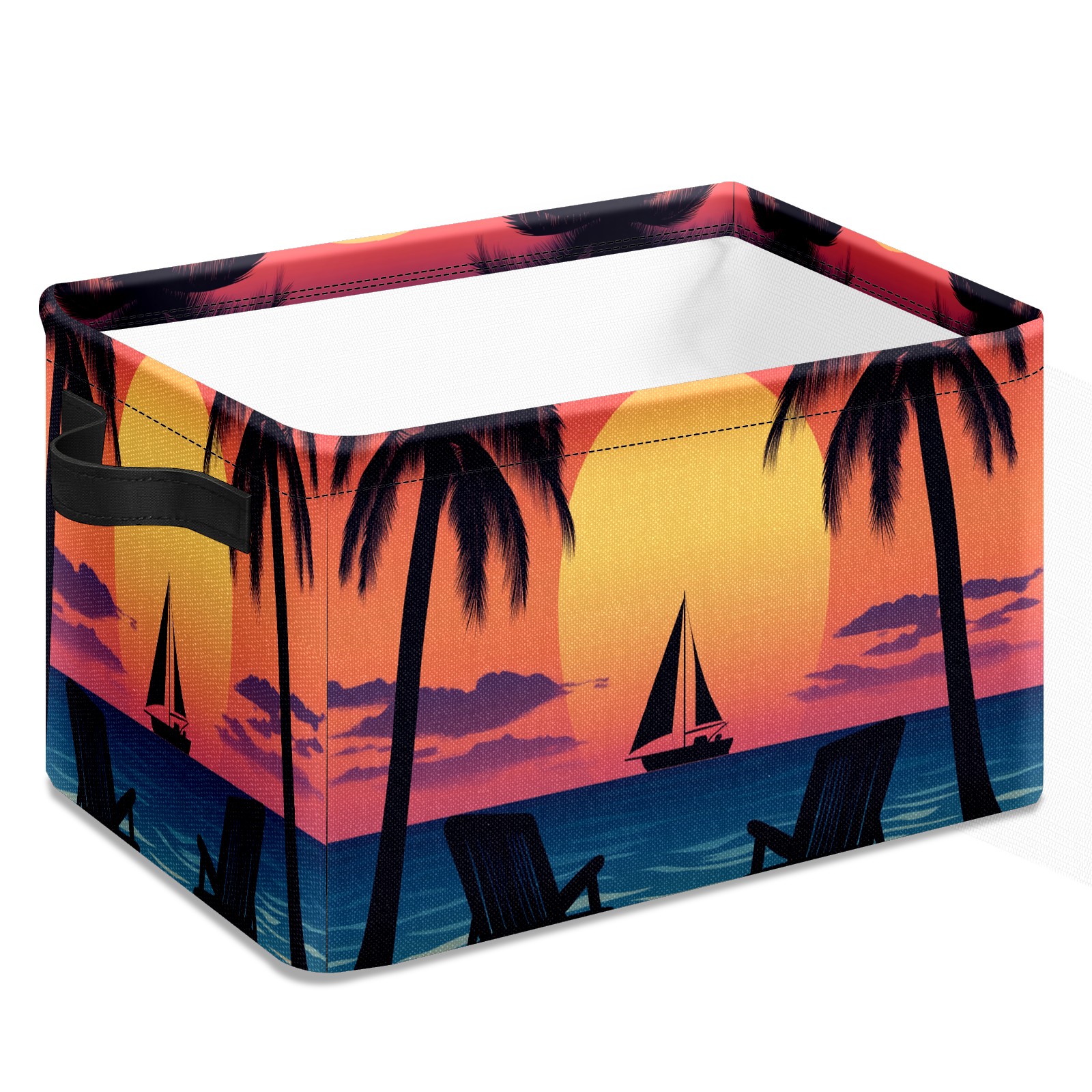 Foldable and Stackable Fabric Storage Basket for Home Organization with Handles, Decorative Closet Bins for Shelves and Laundry Storage( Orange Sunset Sailboat)