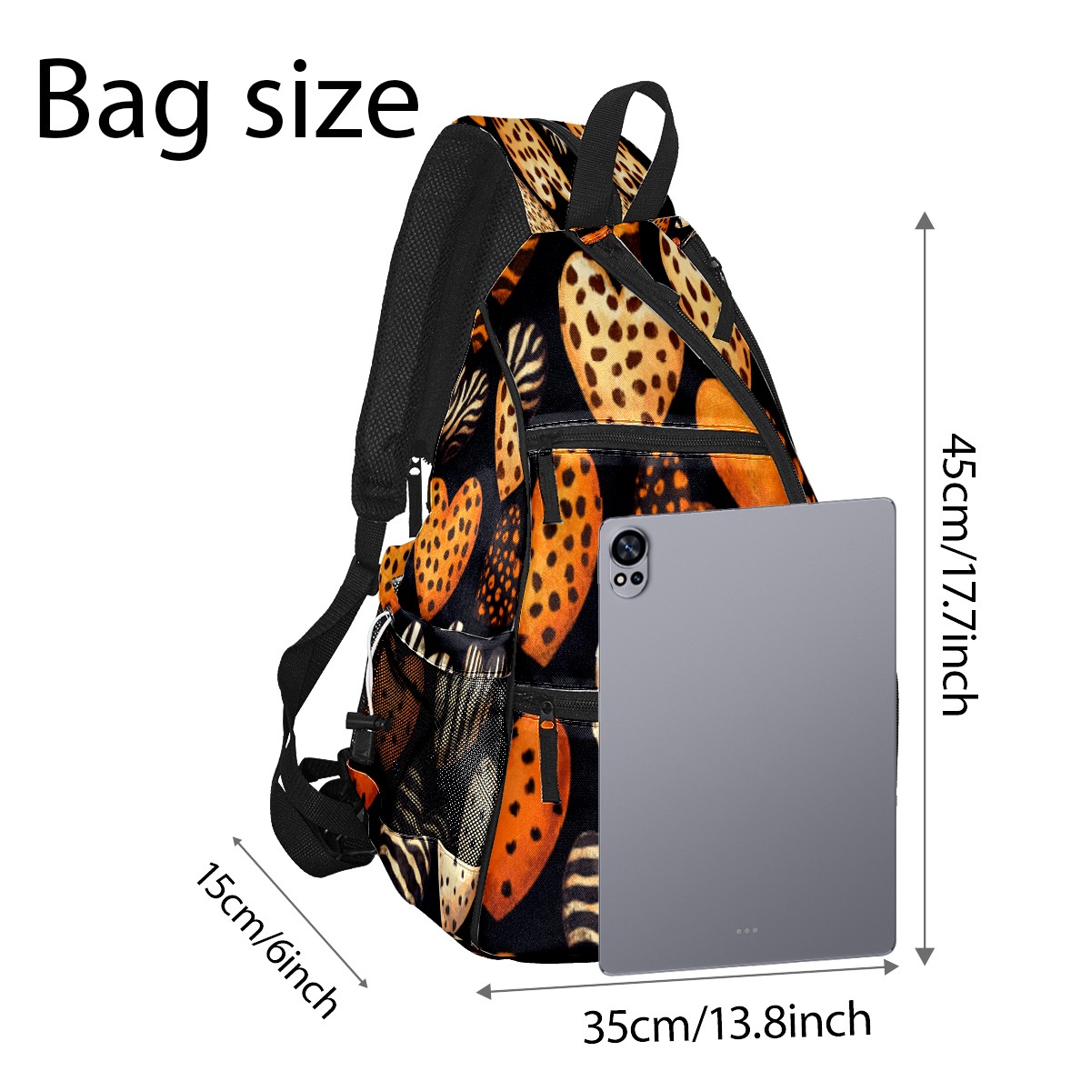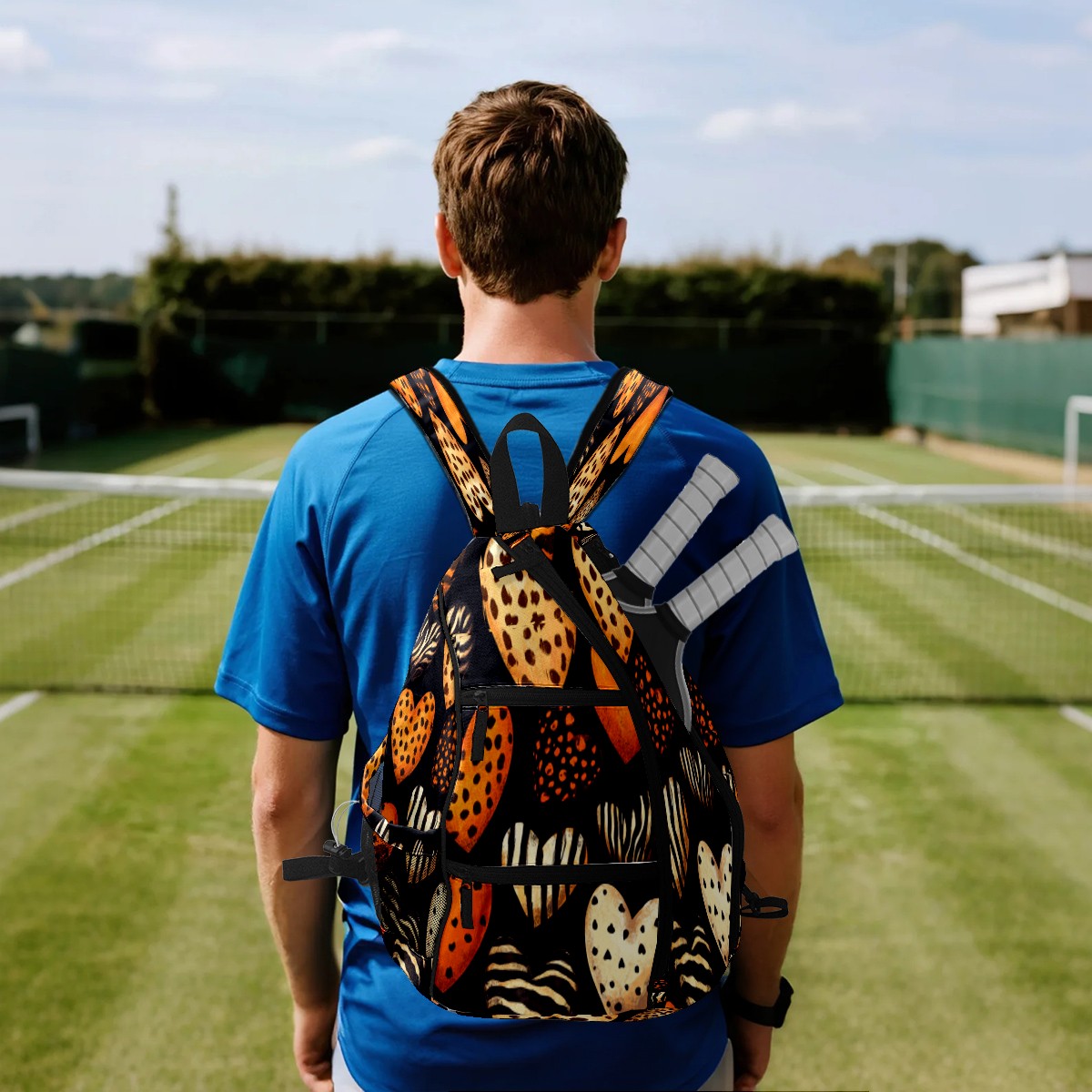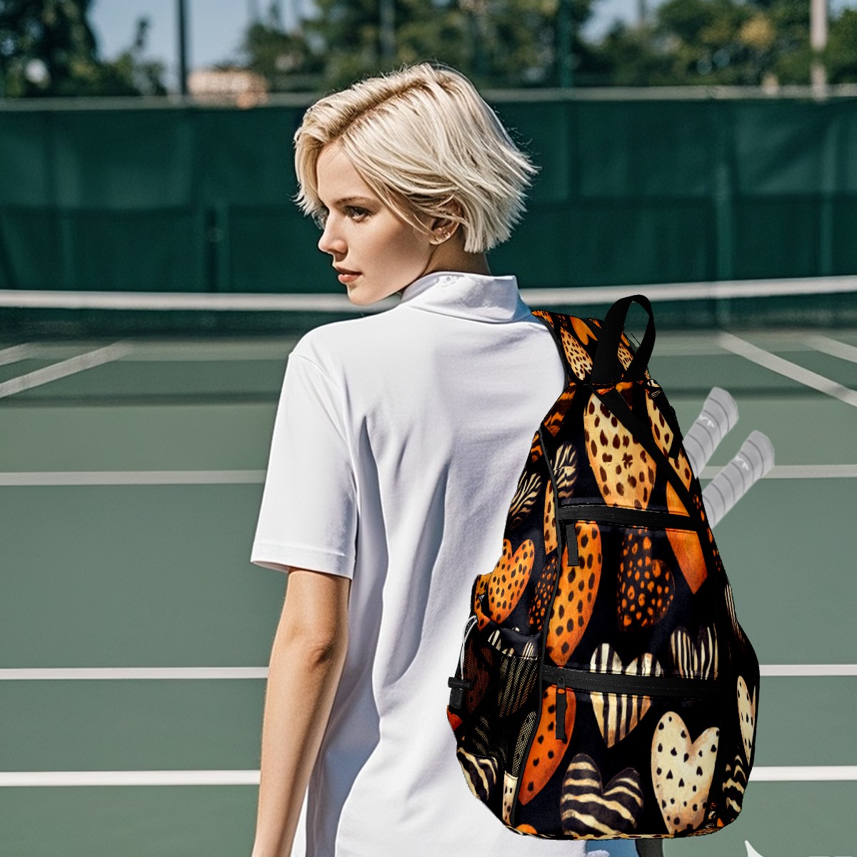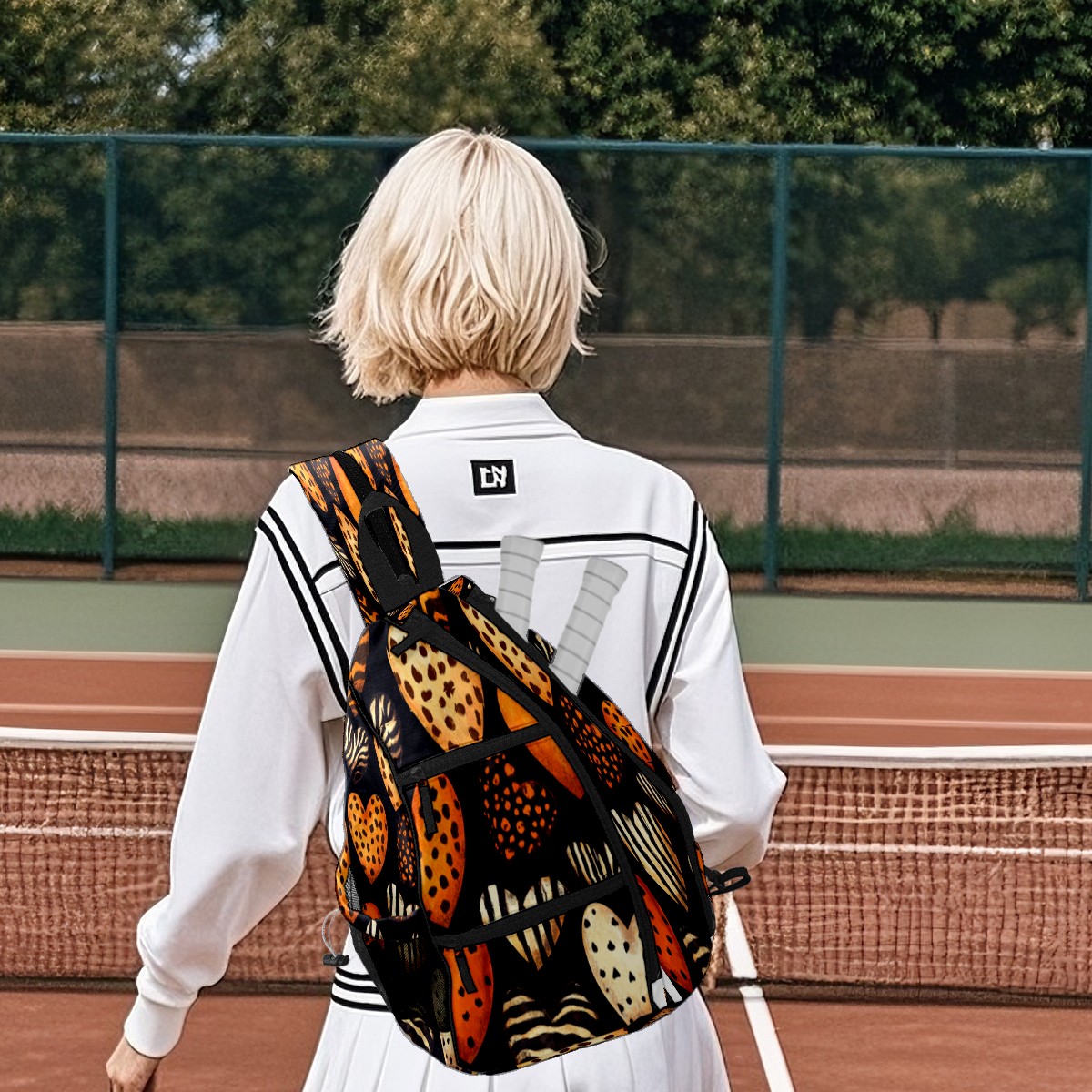 Pickleball Sling Bag for Women and Men - Backpack with Nylon Fabric/Woven Strap/Mesh Pocket/Fence Hook/Adjustable Bag Brown Heart Pattern1
