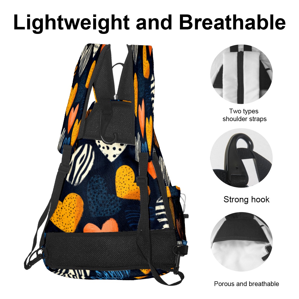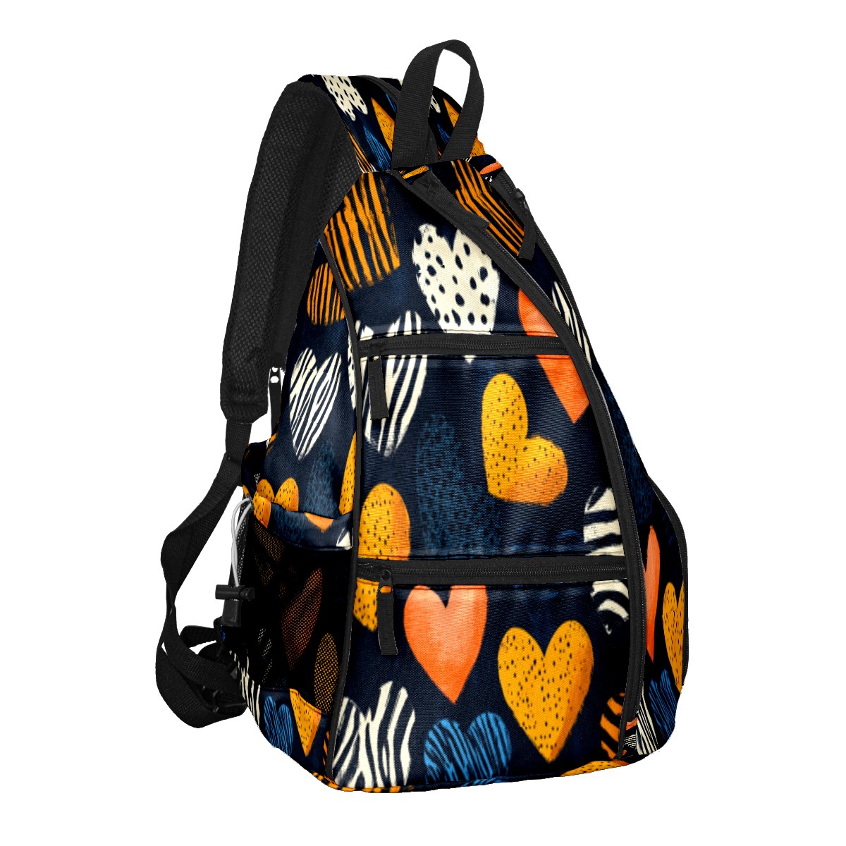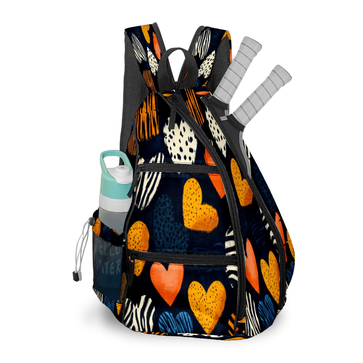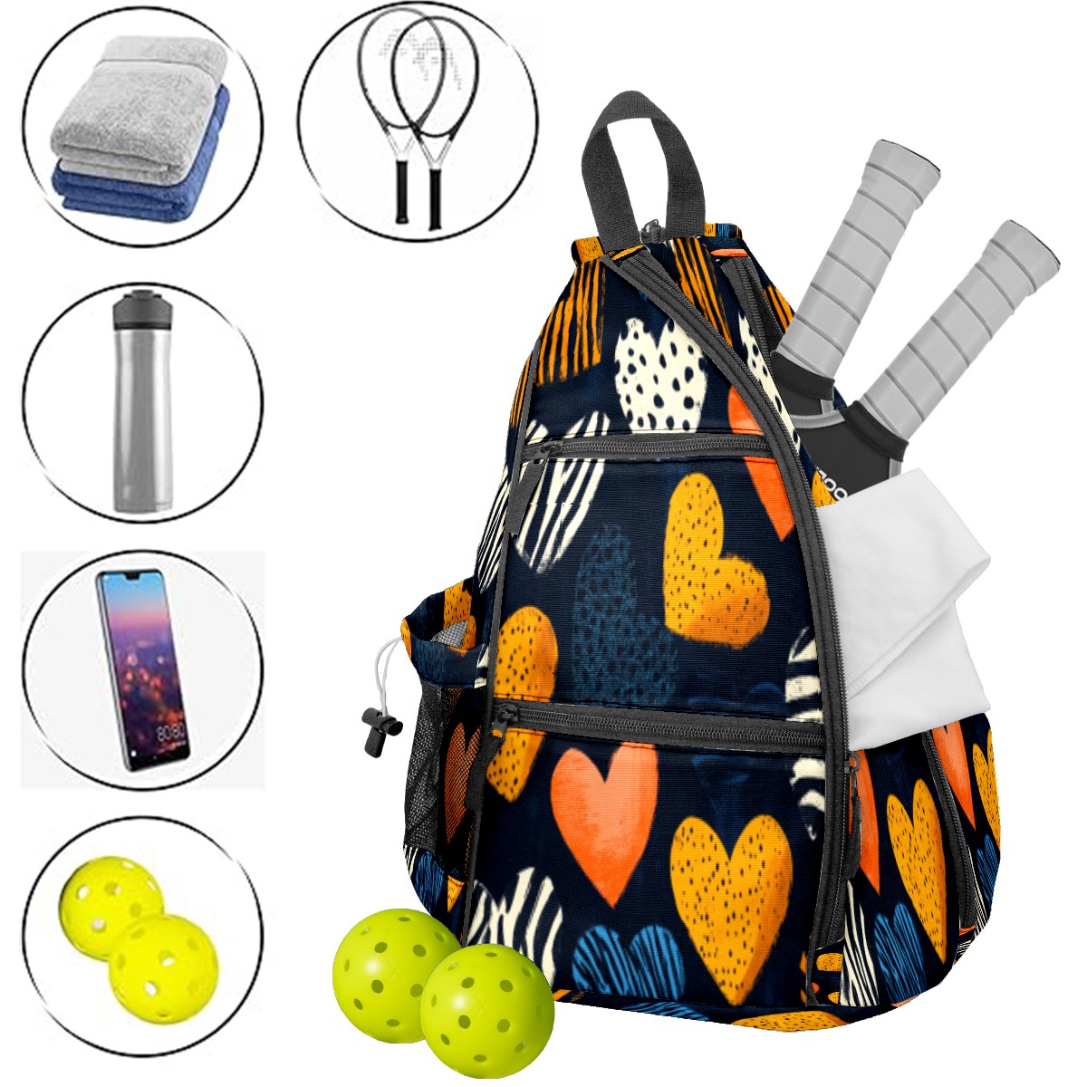 Pickleball Sling Bag for Women and Men - Backpack with Nylon Fabric/Woven Strap/Mesh Pocket/Fence Hook/Adjustable Bag Brown Heart Pattern