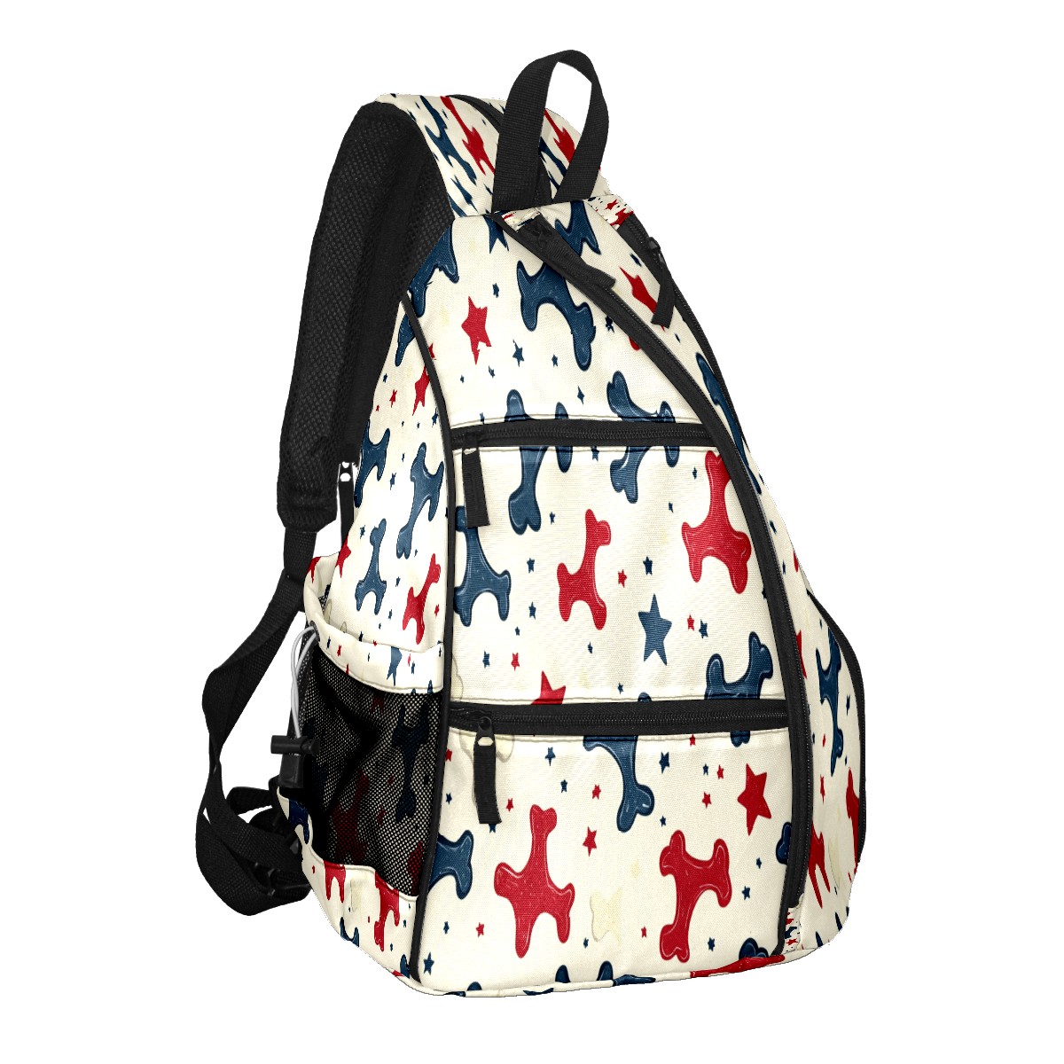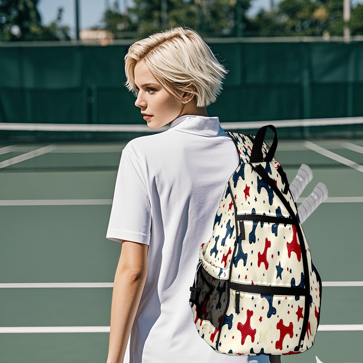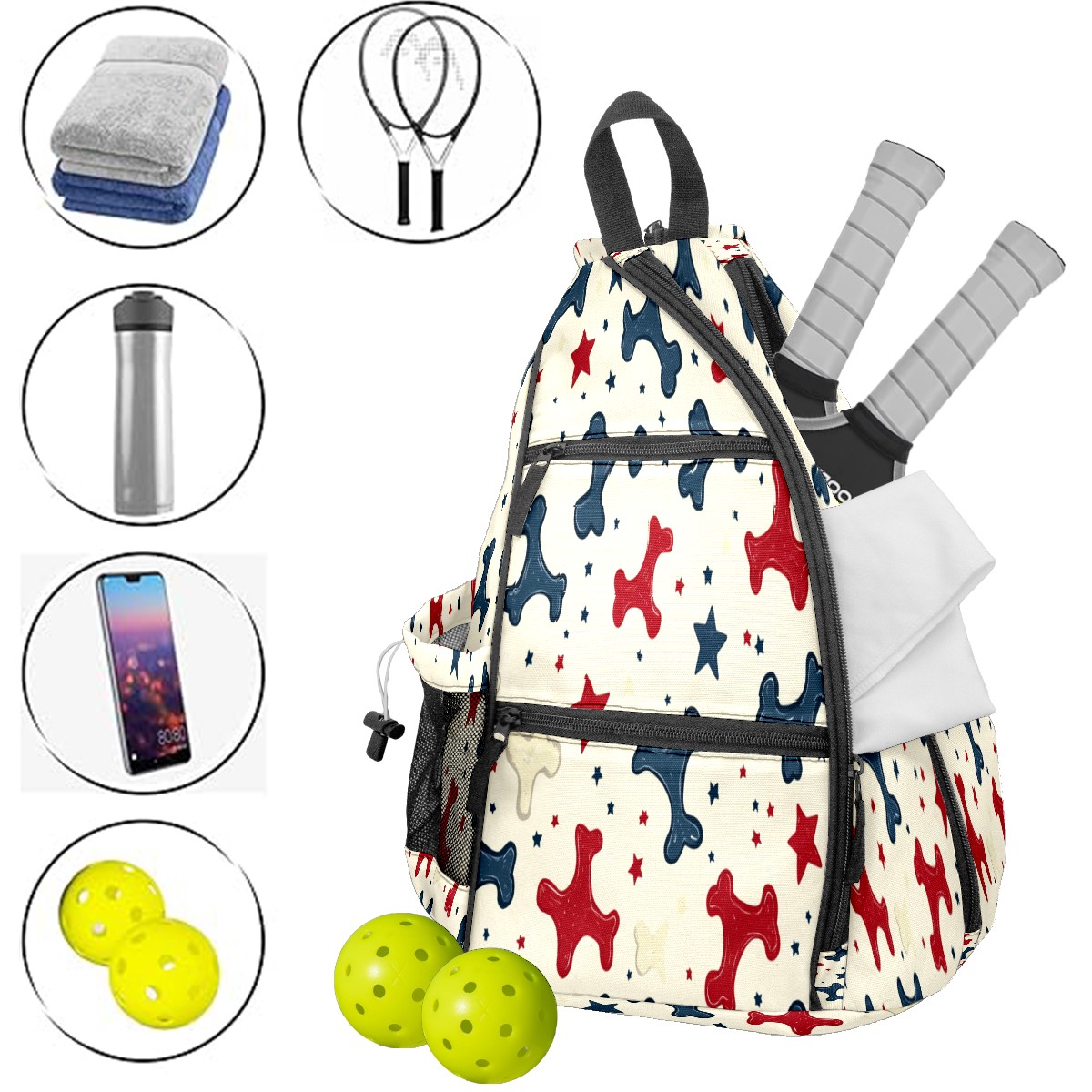 Pickleball Sling Bag for Women and Men - Backpack with Nylon Fabric/Woven Strap/Mesh Pocket/Fence Hook/Adjustable Bag Bone Star Pattern1