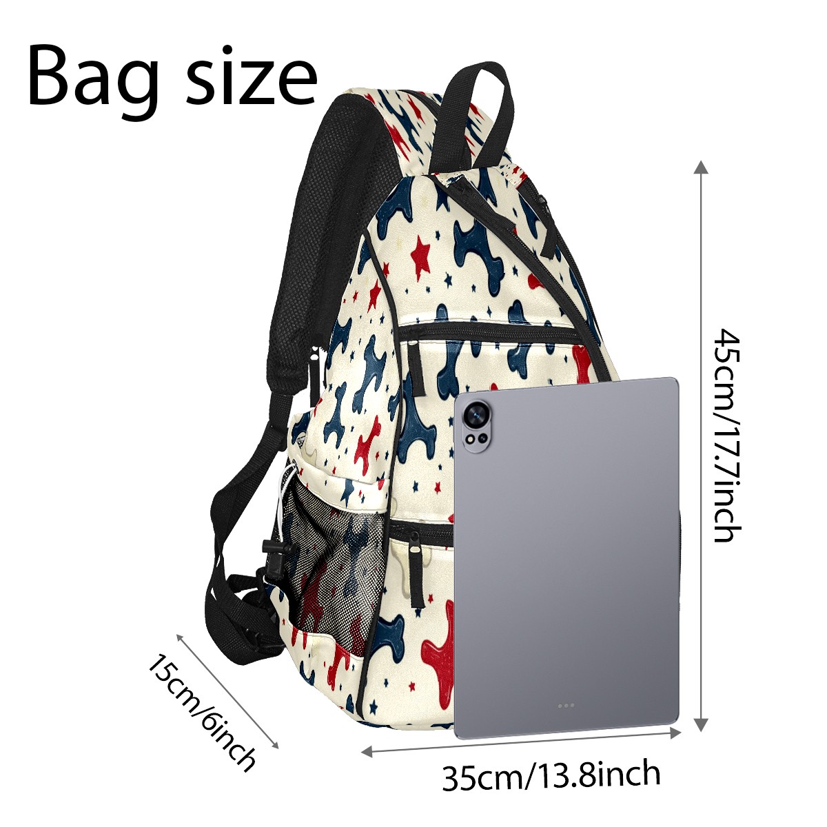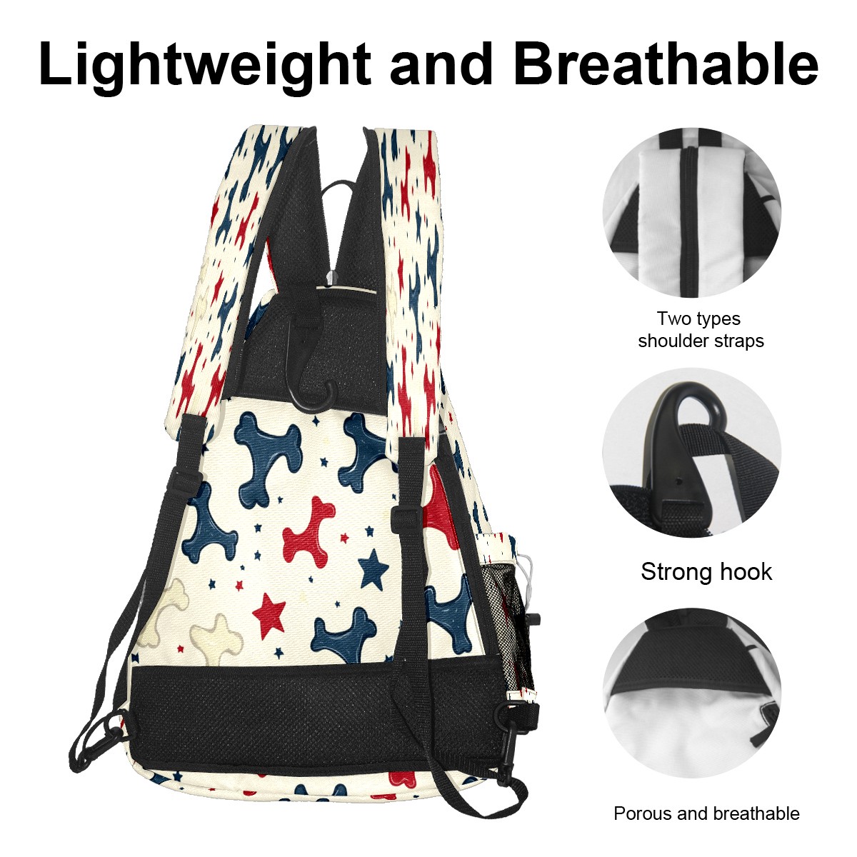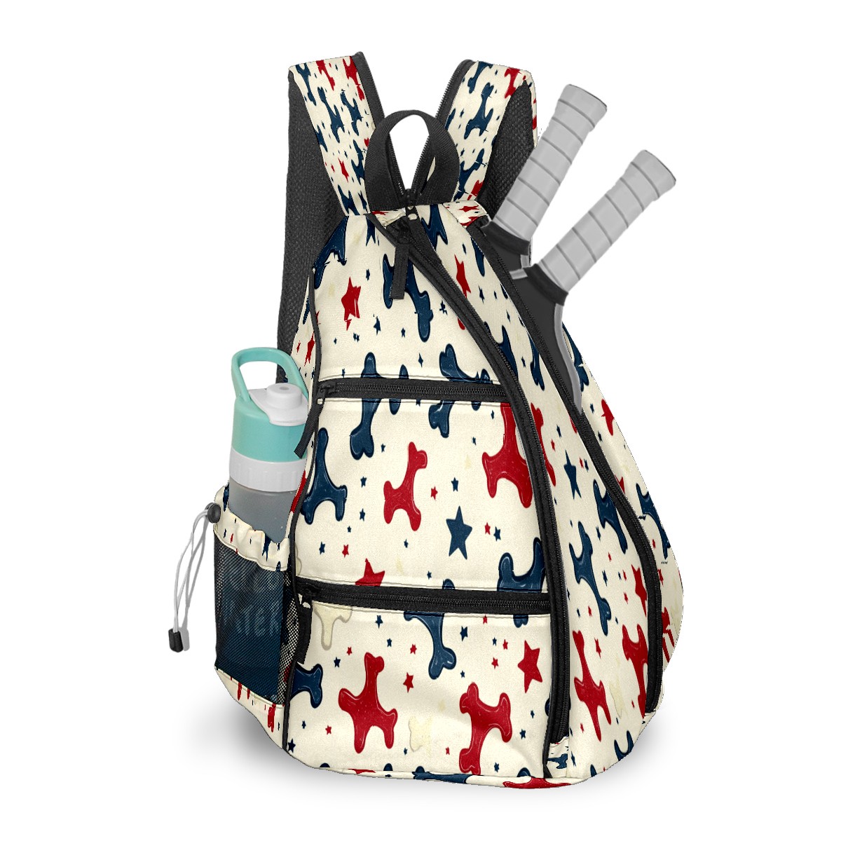 Pickleball Sling Bag for Women and Men - Backpack with Nylon Fabric/Woven Strap/Mesh Pocket/Fence Hook/Adjustable Bag Bone Star Pattern1