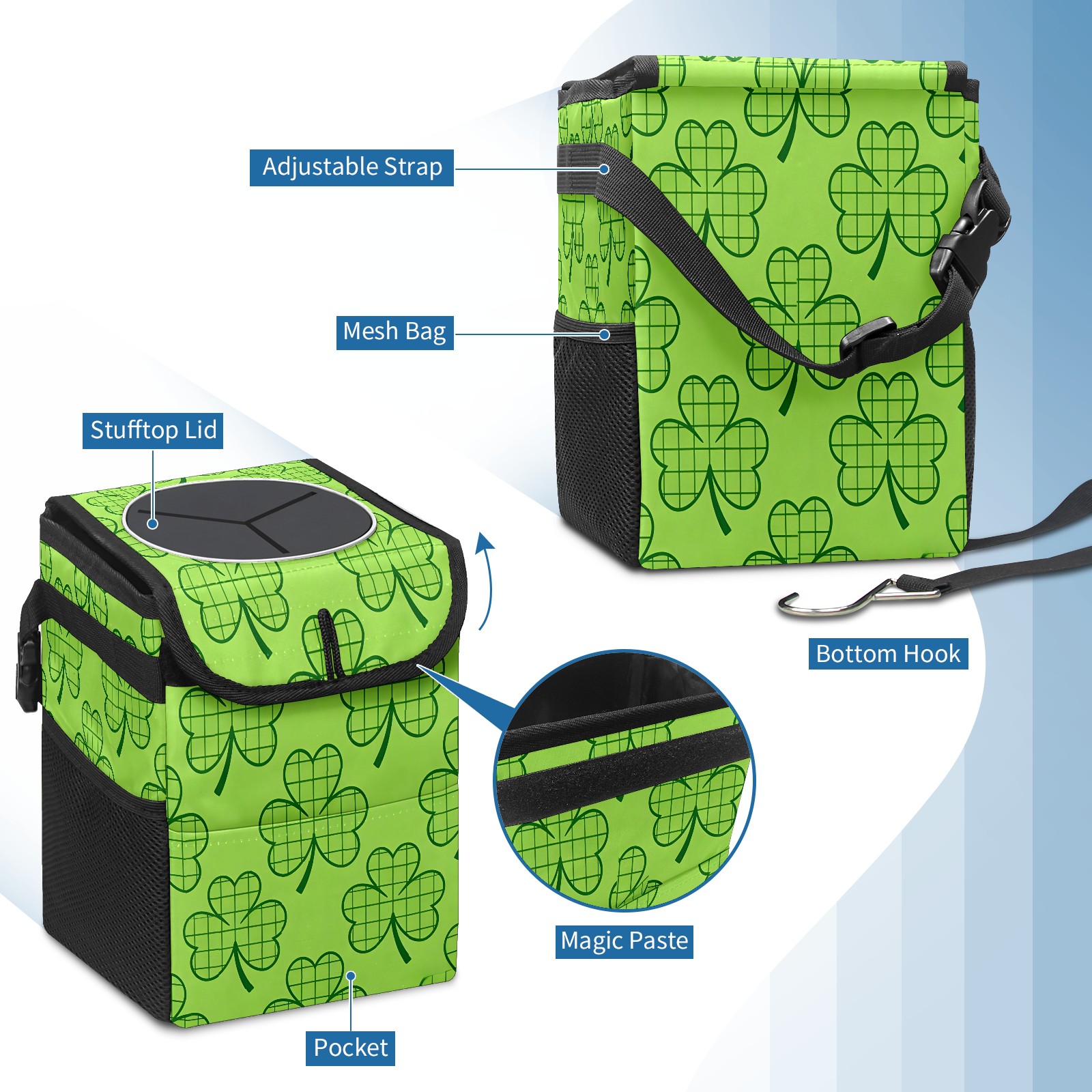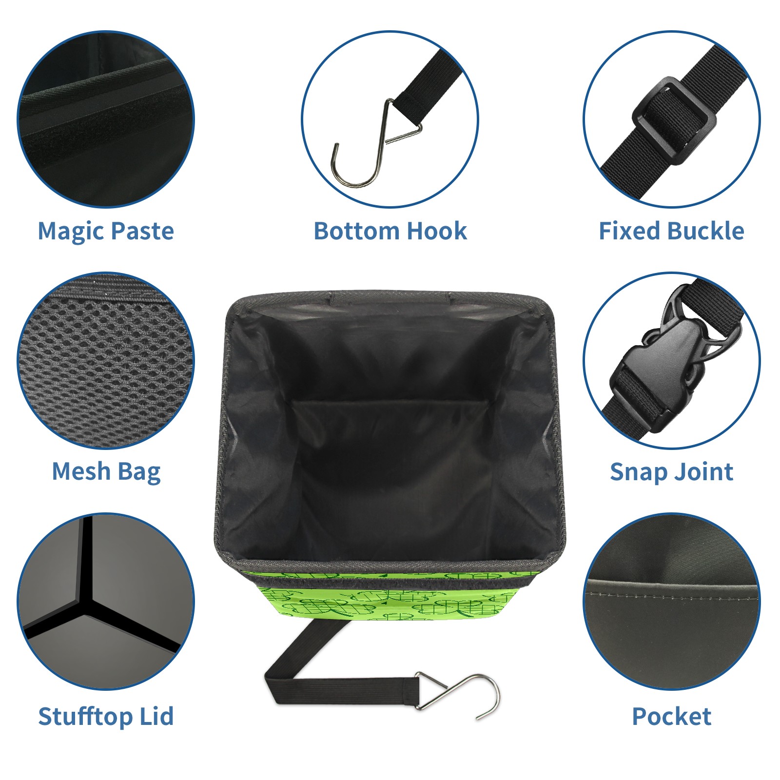 Universal Hanging Car Trash Can - Leakproof Design with Secure Lid | Fits SUV, Truck, Van | Front & Back Seat Friendly | Smart Automotive Accessory Trifolium 5