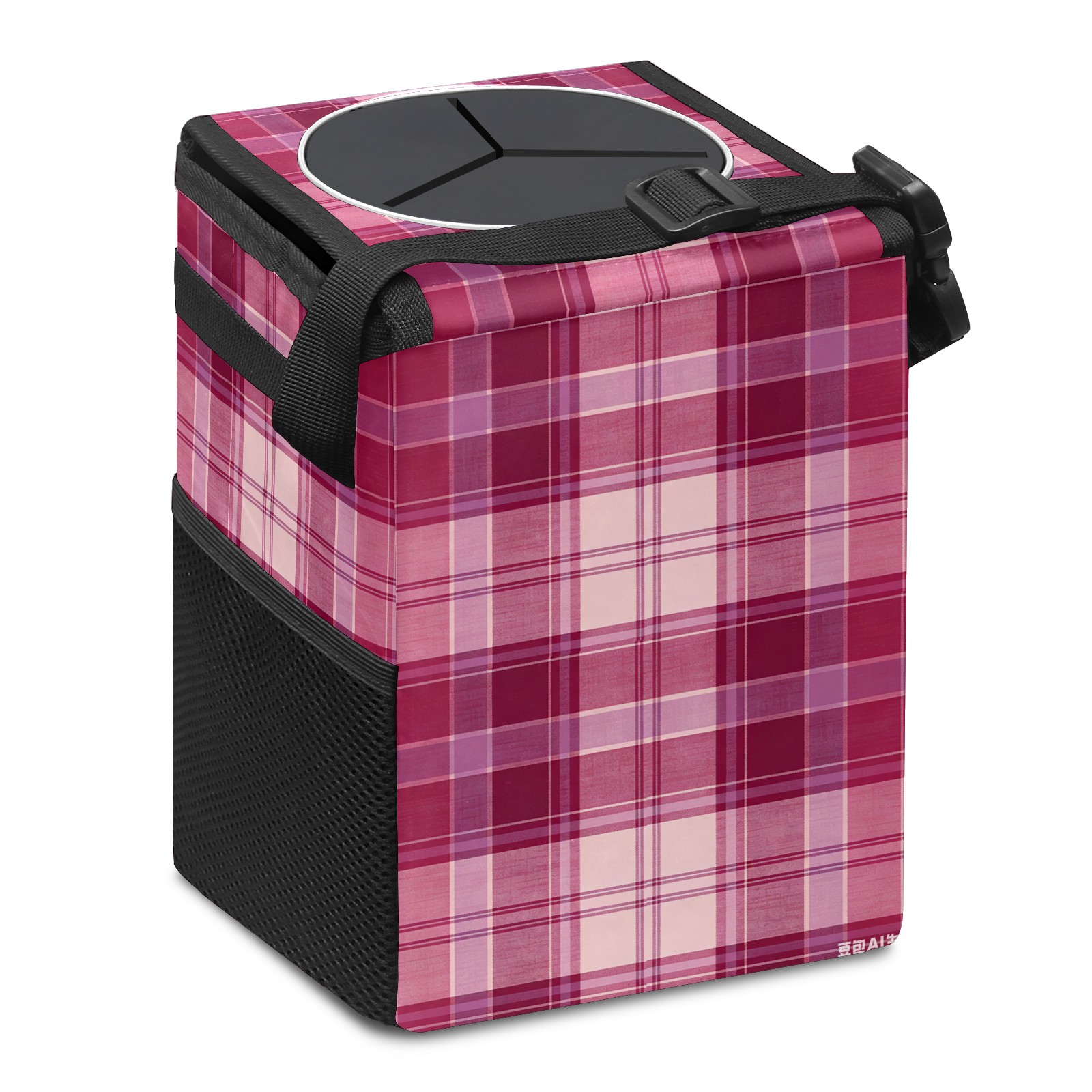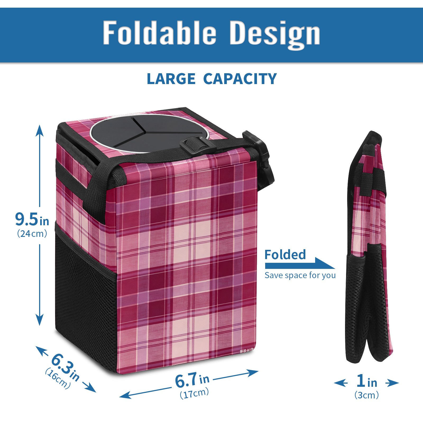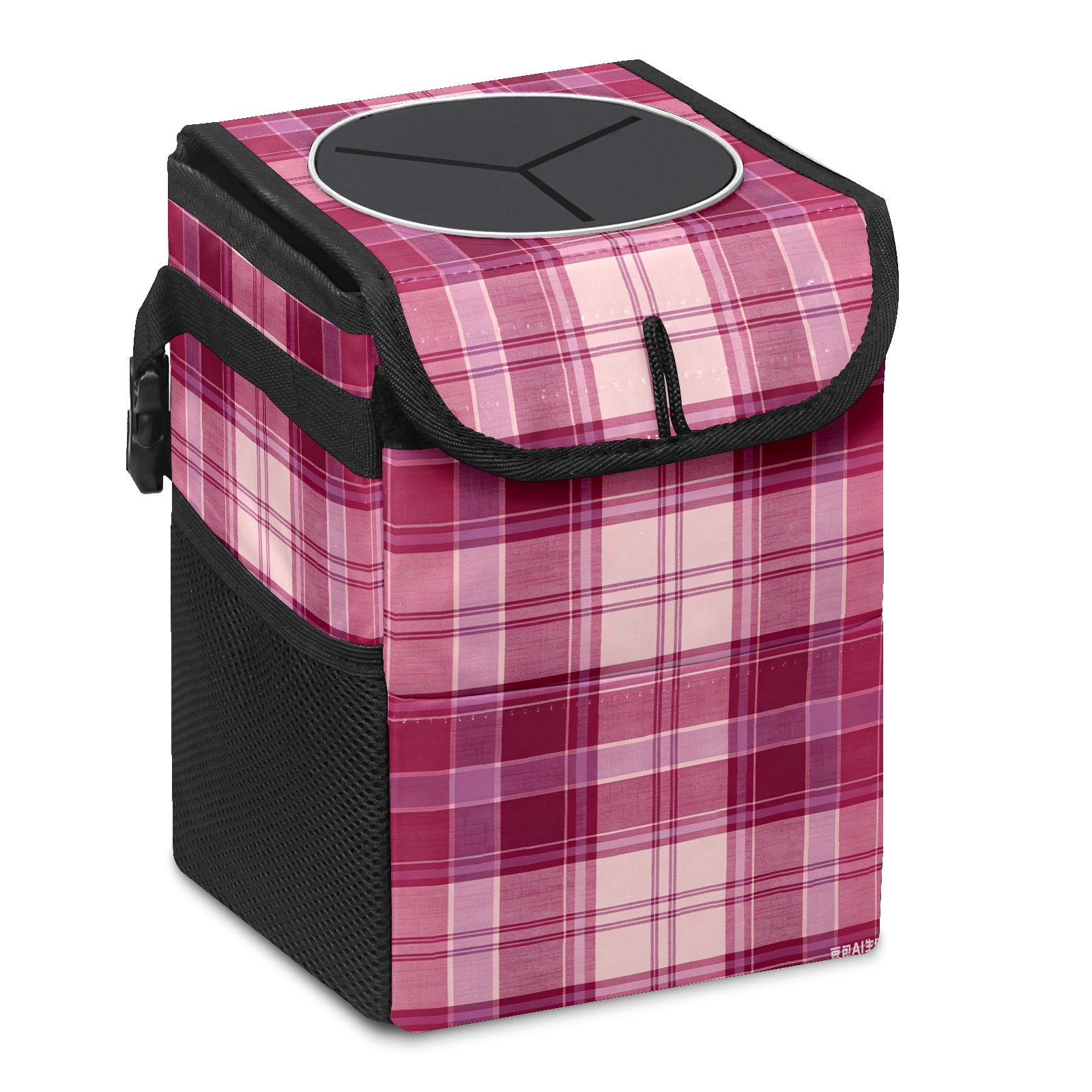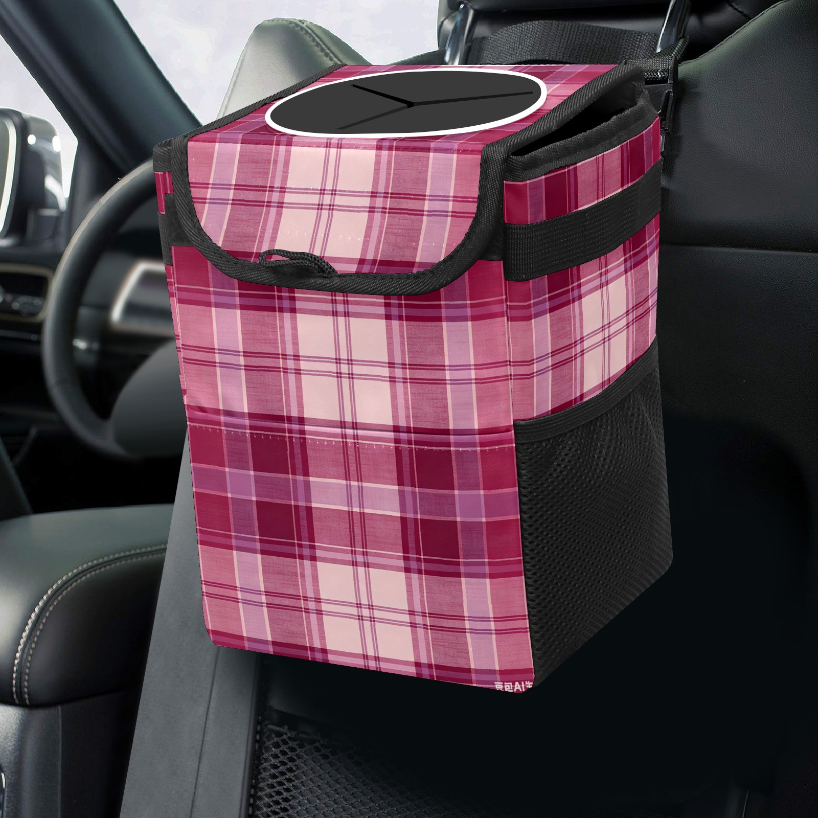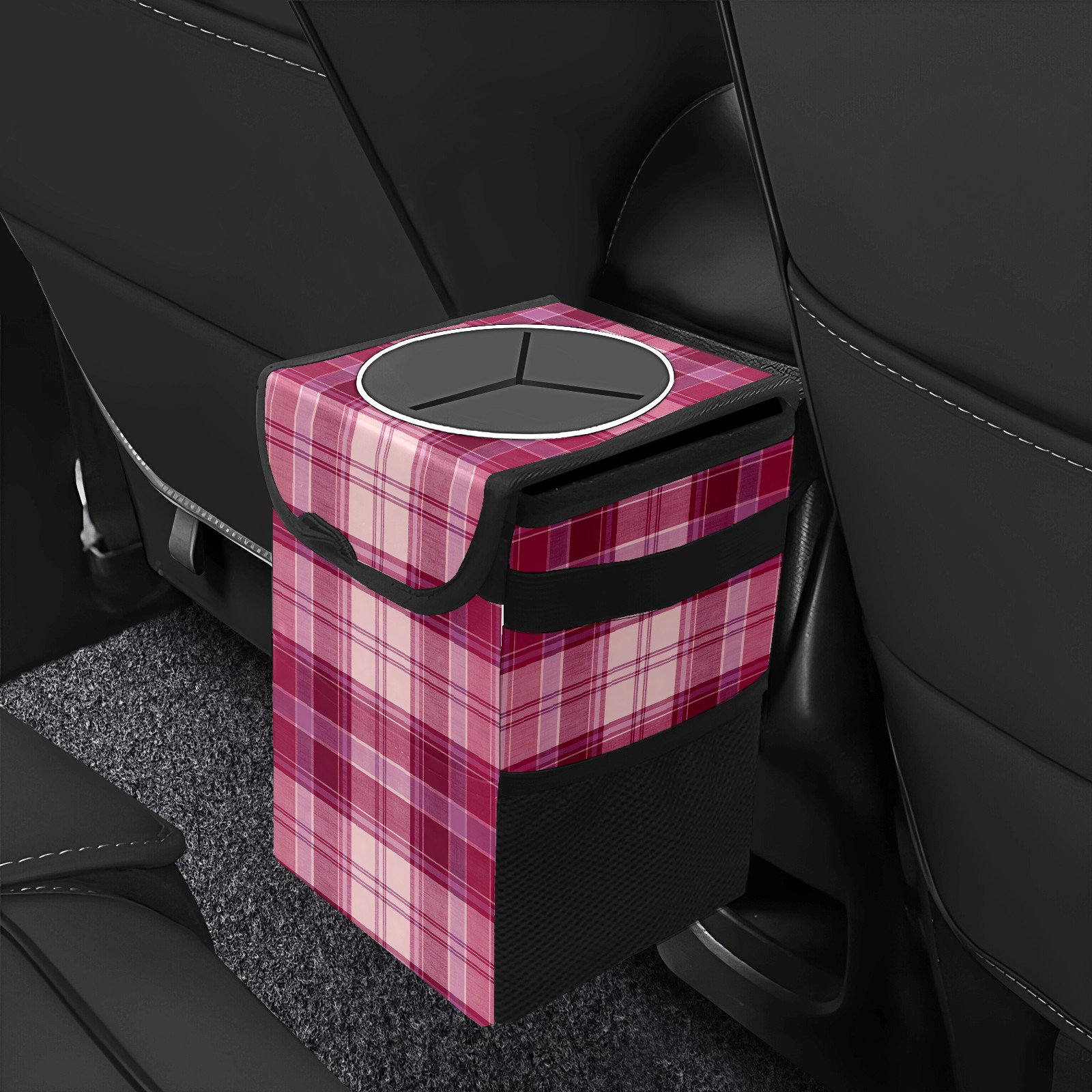 Universal Hanging Car Trash Can - Leakproof Design with Secure Lid | Fits SUV, Truck, Van | Front & Back Seat Friendly | Smart Automotive Accessory Purple Red Checkered