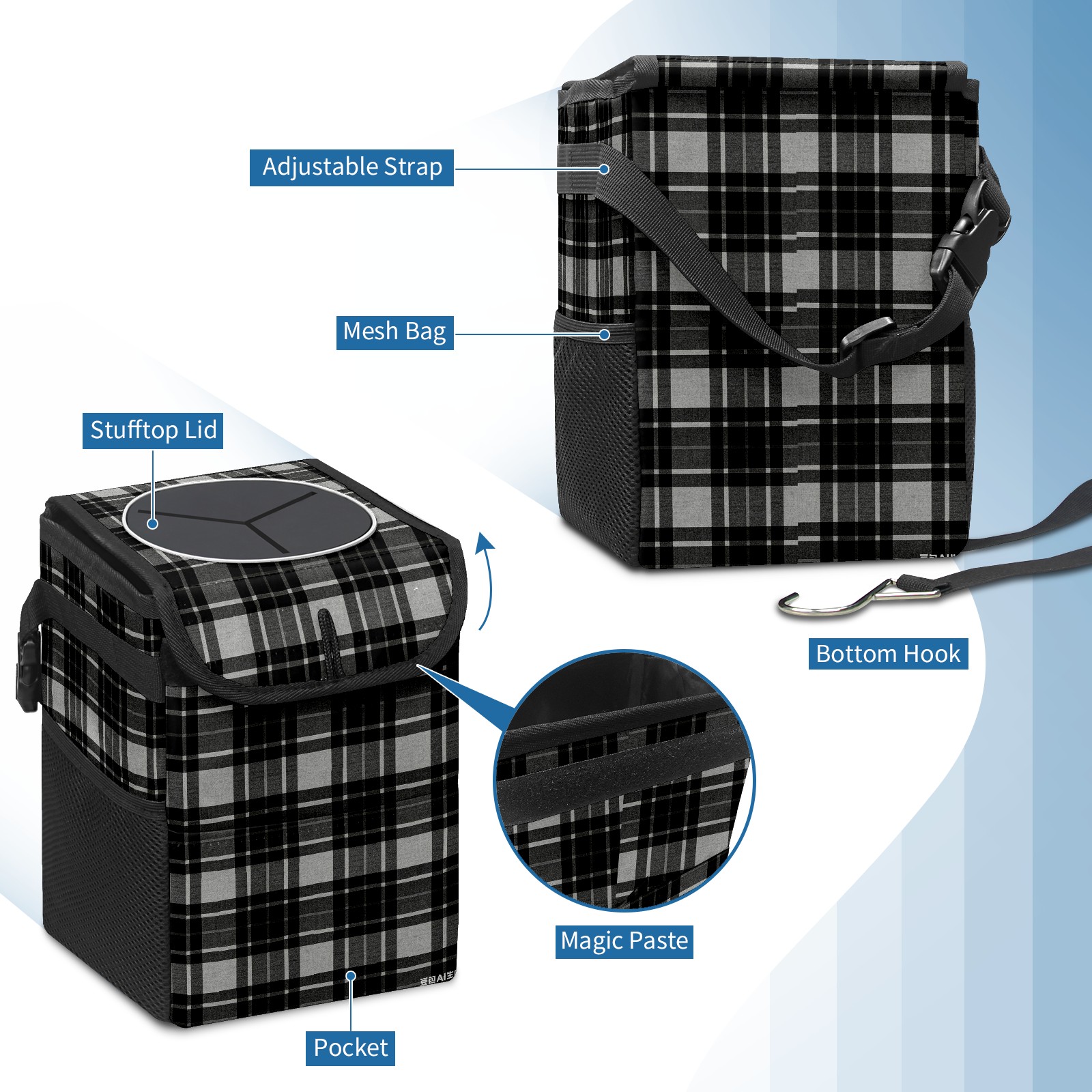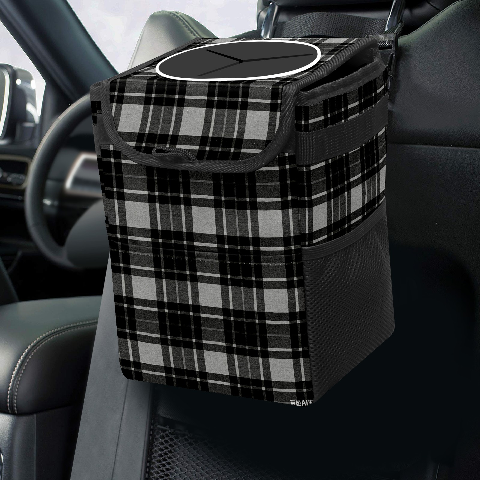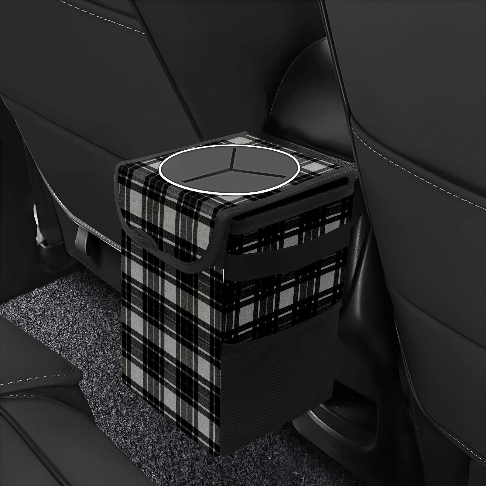 Universal Hanging Car Trash Can - Leakproof Design with Secure Lid | Fits SUV, Truck, Van | Front & Back Seat Friendly | Smart Automotive Accessory Black White Checkered