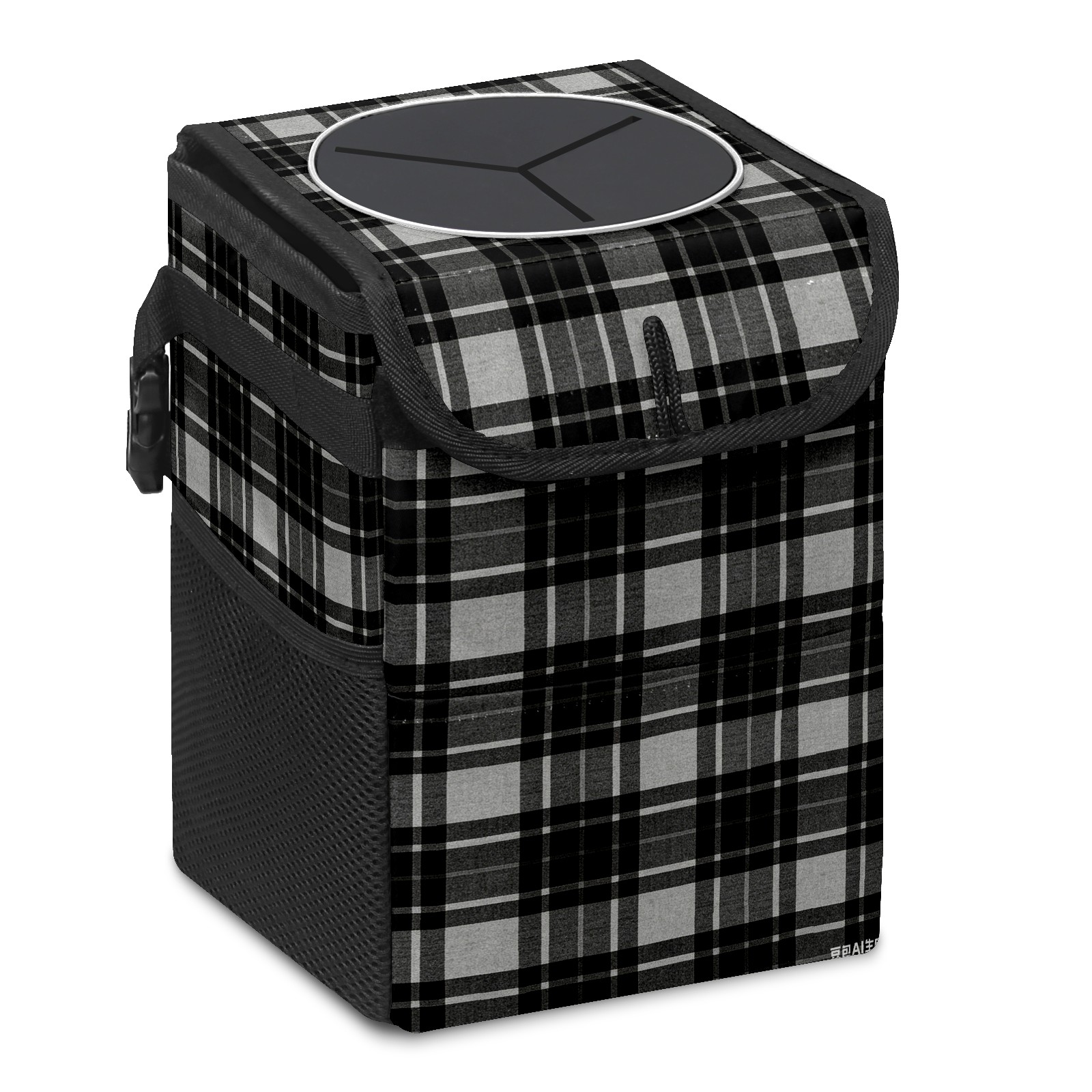 • <p>This multi-functional car trash can features a stylish printed design, combining practicality and aesthetics. Made with high-quality twill fabric and woven straps, it's sturdy and durable. Dimensions: 24×17×16cm (9.5×6.7×6.3 inches). The top rubber opening lid makes disposing of trash easy, while side mesh pockets and a front pocket easily store snacks, mobile phones, and other small items. Equipped with a dual securing system of straps and elastic hooks, it can be flexibly hung behind headrests, inside armrest boxes, or hooked to the bottom of seat cushions. Not only can it be used as a trash can, but it can also function as a food or miscellaneous item storage box, achieving multiple uses. When not in use, it can be folded for storage, saving space and creating a clean and tidy environment for your car.<br></p>
