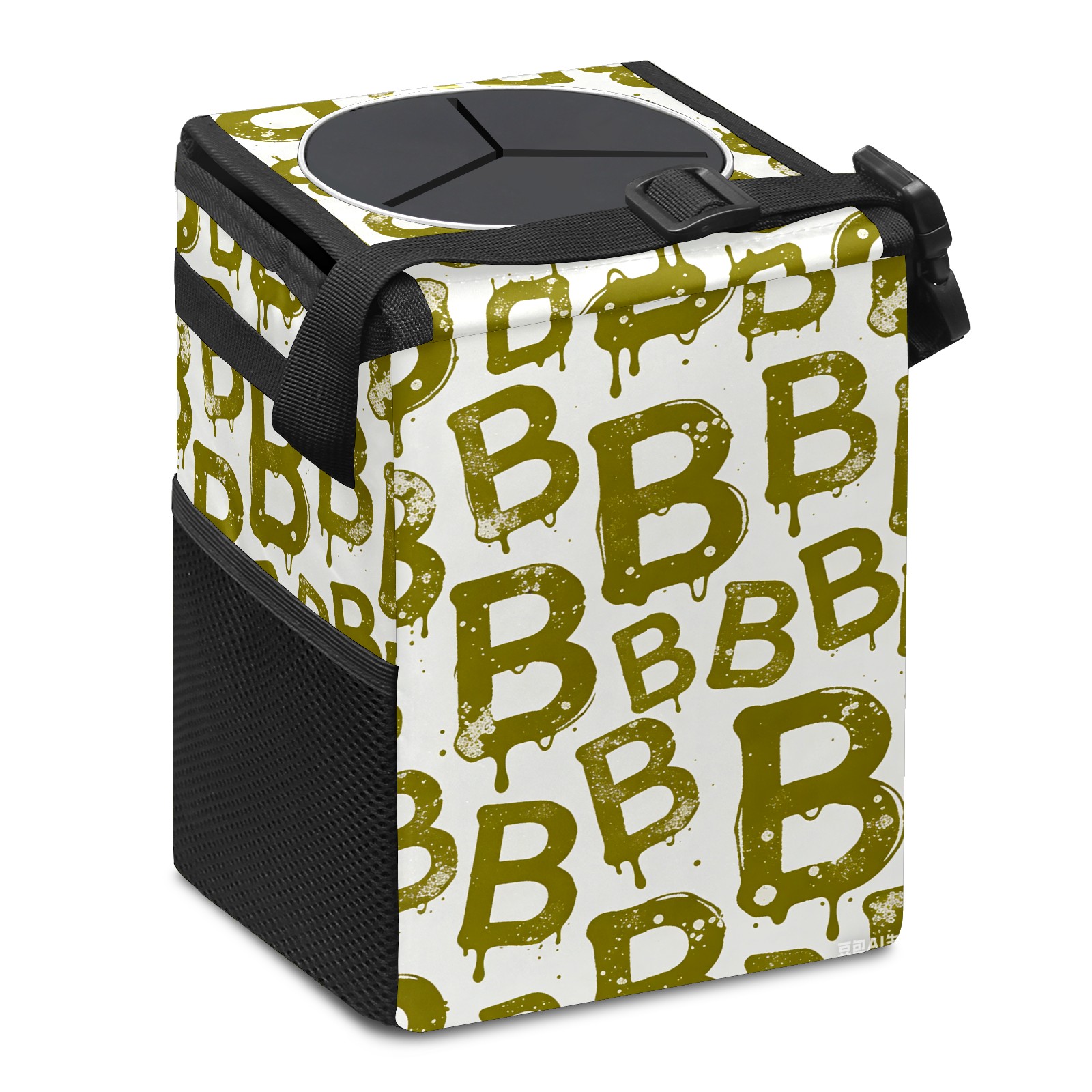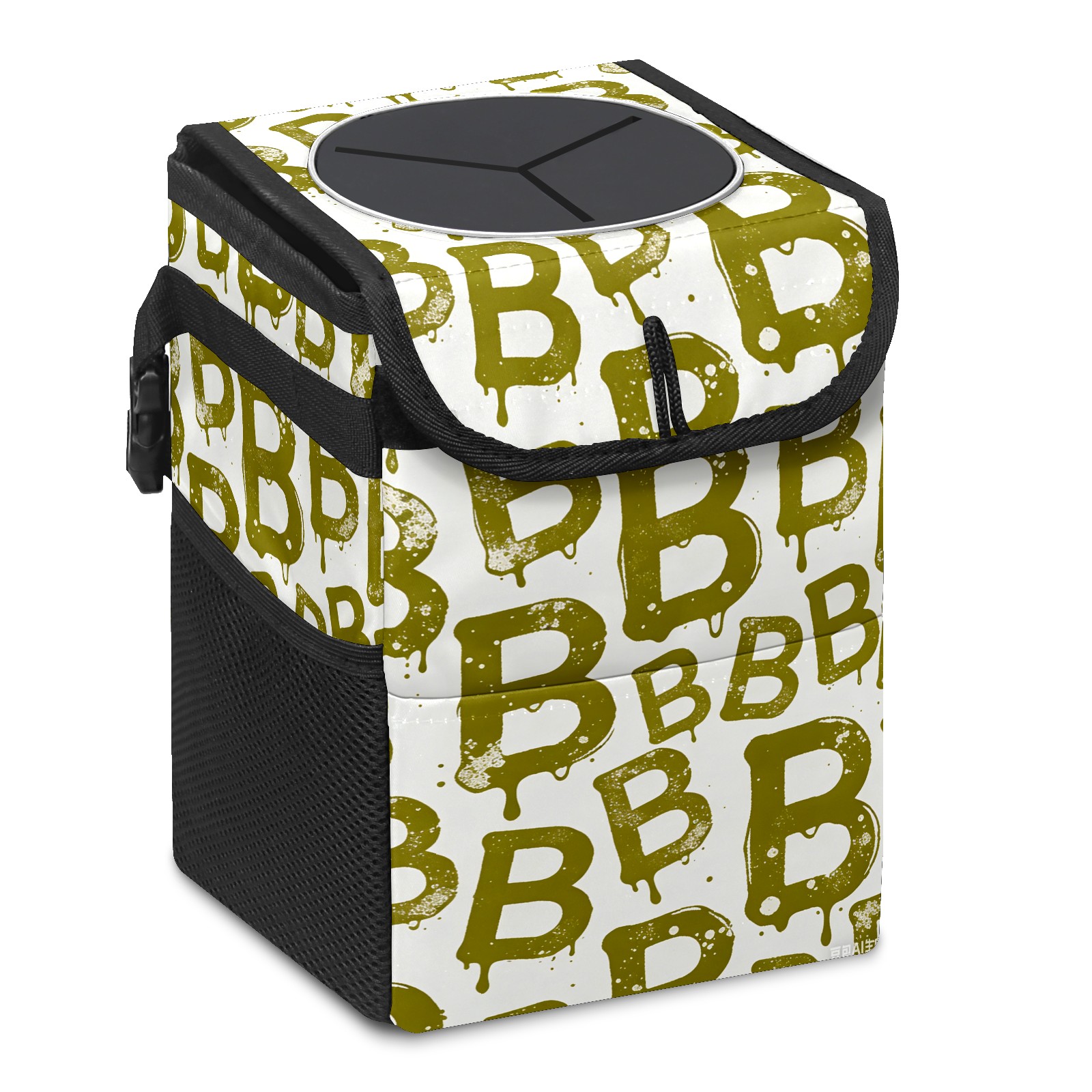 • <p>This multi-functional car trash can features a stylish printed design, combining practicality and aesthetics. Made with high-quality twill fabric and woven straps, it's sturdy and durable. Dimensions: 24×17×16cm (9.5×6.7×6.3 inches). The top rubber opening lid makes disposing of trash easy, while side mesh pockets and a front pocket easily store snacks, mobile phones, and other small items. Equipped with a dual securing system of straps and elastic hooks, it can be flexibly hung behind headrests, inside armrest boxes, or hooked to the bottom of seat cushions. Not only can it be used as a trash can, but it can also function as a food or miscellaneous item storage box, achieving multiple uses. When not in use, it can be folded for storage, saving space and creating a clean and tidy environment for your car.<br></p>