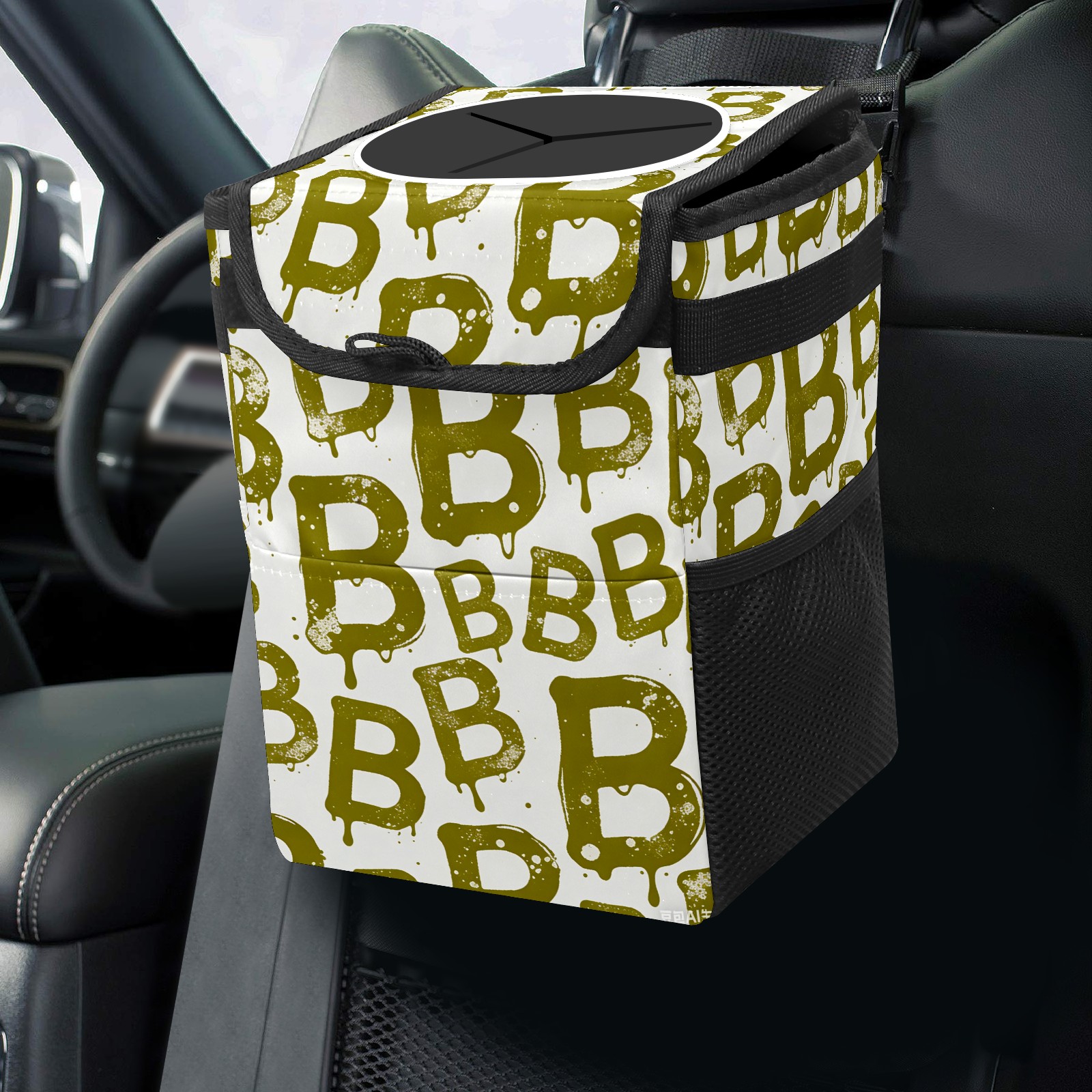 Universal Hanging Car Trash Can - Leakproof Design with Secure Lid | Fits SUV, Truck, Van | Front & Back Seat Friendly | Smart Automotive Accessory Letter B