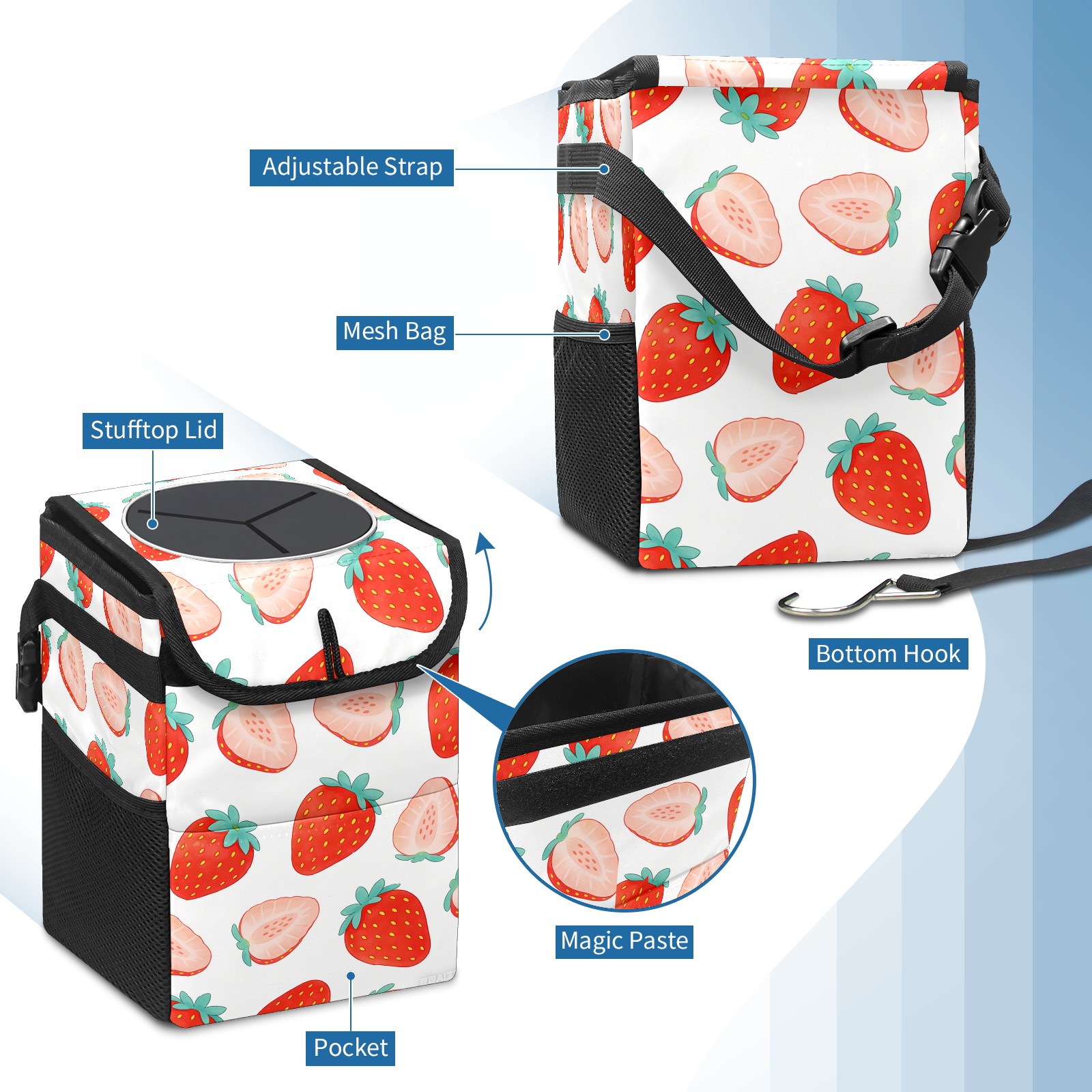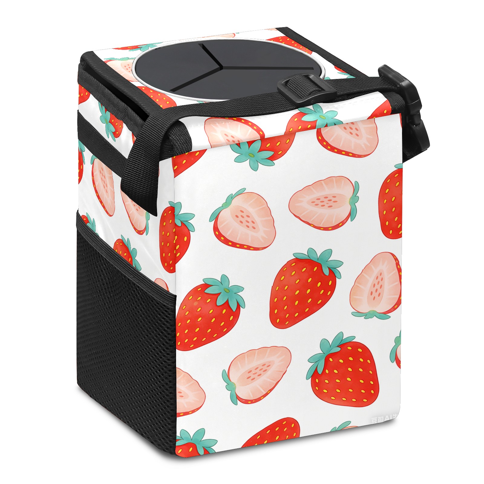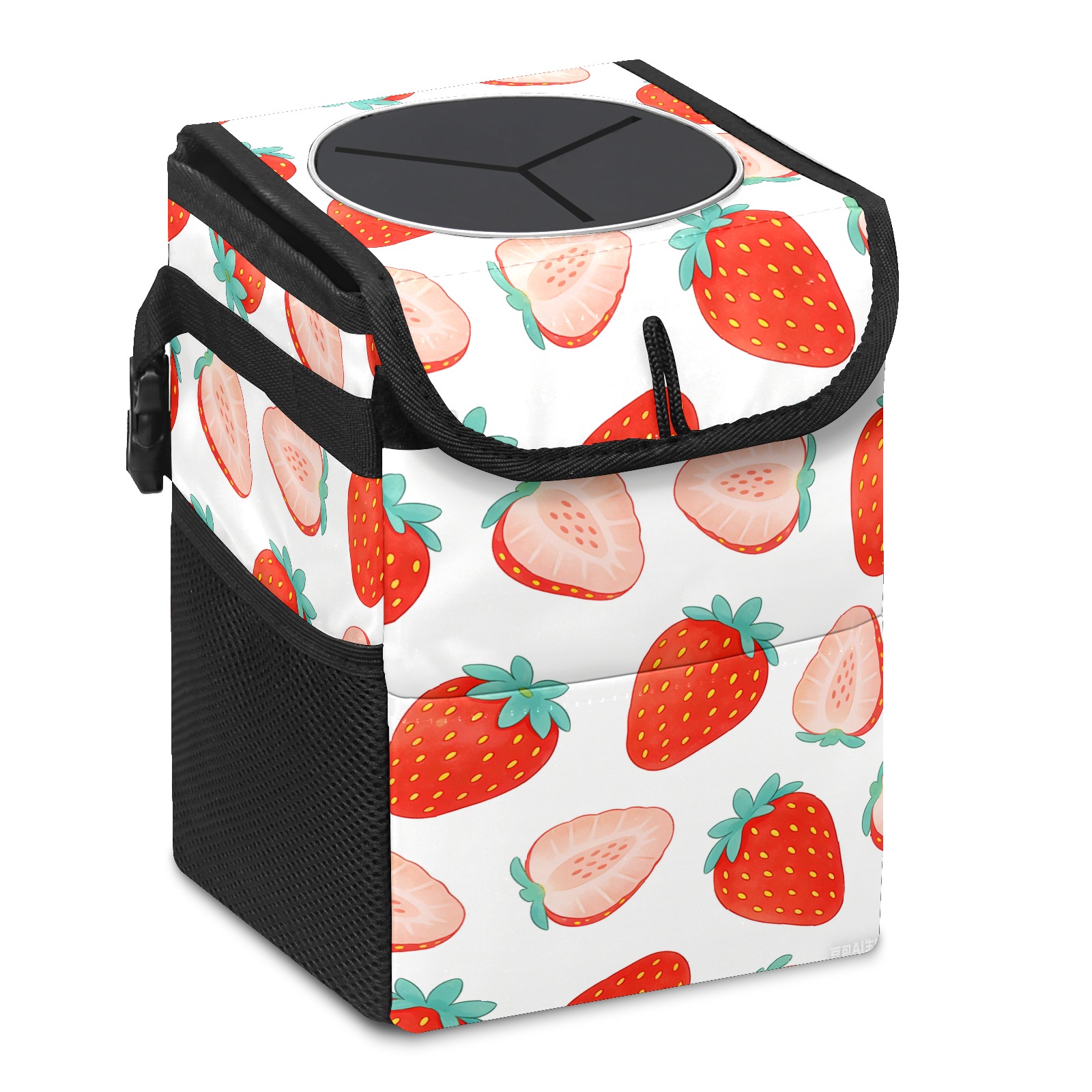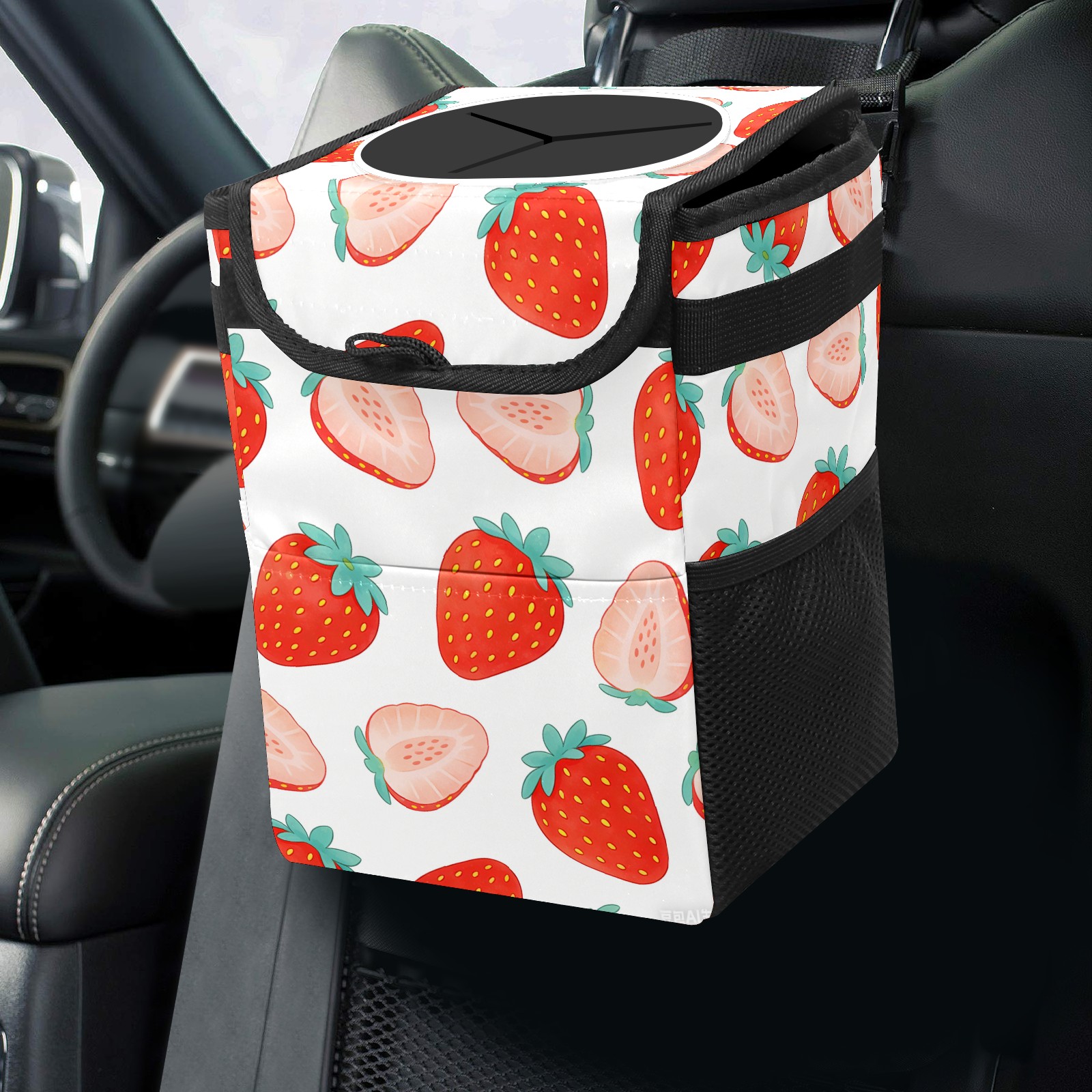 Universal Hanging Car Trash Can - Leakproof Design with Secure Lid | Fits SUV, Truck, Van | Front & Back Seat Friendly | Smart Automotive Accessory Sliced ​​strawberries 1