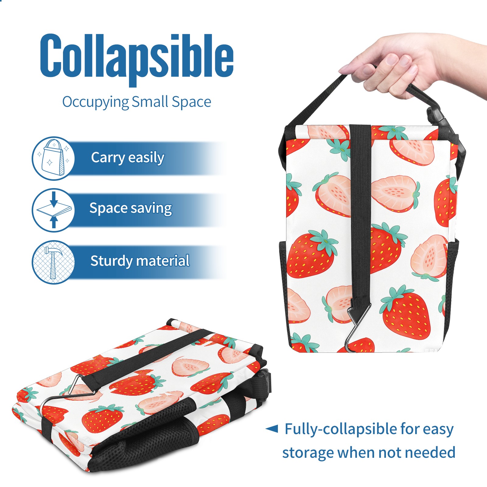 • <p>This multi-functional car trash can features a stylish printed design, combining practicality and aesthetics. Made with high-quality twill fabric and woven straps, it's sturdy and durable. Dimensions: 24×17×16cm (9.5×6.7×6.3 inches). The top rubber opening lid makes disposing of trash easy, while side mesh pockets and a front pocket easily store snacks, mobile phones, and other small items. Equipped with a dual securing system of straps and elastic hooks, it can be flexibly hung behind headrests, inside armrest boxes, or hooked to the bottom of seat cushions. Not only can it be used as a trash can, but it can also function as a food or miscellaneous item storage box, achieving multiple uses. When not in use, it can be folded for storage, saving space and creating a clean and tidy environment for your car.<br></p>