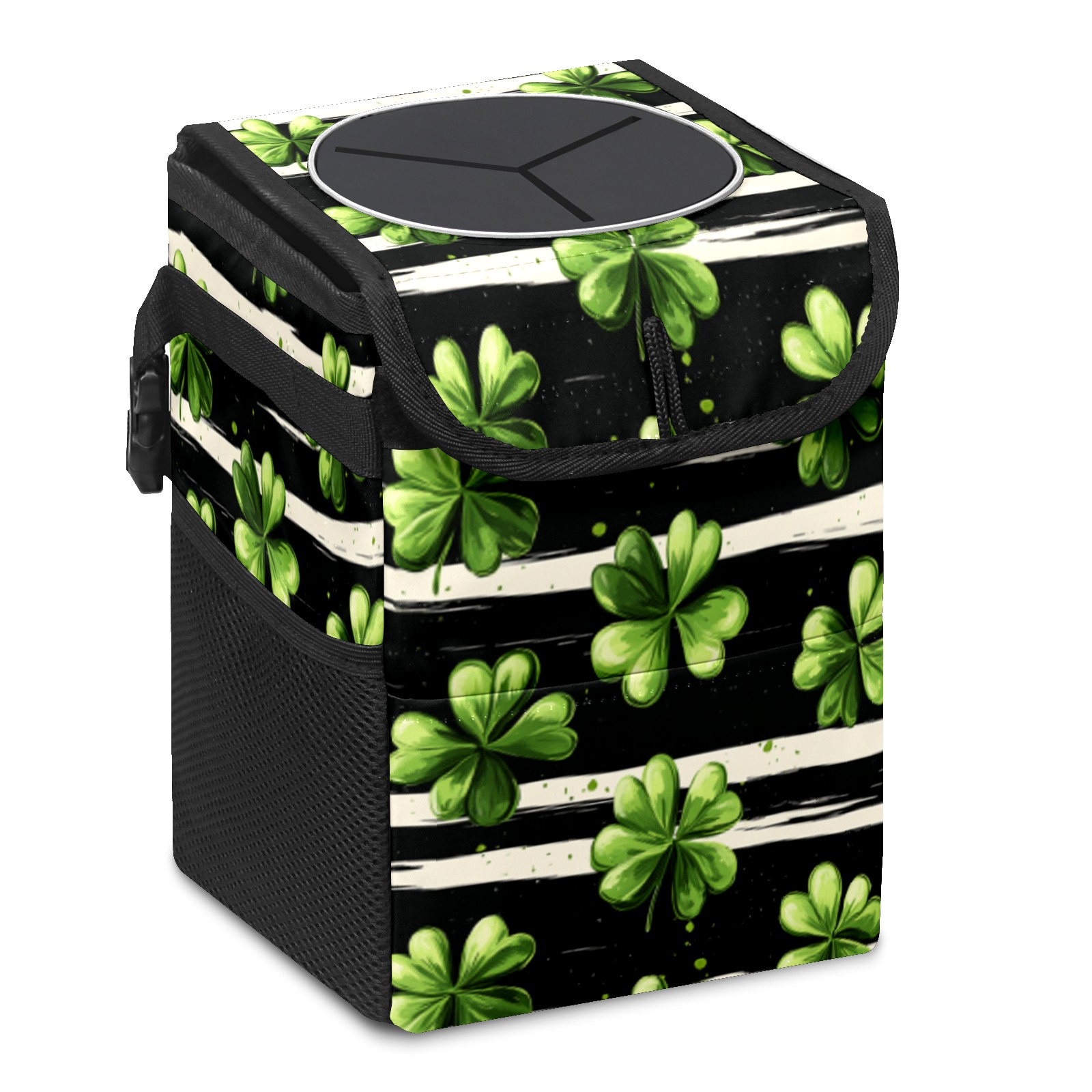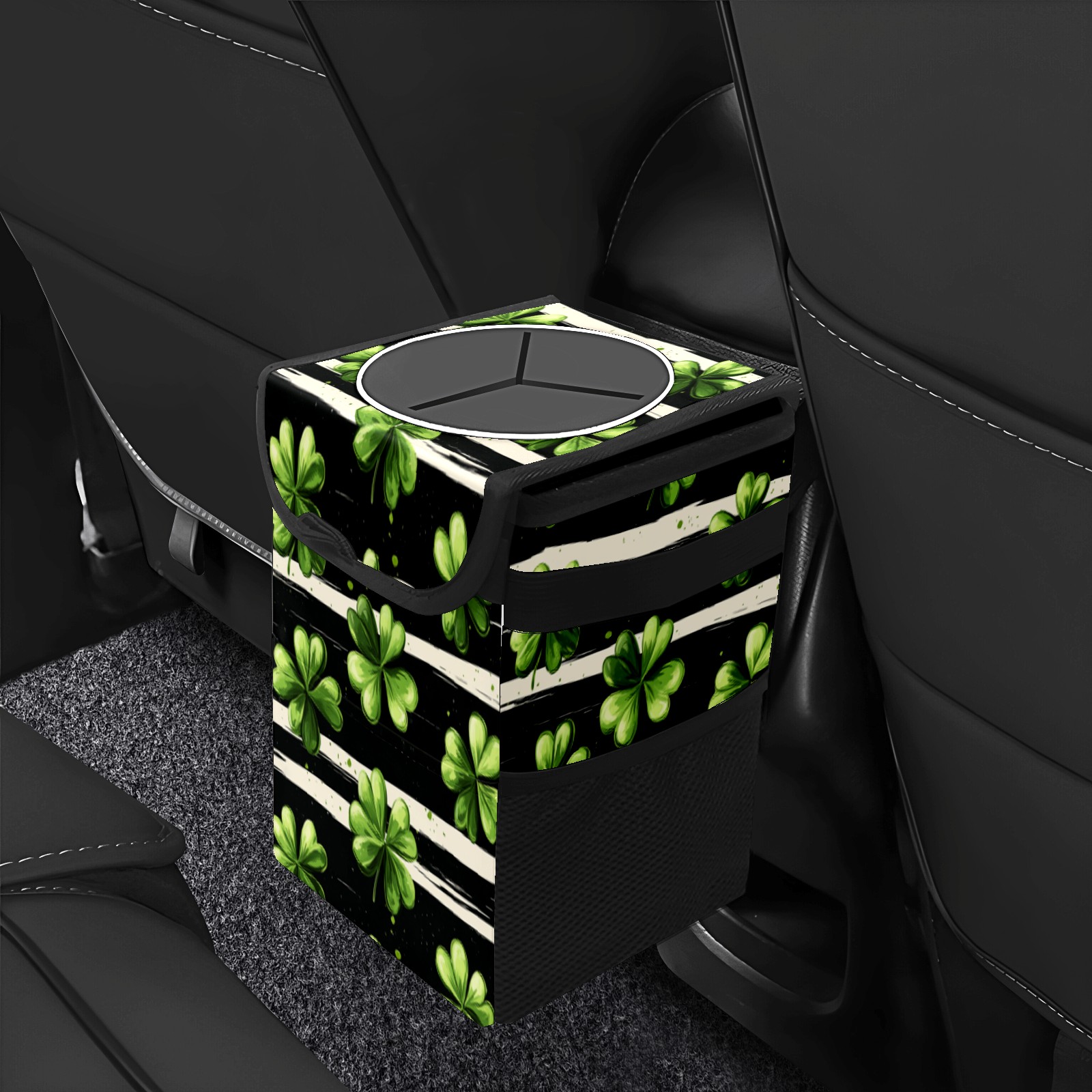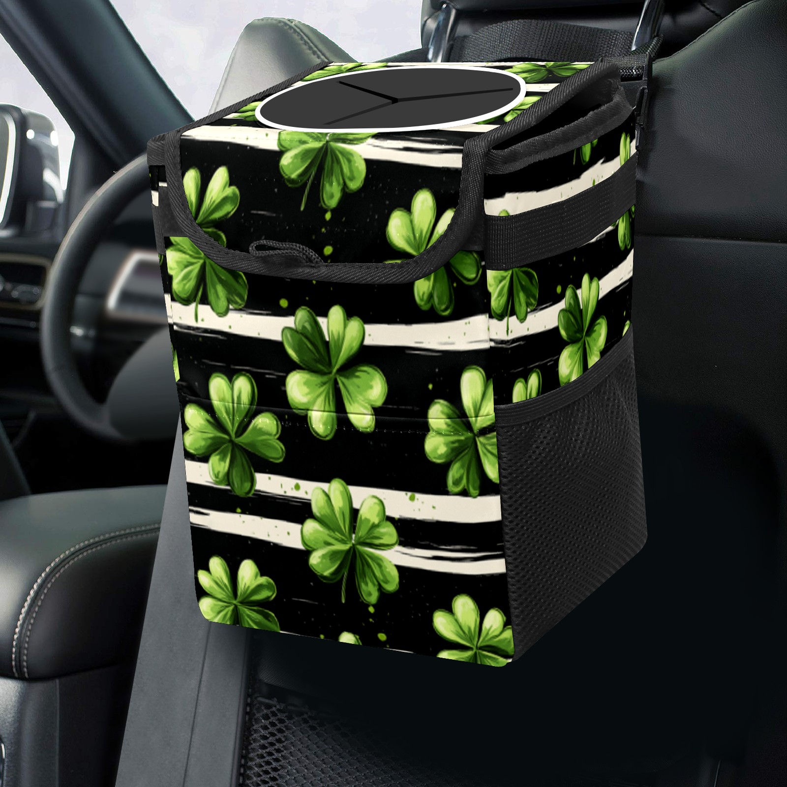 Universal Hanging Car Trash Can - Leakproof Design with Secure Lid | Fits SUV, Truck, Van | Front & Back Seat Friendly | Smart Automotive Accessory Striped Clover Pattern5