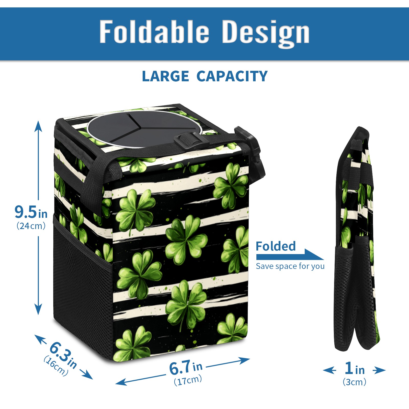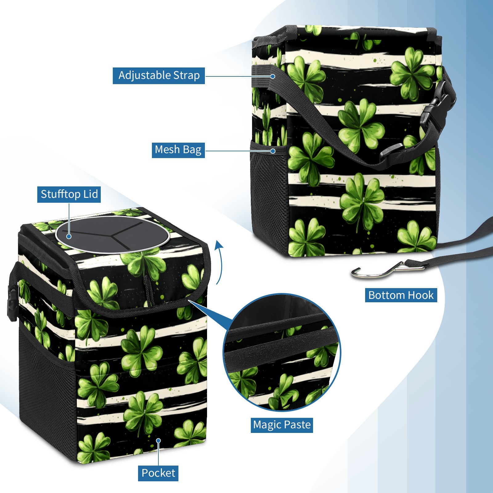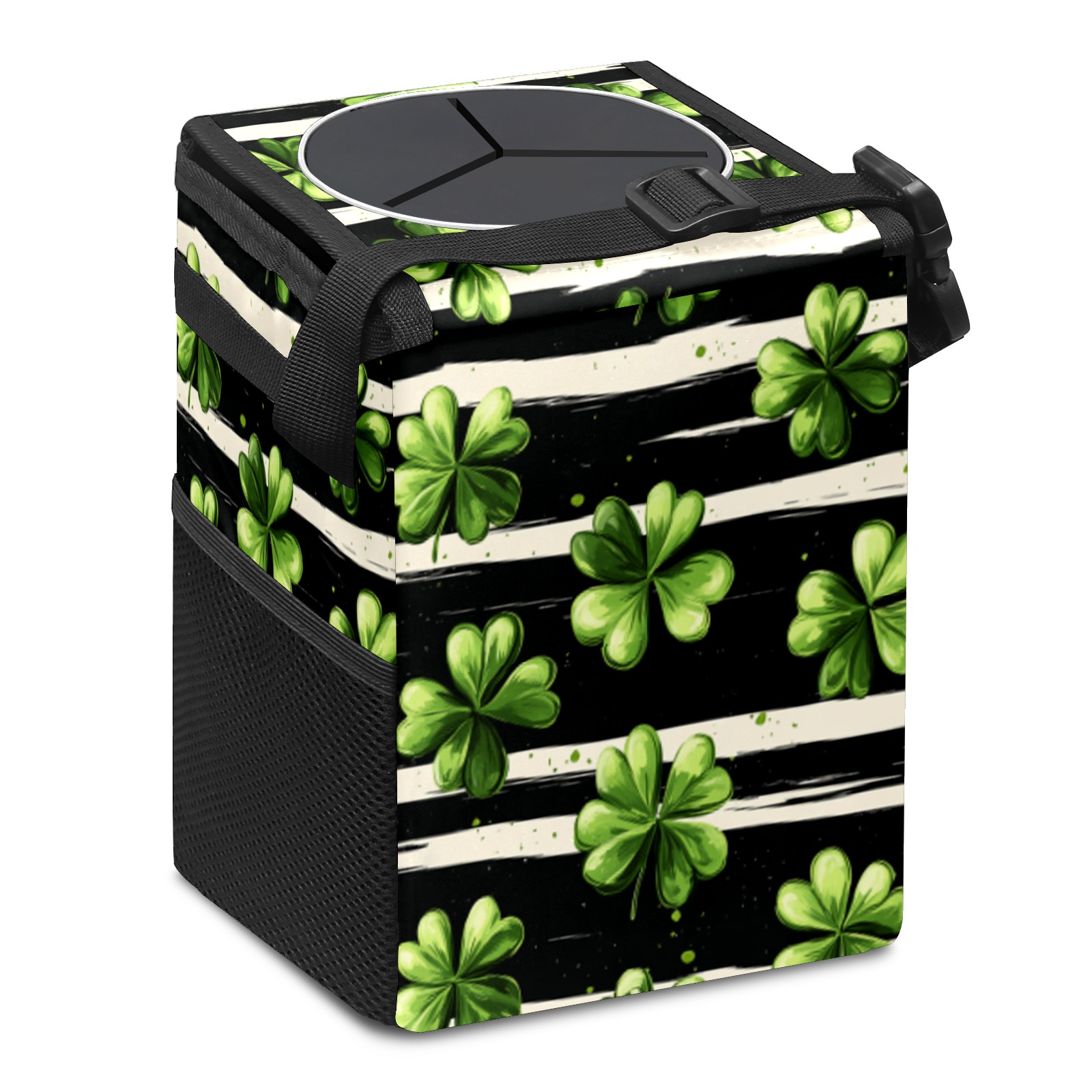 Universal Hanging Car Trash Can - Leakproof Design with Secure Lid | Fits SUV, Truck, Van | Front & Back Seat Friendly | Smart Automotive Accessory Striped Clover Pattern5