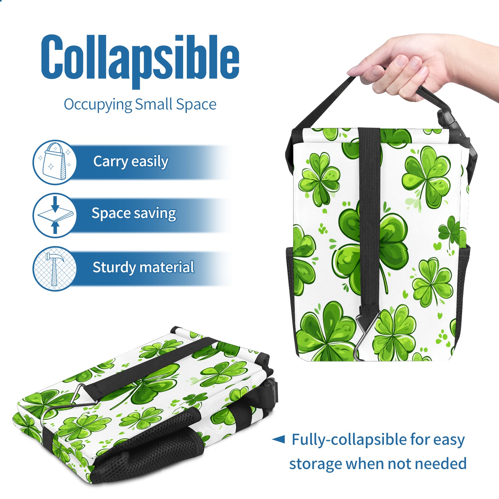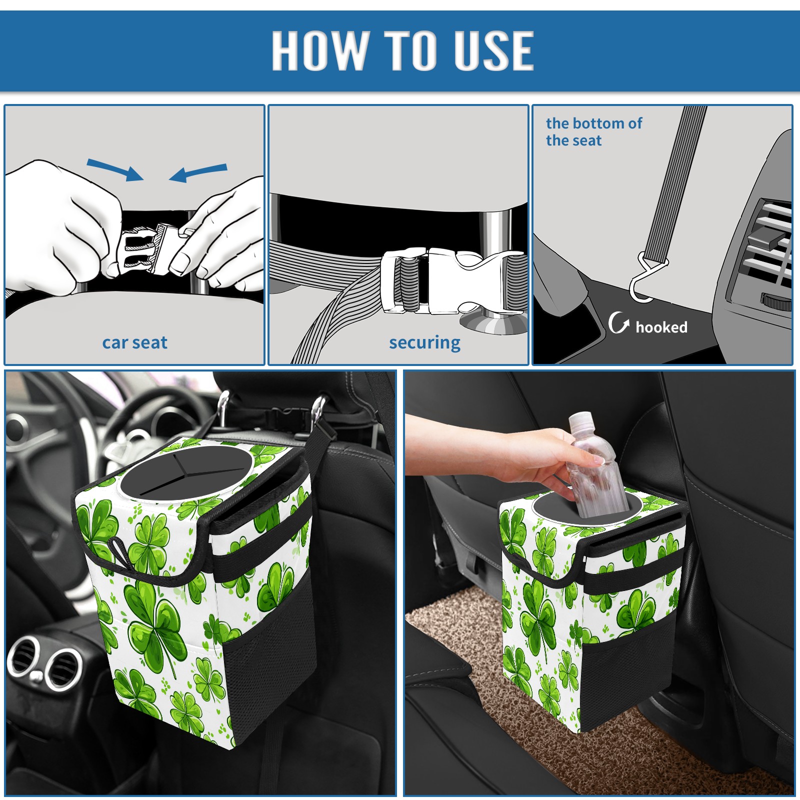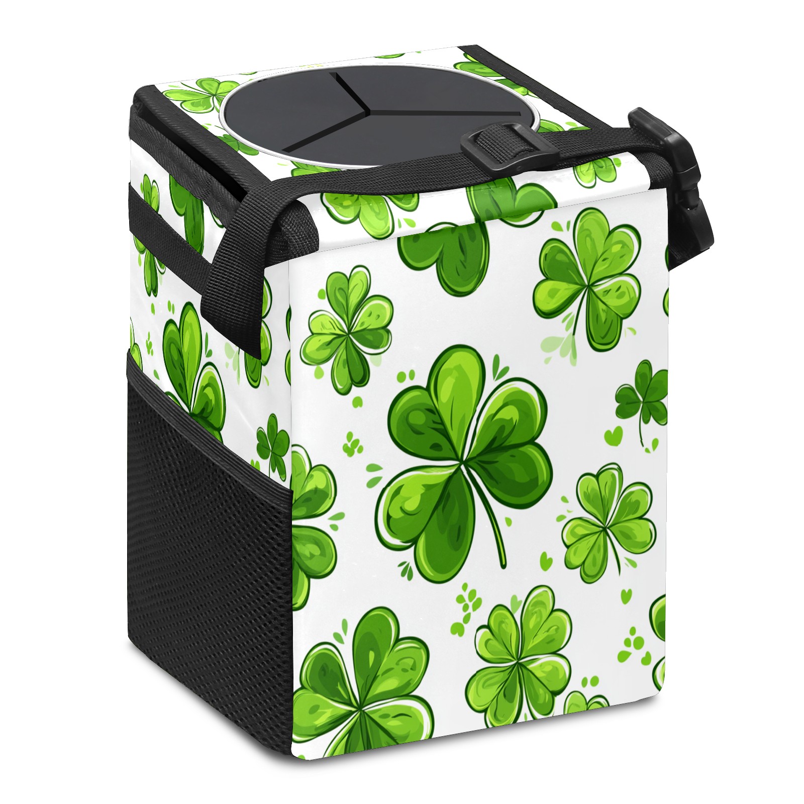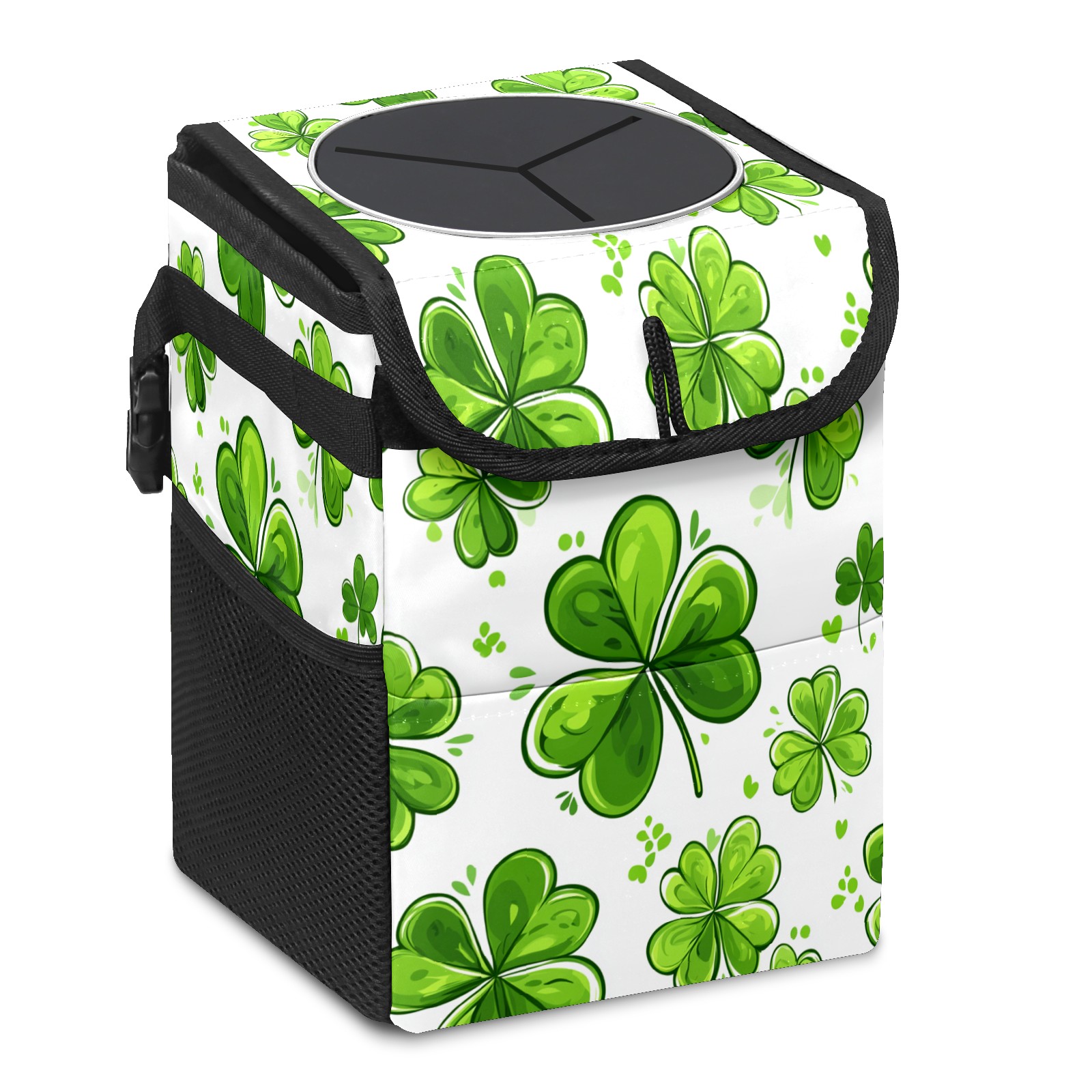 Car Trash Can with Lid & Multiple Pockets ,Foldable Vehicle Garbage Bin Waterproof & Leak Proof Automotive Garbage Cans Car Accessories for Women Men Road Trip Essentials Repeating Shamrock Pattern