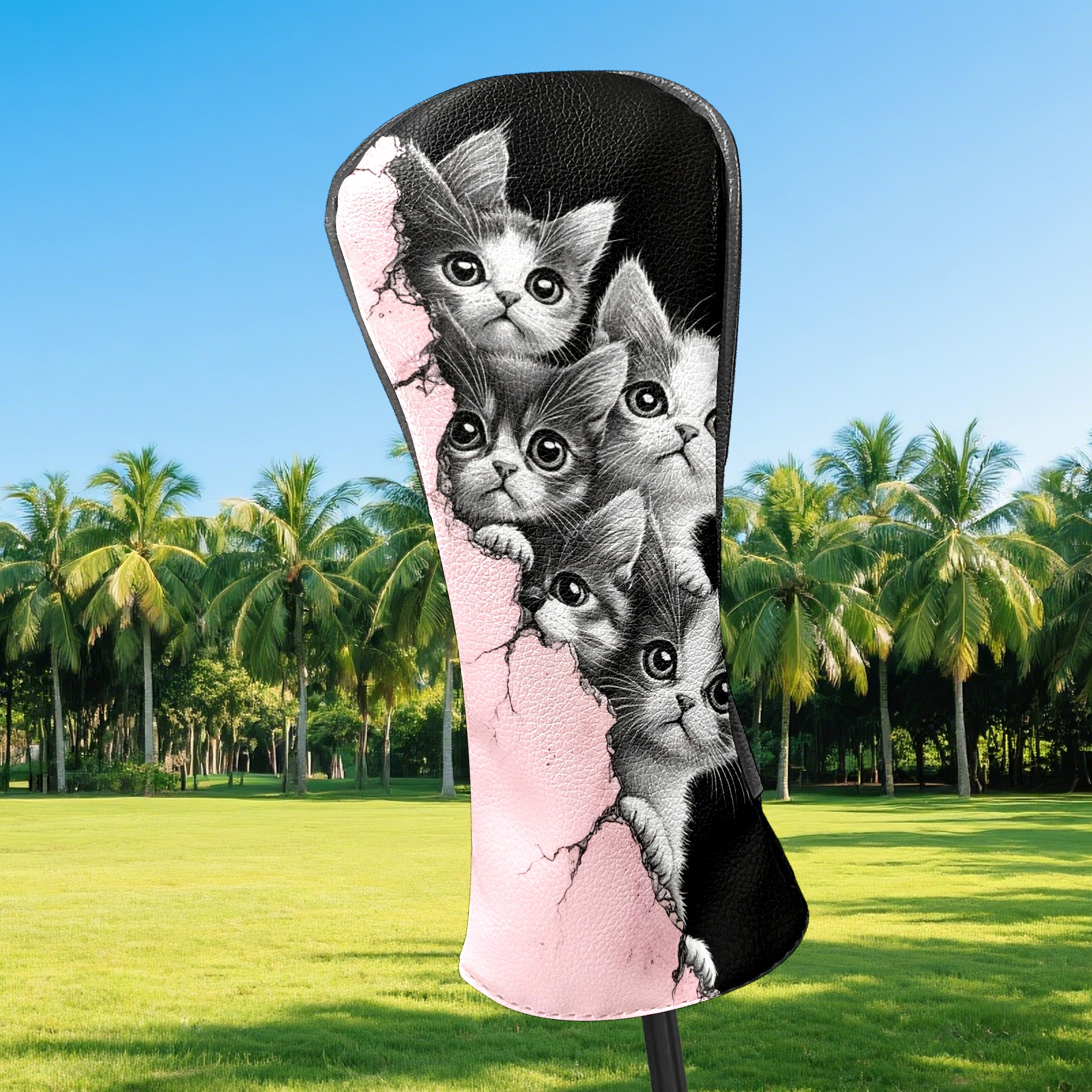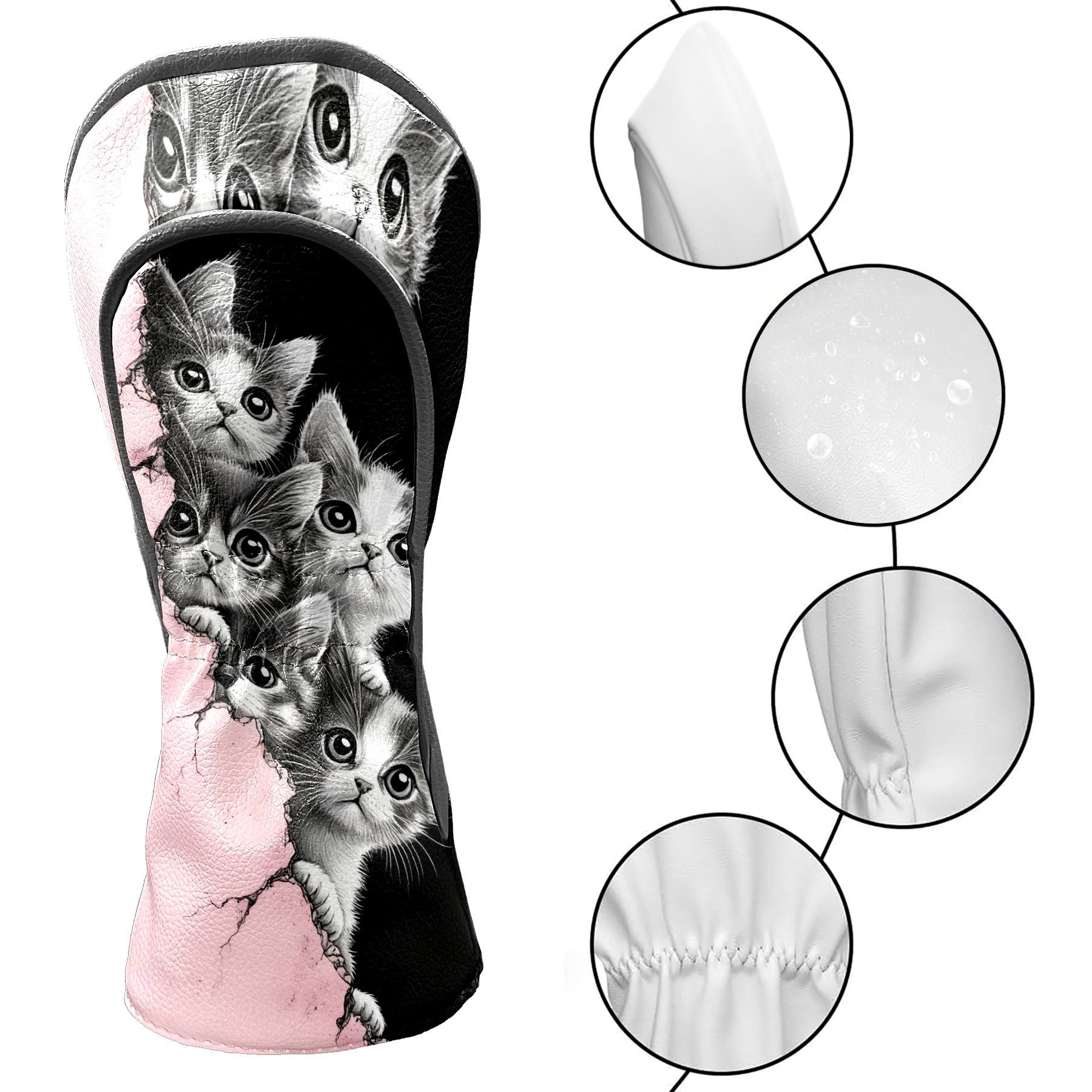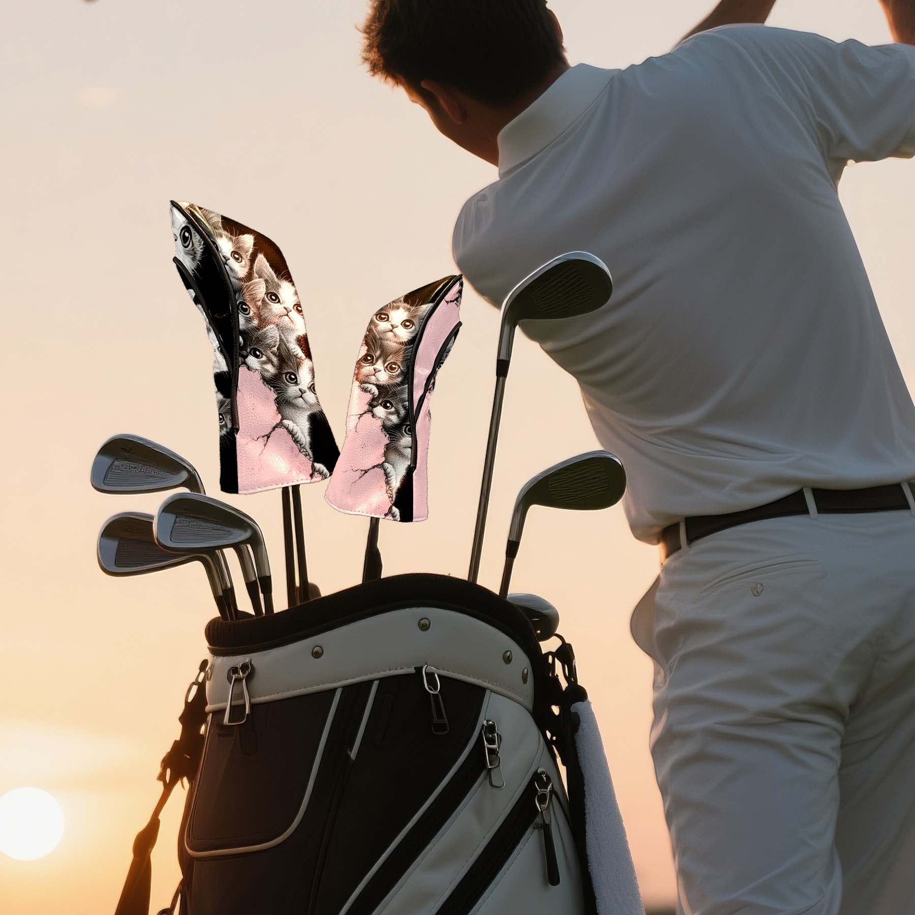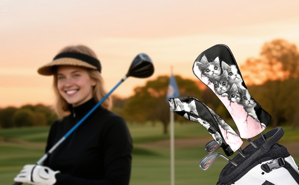 Golf Club Head Covers Premium Leather Driver Head Cover, Golf Head Covers for Woods and Driver Waterproof Golf Headcovers with Anti-Scratch Lining for Men Women (Cute Cats)