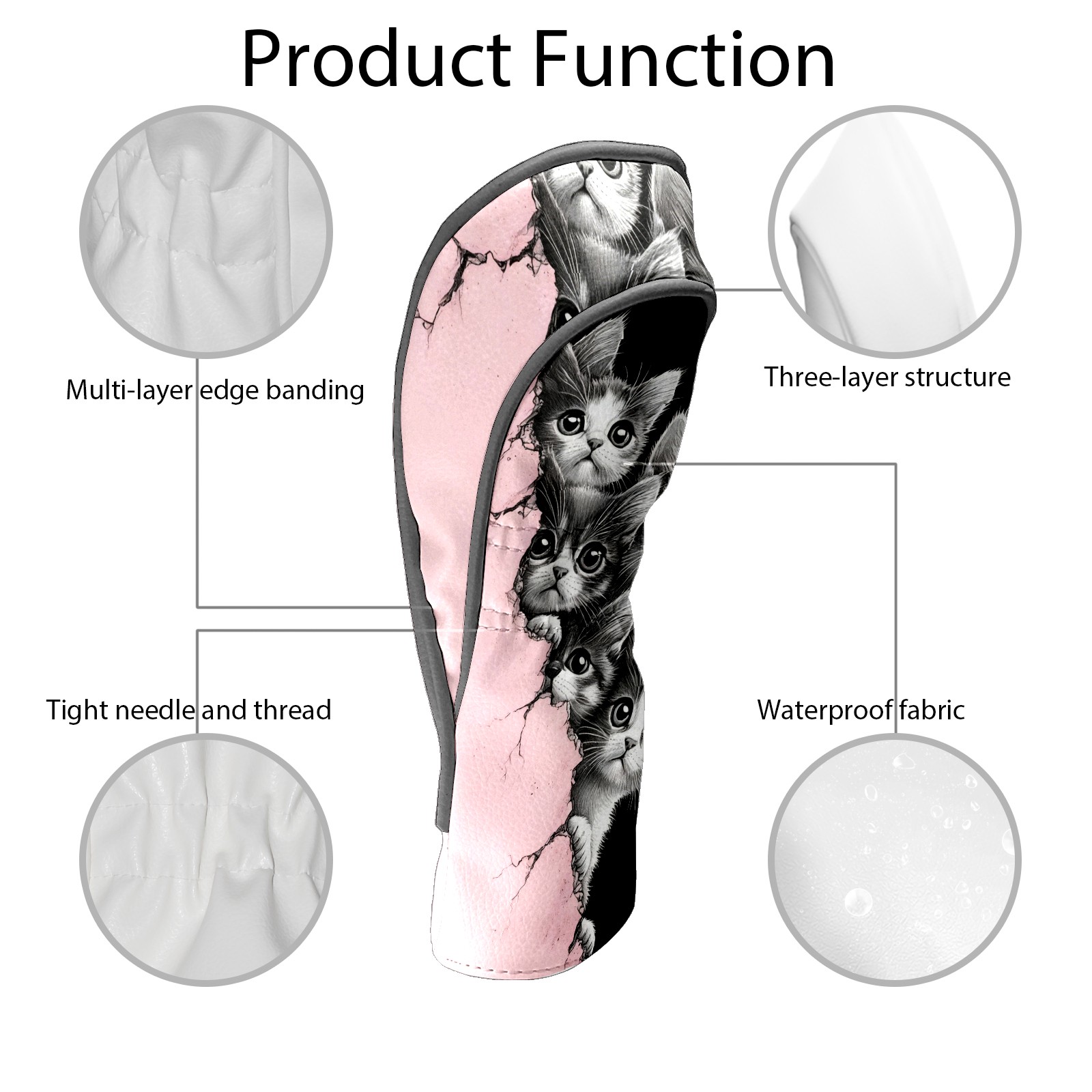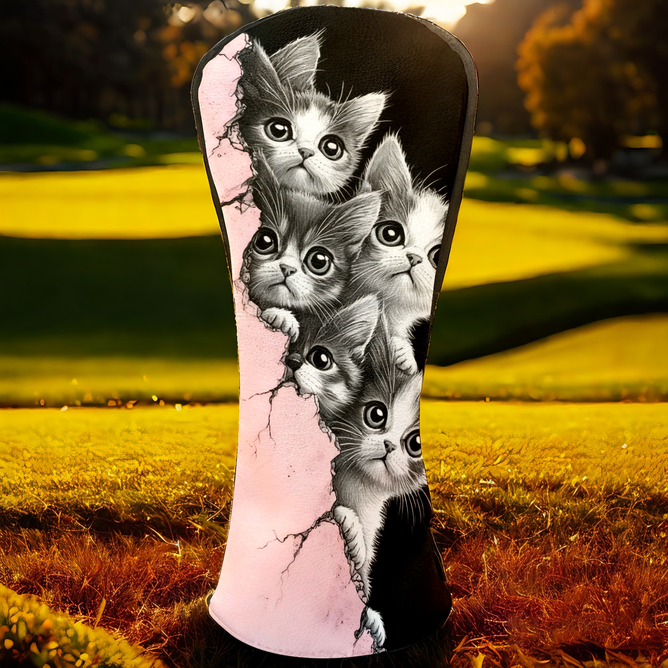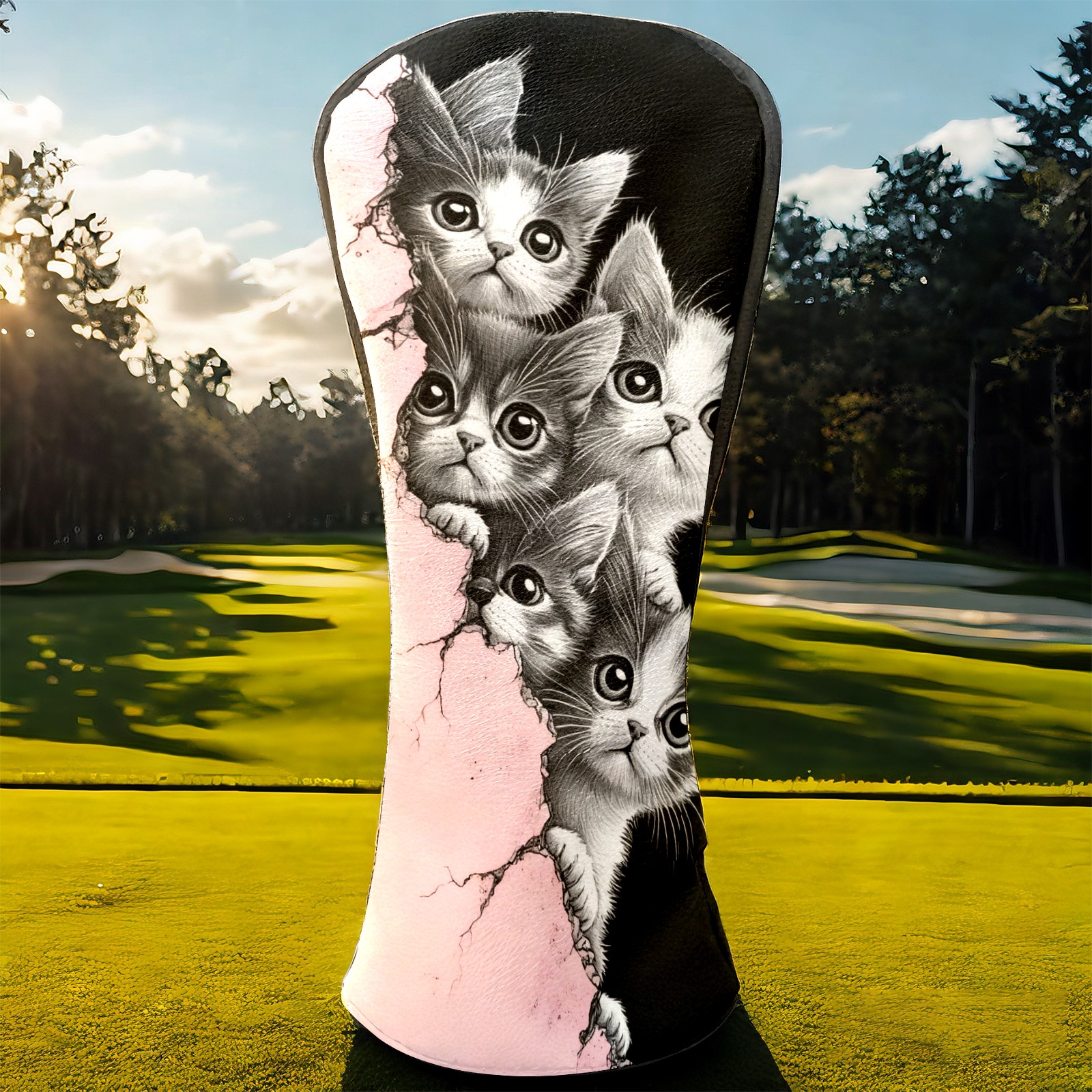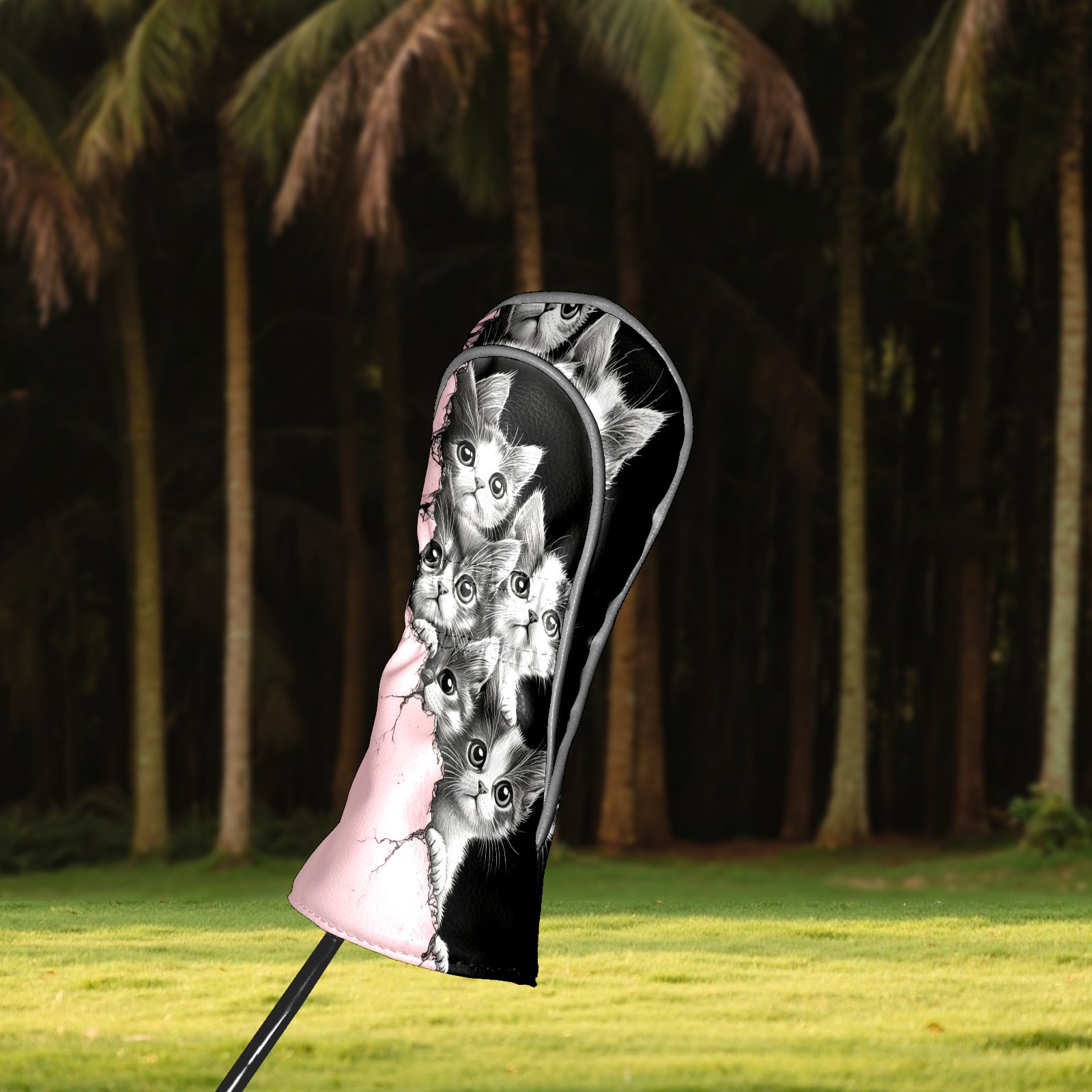 Golf Club Head Covers Premium Leather Driver Head Cover, Golf Head Covers for Woods and Driver Waterproof Golf Headcovers with Anti-Scratch Lining for Men Women (Cute Cats)