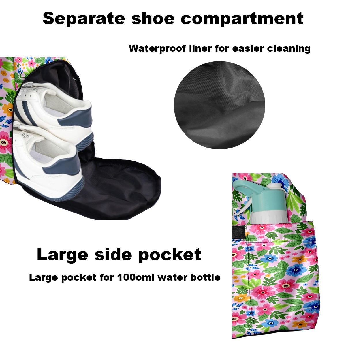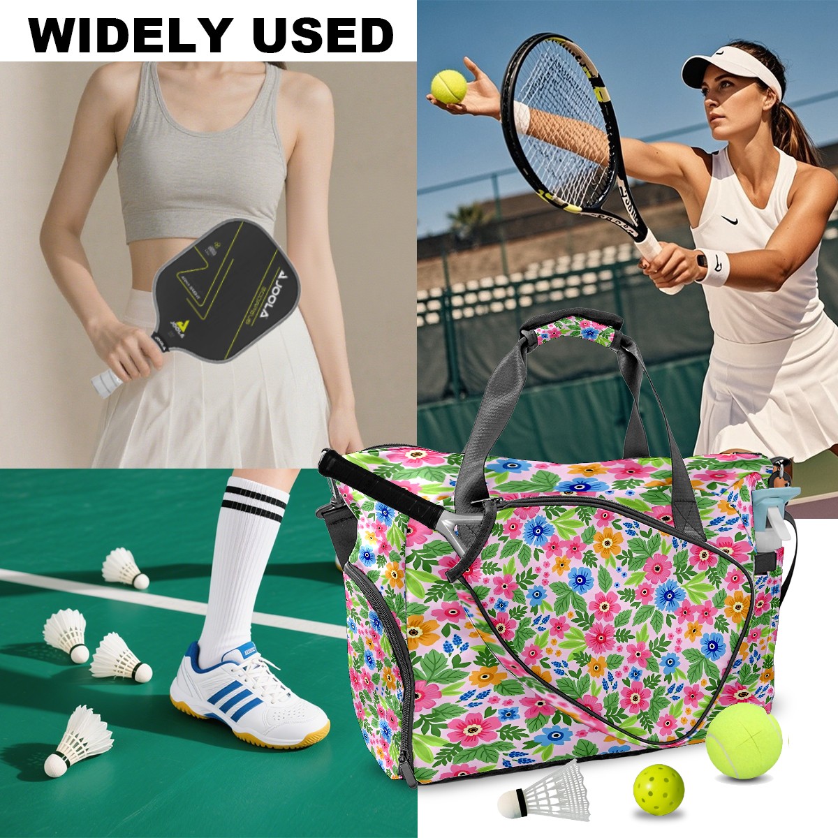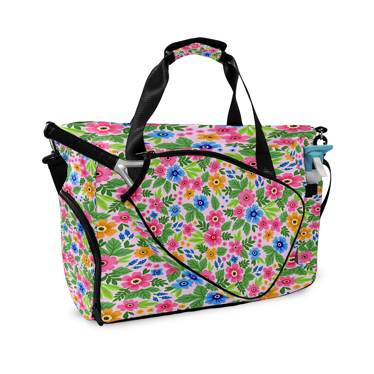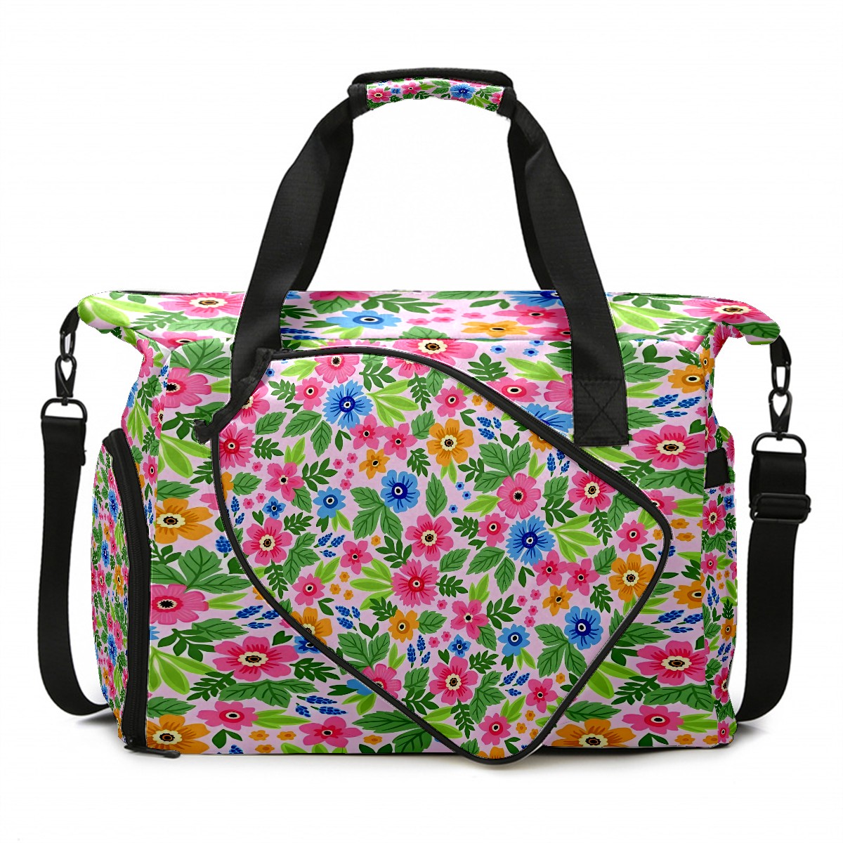 Lightweight Pickleball Tote Bag with Large Capacity, Shoe Compartment, Large Paddle Storage, Water Bottle Holder & Fence Hook for Women & Men Flowers