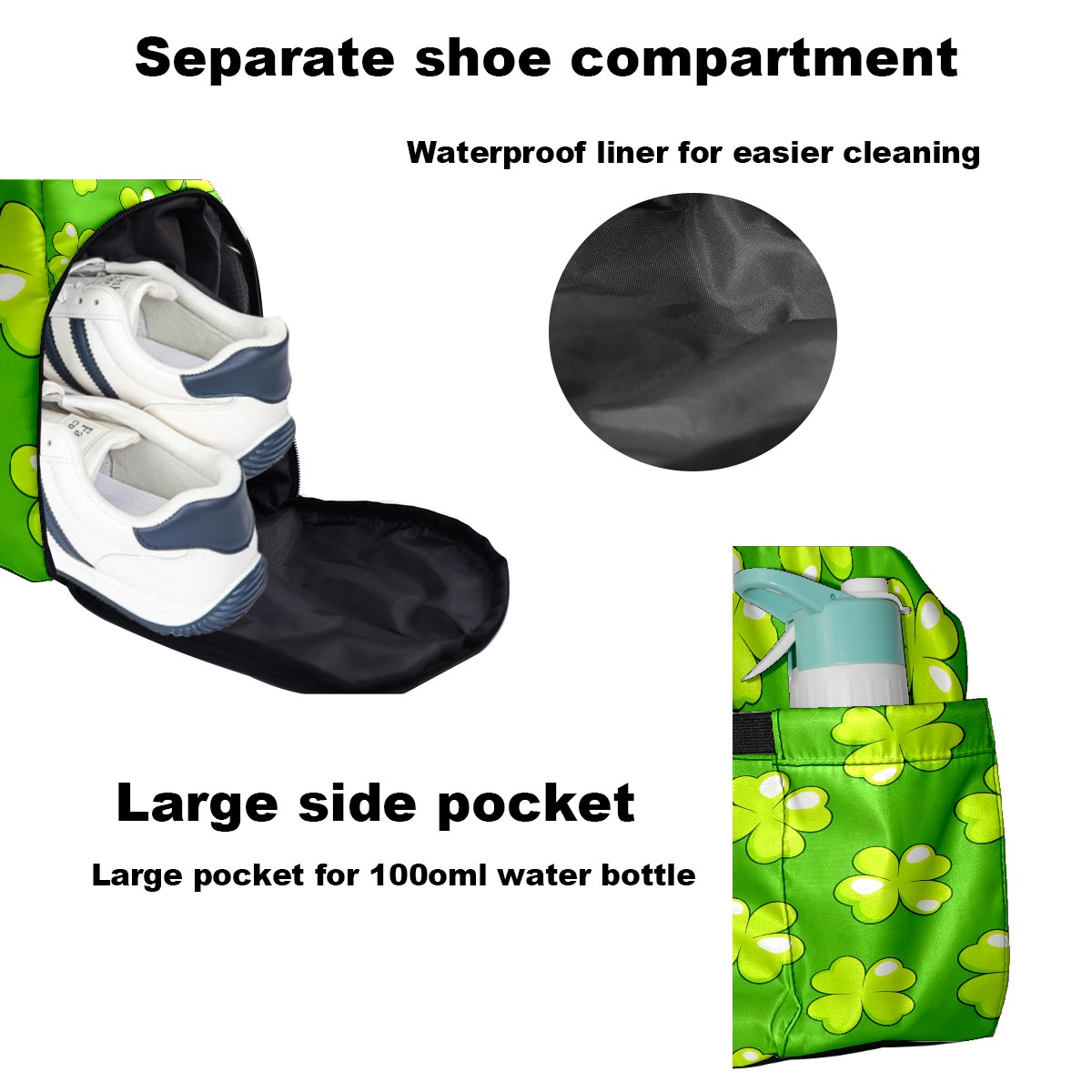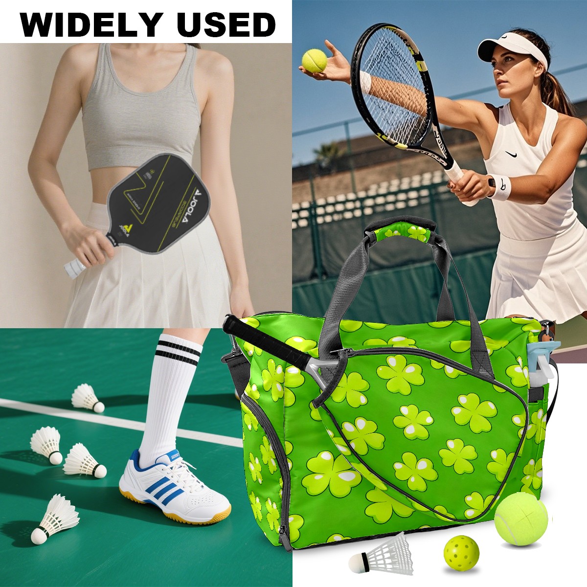 Lightweight Pickleball Tote Bag with Large Capacity, Shoe Compartment, Large Paddle Storage, Water Bottle Holder & Fence Hook for Women & Men Trifolium