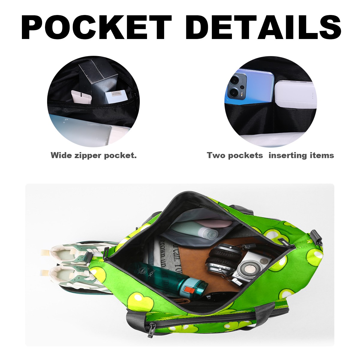• <p>Multifunctional Gym Travel Bag Made of Twill Fabric 22cm x 48cm x 35cm (8.7in x 18.9in x 13.8in) Made of lightweight and durable twill fabric, this bag is perfect for an active lifestyle. The spacious main compartment easily holds clothing, towels, and a full set of gym gear. A smart pocket precisely stores your phone, earphones, and gym membership card. A ventilated shoe compartment can hold size 10 athletic shoes, and a waterproof wet bag isolates swimwear or sweaty clothing, effectively preventing odors and clutter. It's a professional gym bag suitable for spinning and strength training, a stylish everyday handbag, and can also meet diverse needs such as pickleball, weekend trips, and overnight stays. Combining functionality and style, it seamlessly integrates into various scenarios.<br></p>