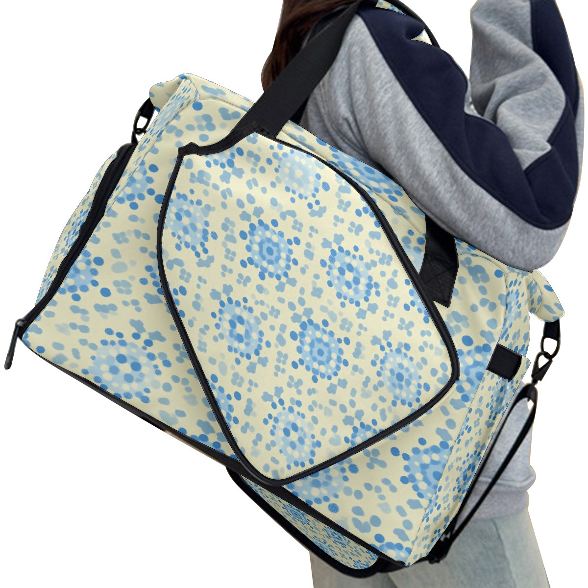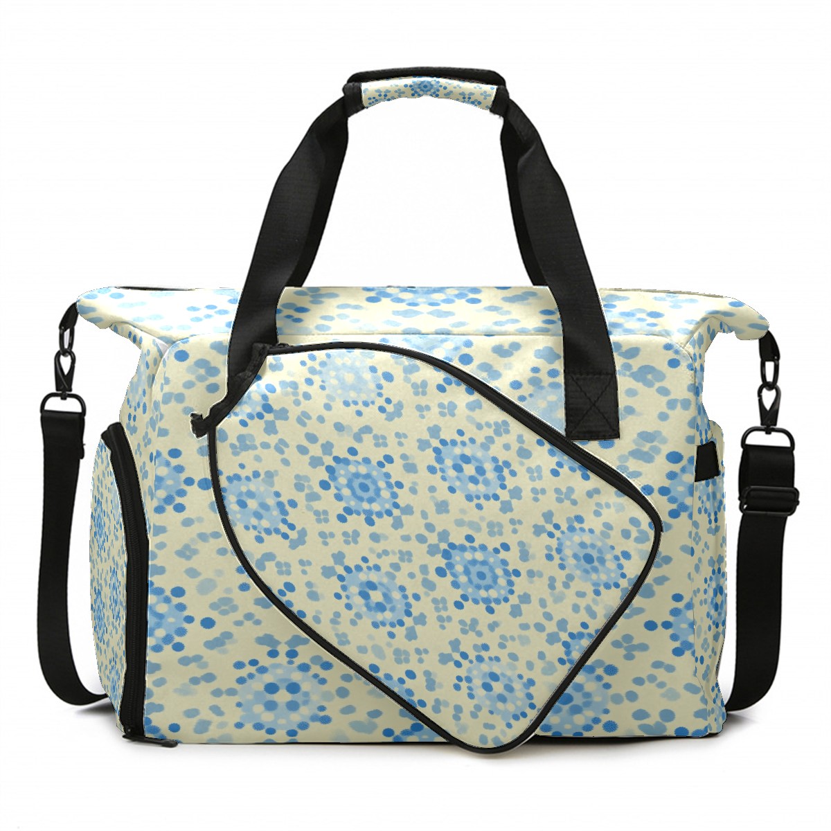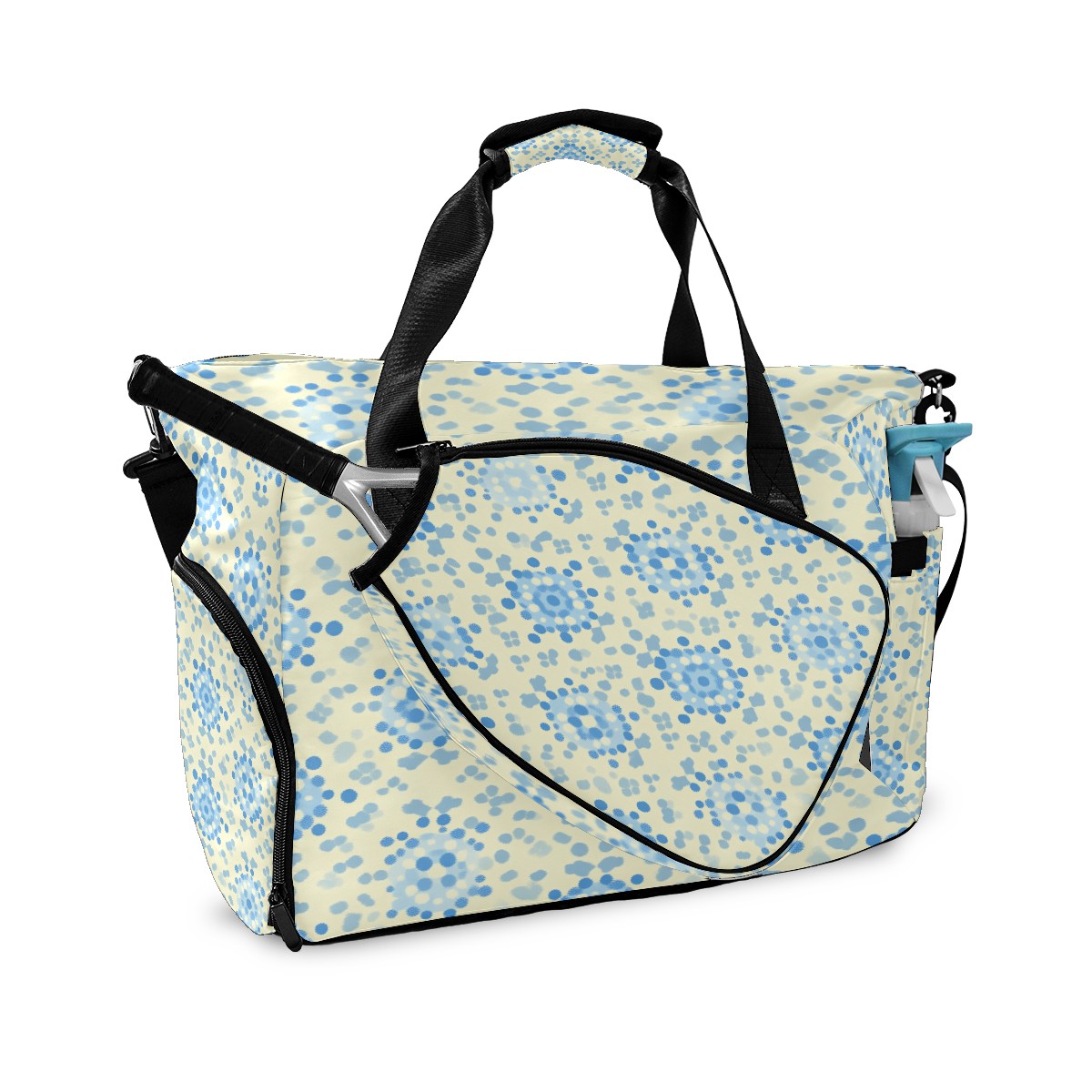Lightweight Pickleball Tote Bag with Large Capacity, Shoe Compartment, Large Paddle Storage, Water Bottle Holder & Fence Hook for Women & Men Blue And White Dots