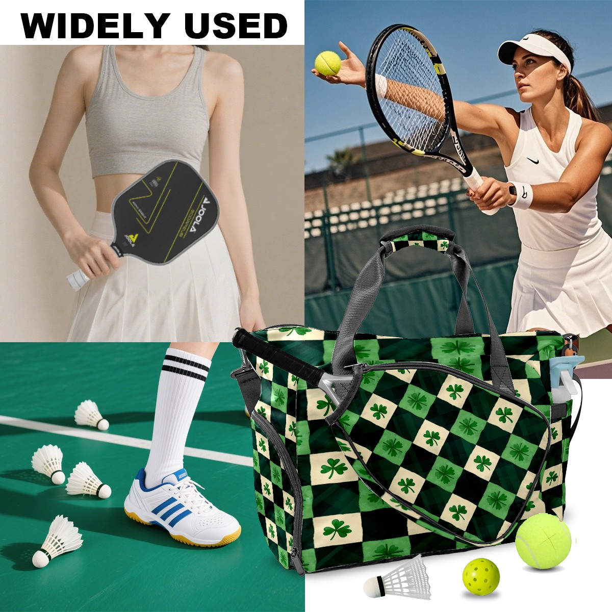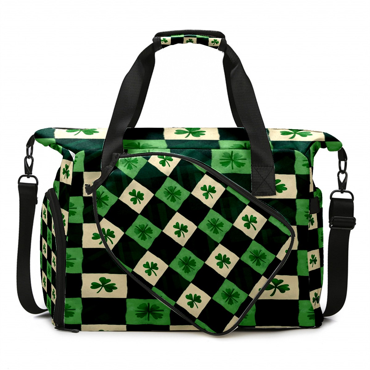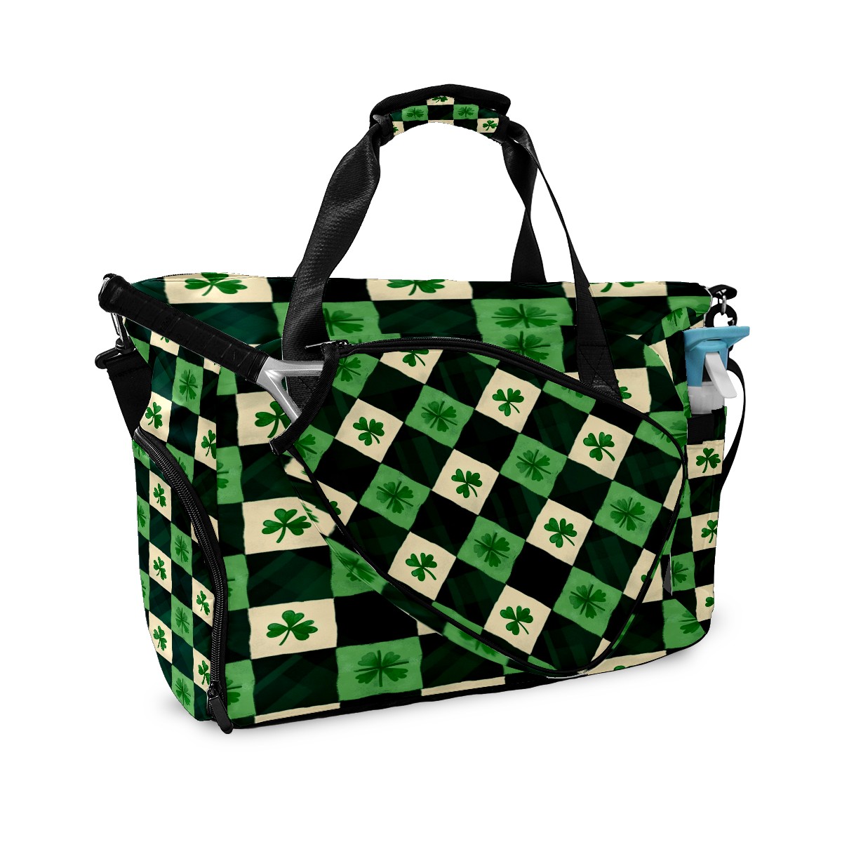 Lightweight Pickleball Tote Bag with Large Capacity, Shoe Compartment, Large Paddle Storage, Water Bottle Holder & Fence Hook for Women & Men St.patricks Day Checkered