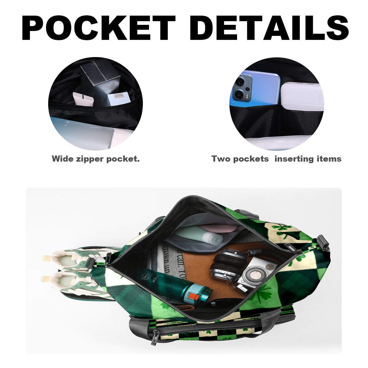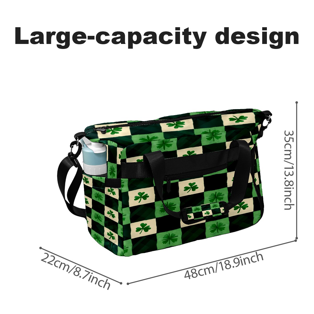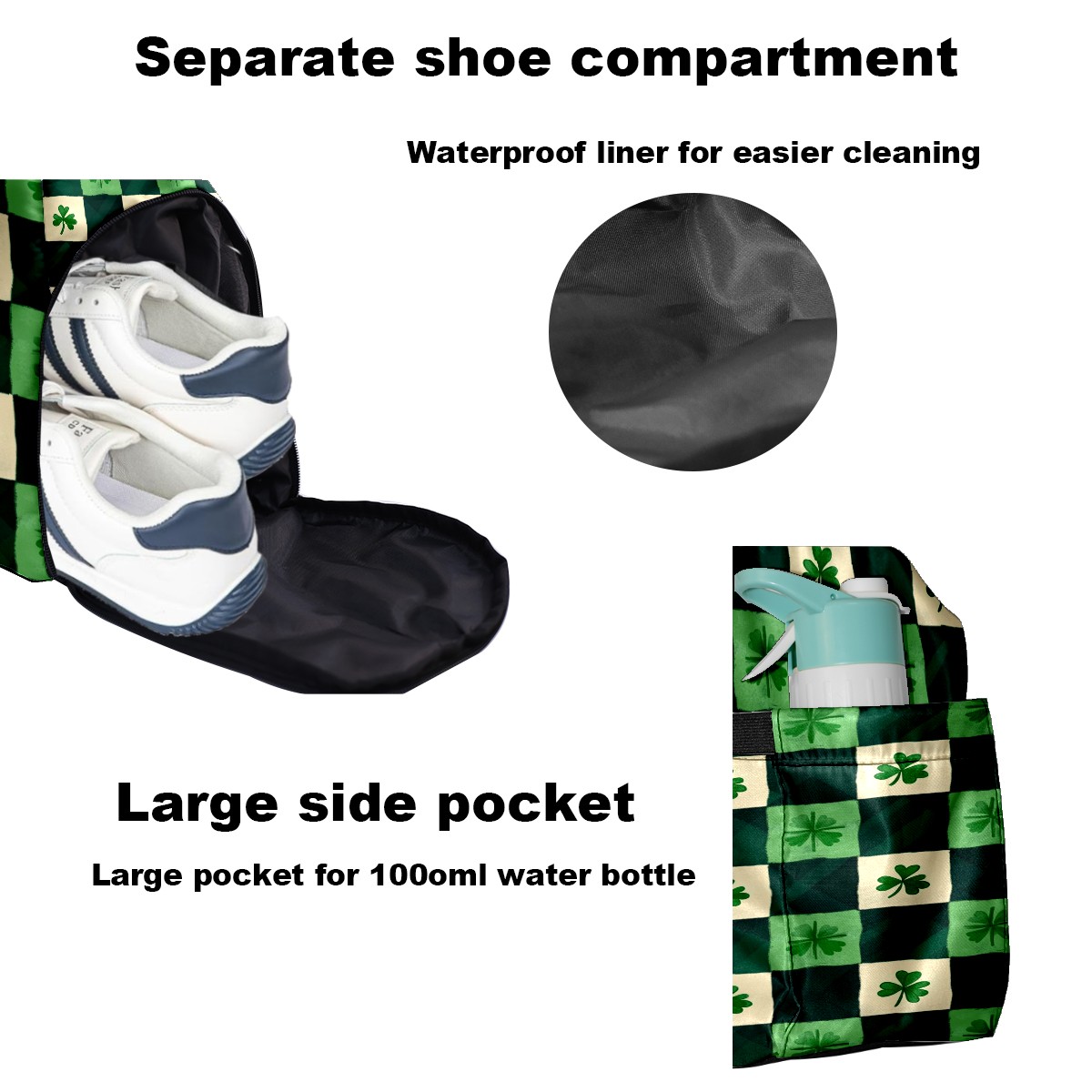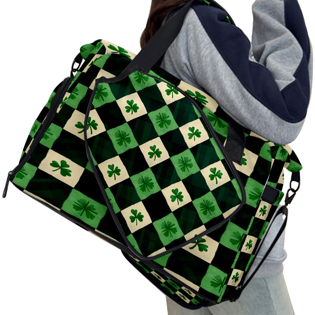 Lightweight Pickleball Tote Bag with Large Capacity, Shoe Compartment, Large Paddle Storage, Water Bottle Holder & Fence Hook for Women & Men St.patricks Day Checkered
