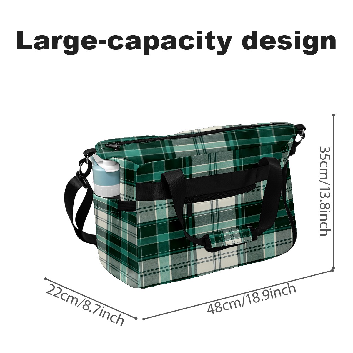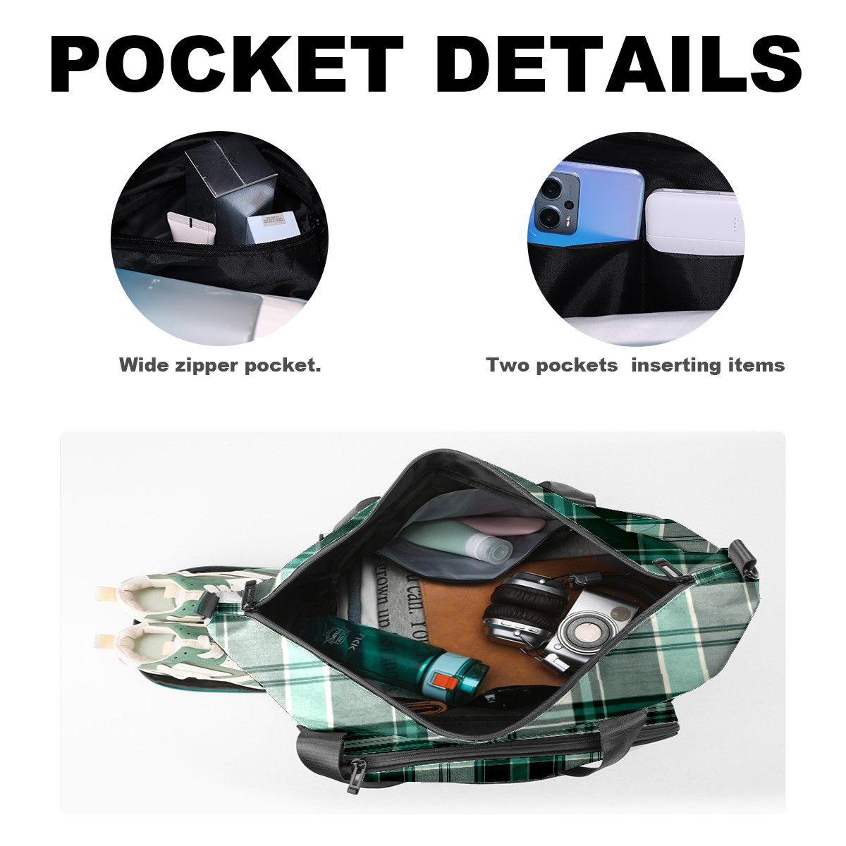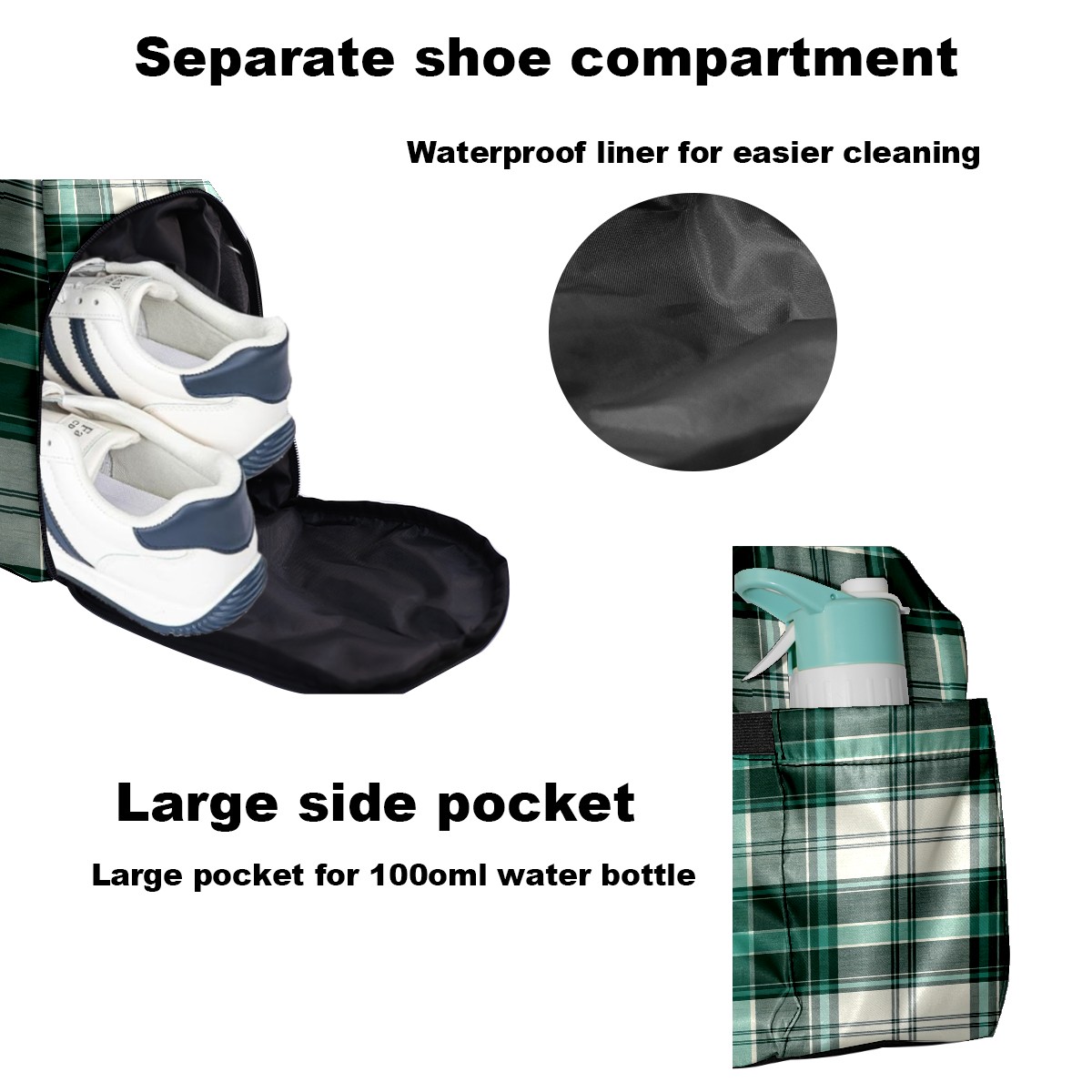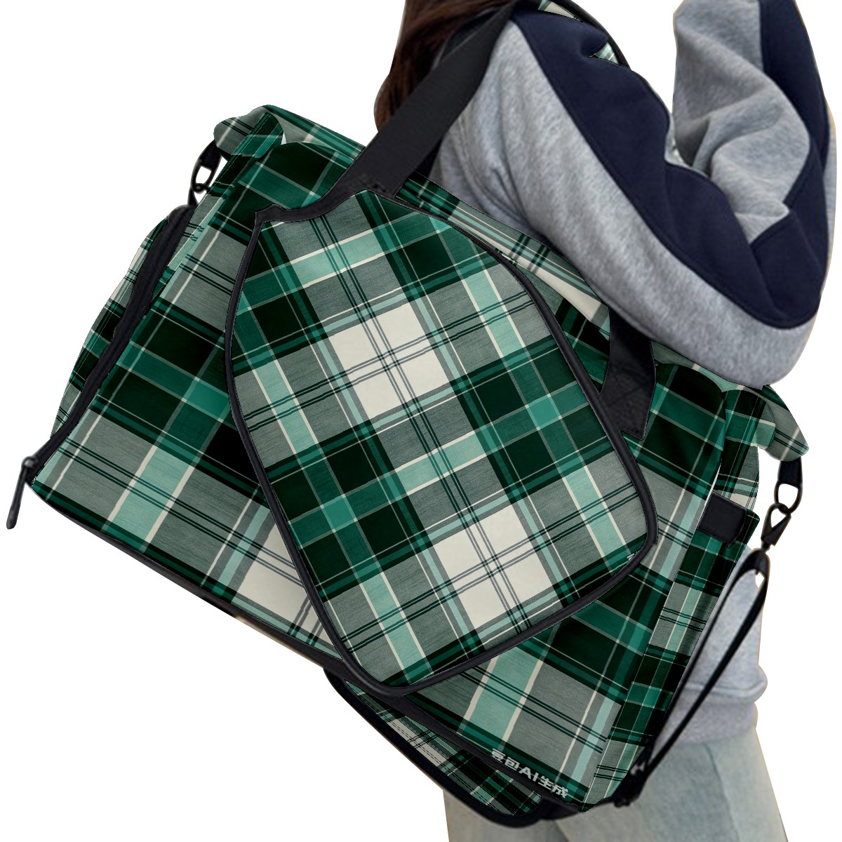 Lightweight Pickleball Tote Bag with Large Capacity, Shoe Compartment, Large Paddle Storage, Water Bottle Holder & Fence Hook for Women & Men Green White Checkered