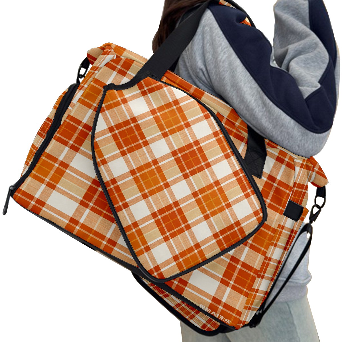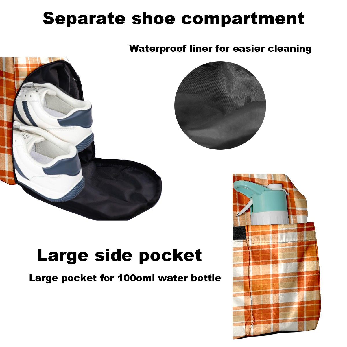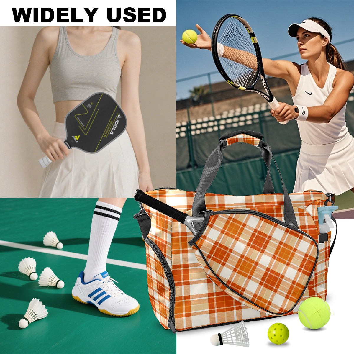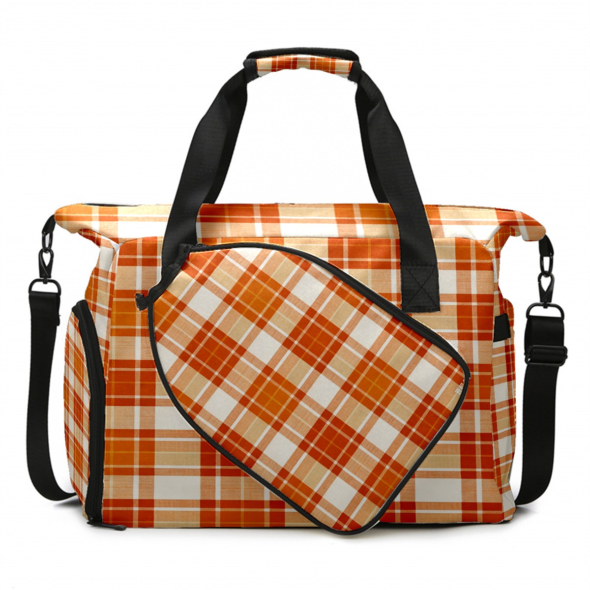 Lightweight Pickleball Tote Bag with Large Capacity, Shoe Compartment, Large Paddle Storage, Water Bottle Holder & Fence Hook for Women & Men Orange White Checkered