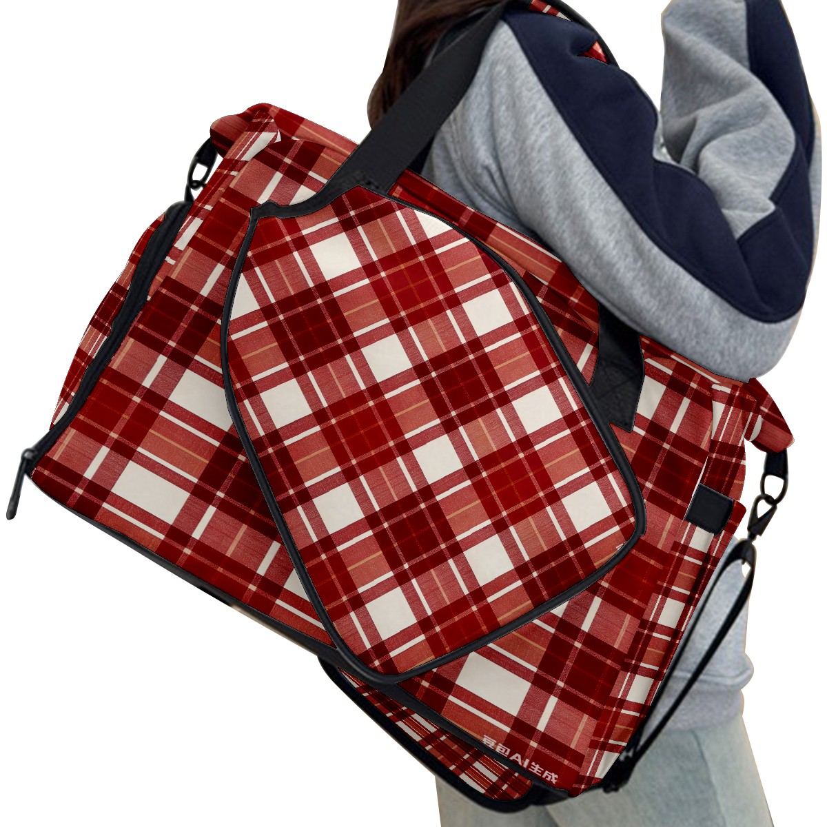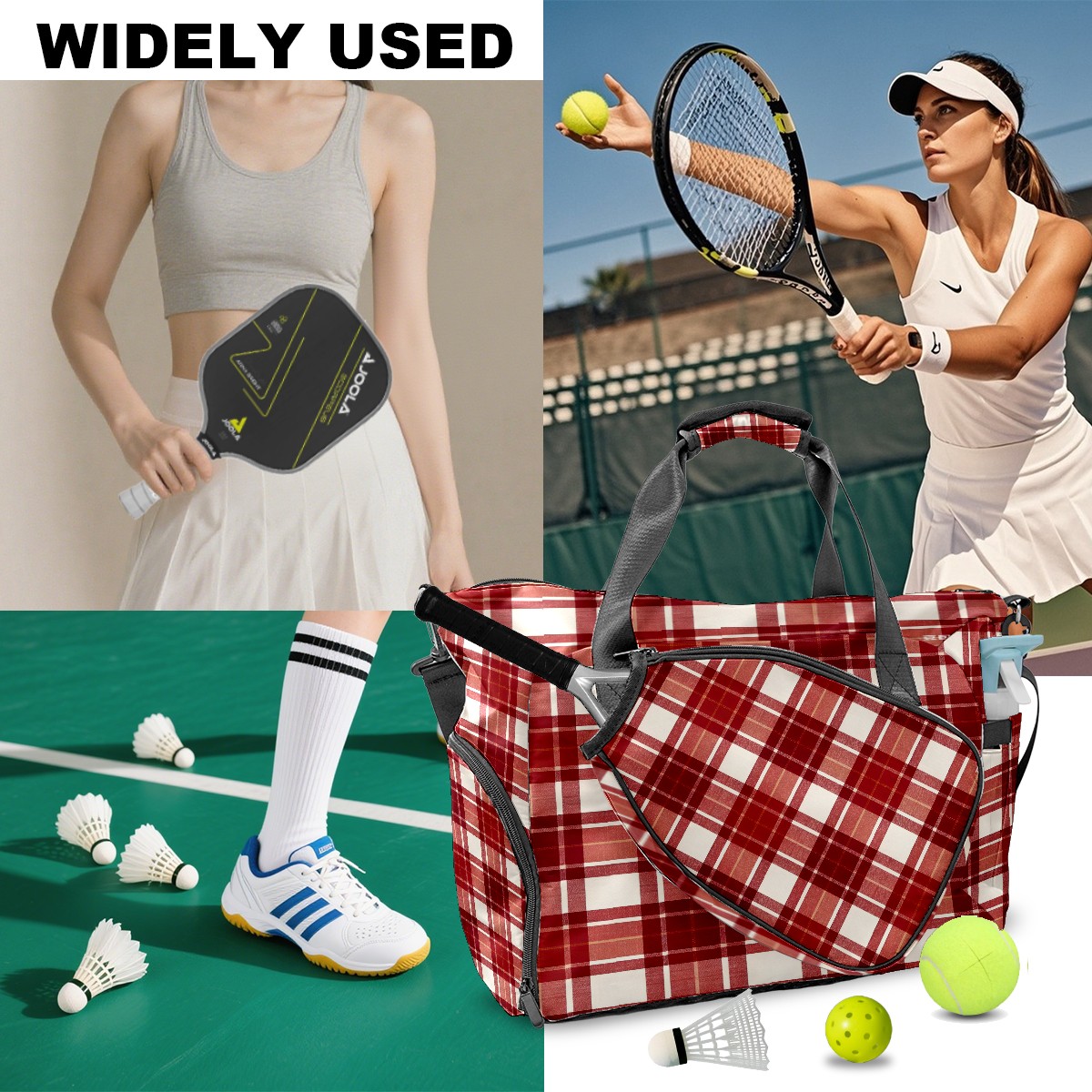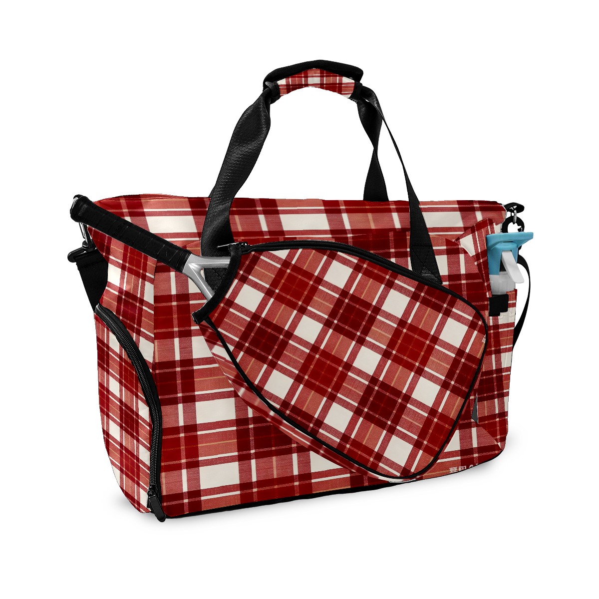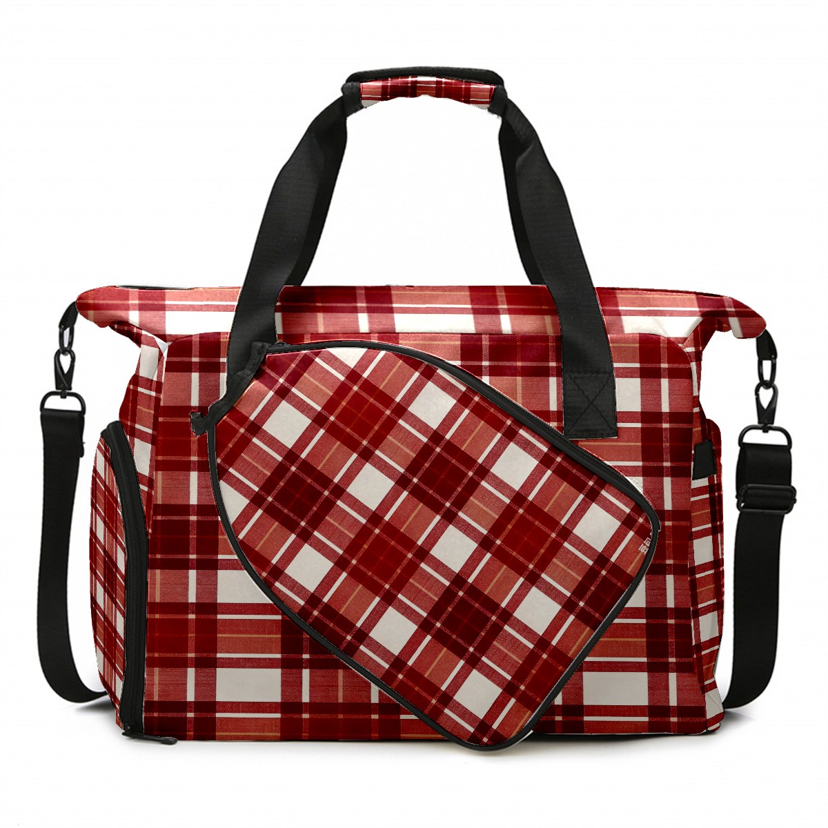 Lightweight Pickleball Tote Bag with Large Capacity, Shoe Compartment, Large Paddle Storage, Water Bottle Holder & Fence Hook for Women & Men Red White Checkered