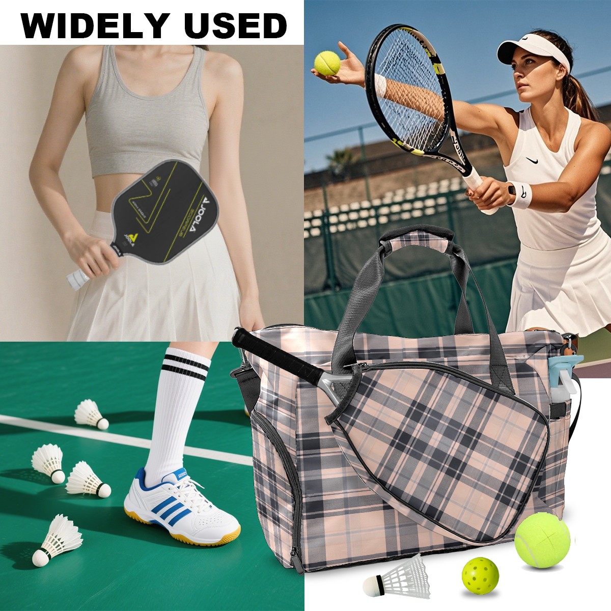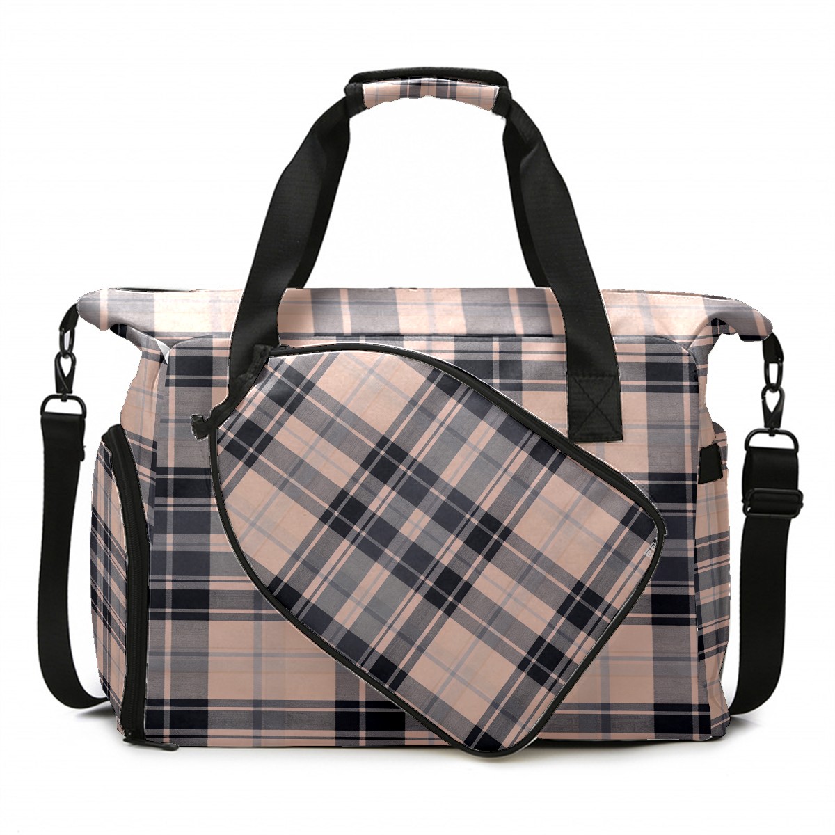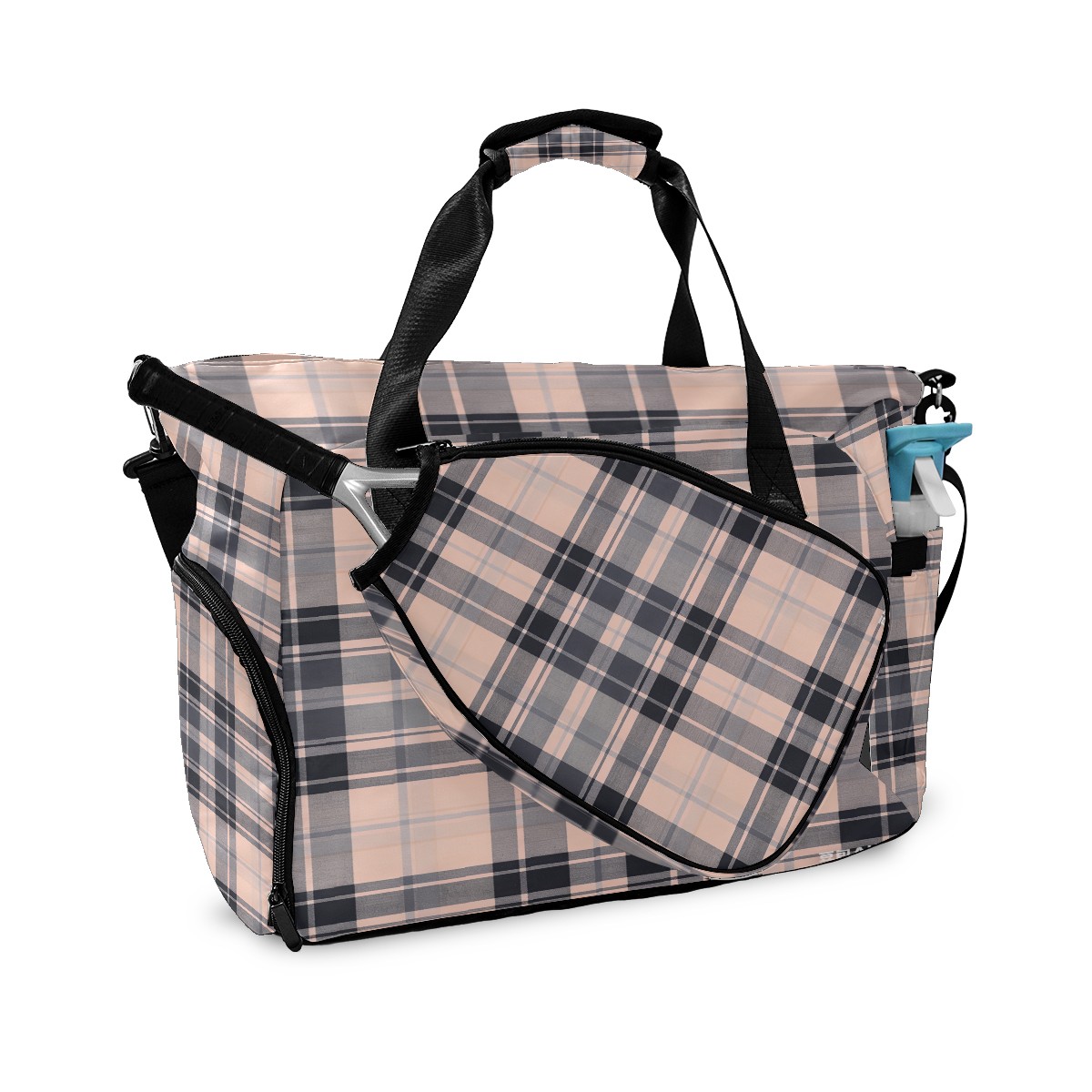Lightweight Pickleball Tote Bag with Large Capacity, Shoe Compartment, Large Paddle Storage, Water Bottle Holder & Fence Hook for Women & Men Pink White Checkered