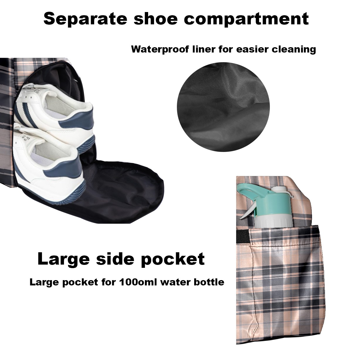 <p>Multifunctional Gym Travel Bag Made of Twill Fabric 22cm x 48cm x 35cm (8.7in x 18.9in x 13.8in) Made of lightweight and durable twill fabric, this bag is perfect for an active lifestyle. The spacious main compartment easily holds clothing, towels, and a full set of gym gear. A smart pocket precisely stores your phone, earphones, and gym membership card. A ventilated shoe compartment can hold size 10 athletic shoes, and a waterproof wet bag isolates swimwear or sweaty clothing, effectively preventing odors and clutter. It's a professional gym bag suitable for spinning and strength training, a stylish everyday handbag, and can also meet diverse needs such as pickleball, weekend trips, and overnight stays. Combining functionality and style, it seamlessly integrates into various scenarios.<br></p>