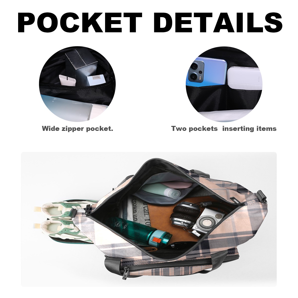 • <p>Multifunctional Gym Travel Bag Made of Twill Fabric 22cm x 48cm x 35cm (8.7in x 18.9in x 13.8in) Made of lightweight and durable twill fabric, this bag is perfect for an active lifestyle. The spacious main compartment easily holds clothing, towels, and a full set of gym gear. A smart pocket precisely stores your phone, earphones, and gym membership card. A ventilated shoe compartment can hold size 10 athletic shoes, and a waterproof wet bag isolates swimwear or sweaty clothing, effectively preventing odors and clutter. It's a professional gym bag suitable for spinning and strength training, a stylish everyday handbag, and can also meet diverse needs such as pickleball, weekend trips, and overnight stays. Combining functionality and style, it seamlessly integrates into various scenarios.<br></p>