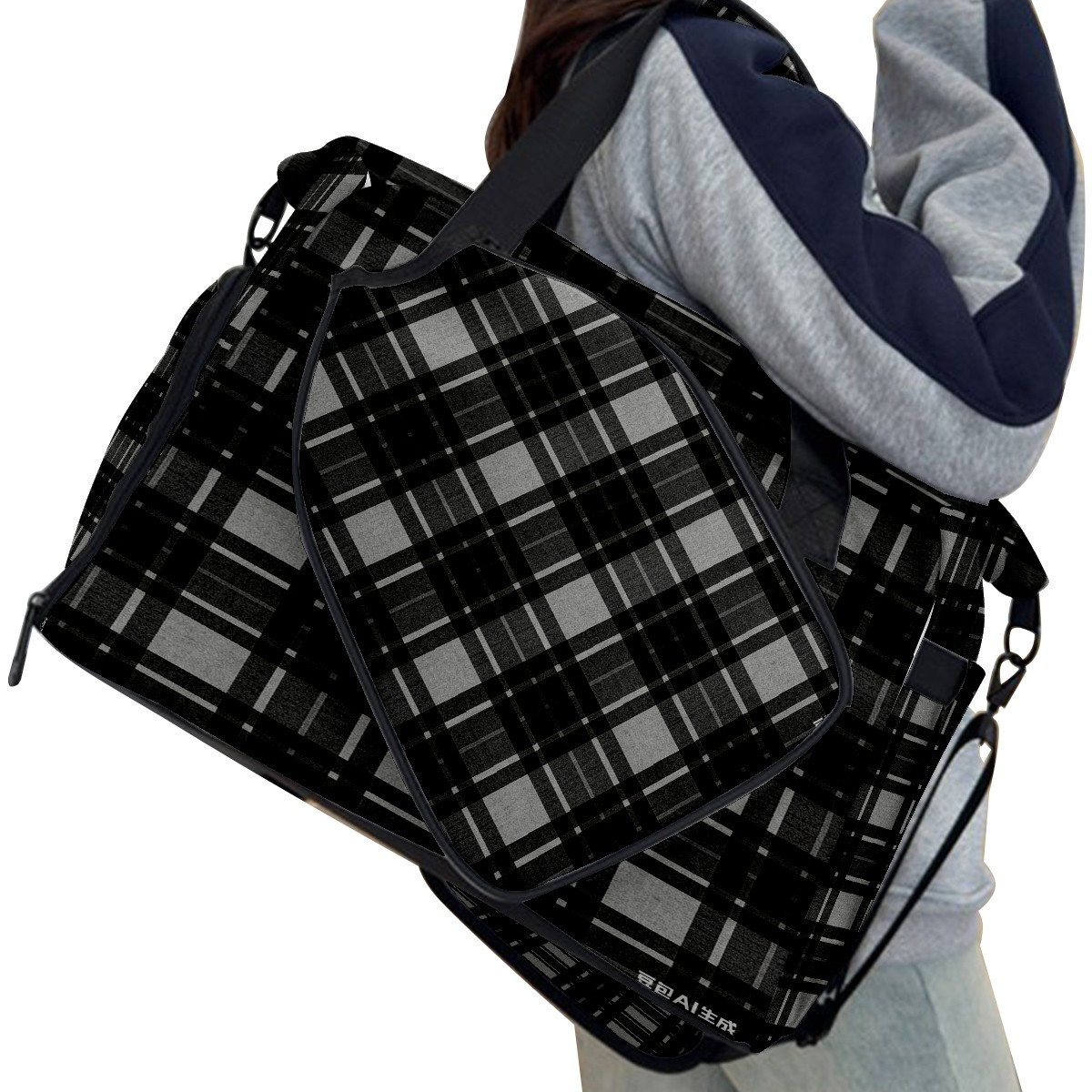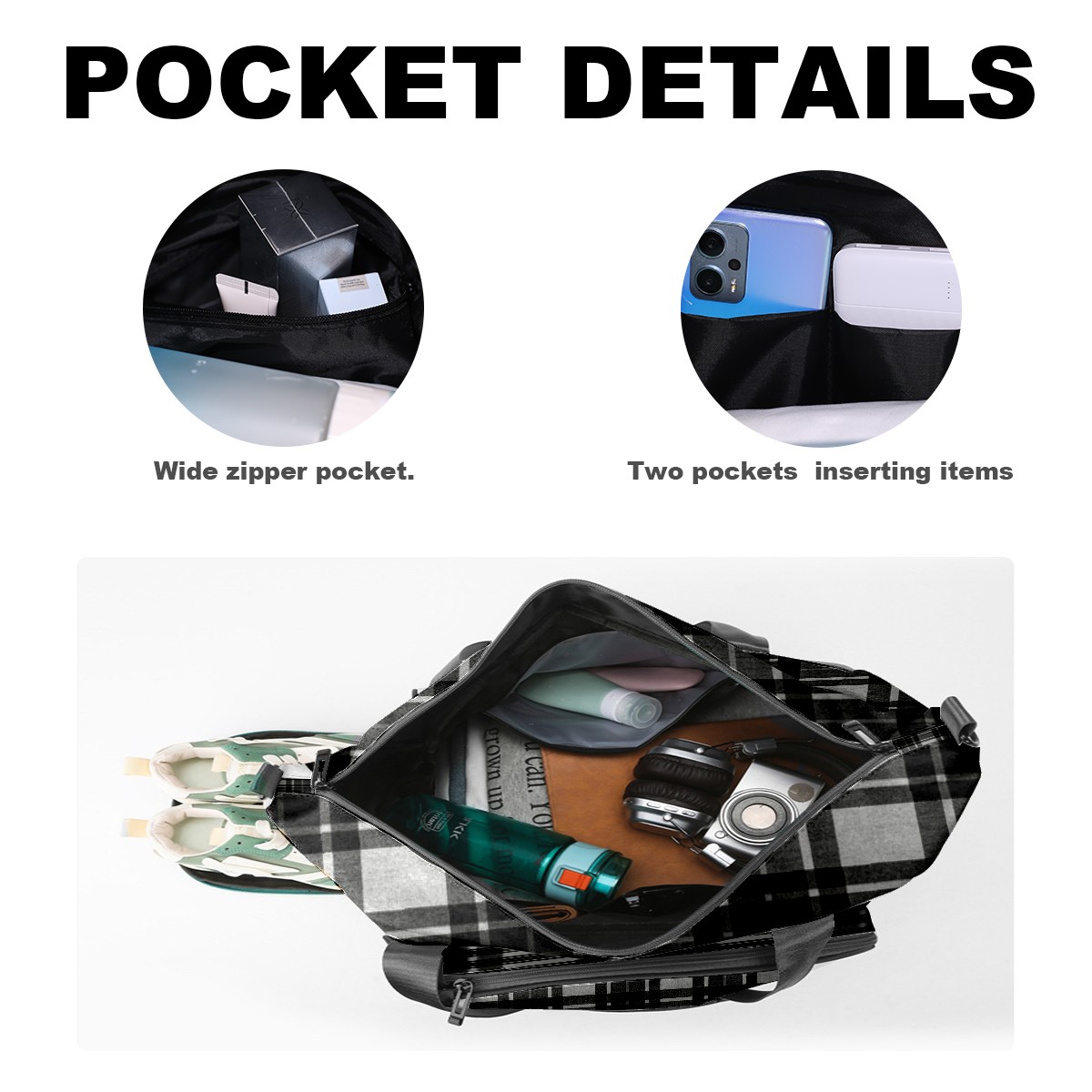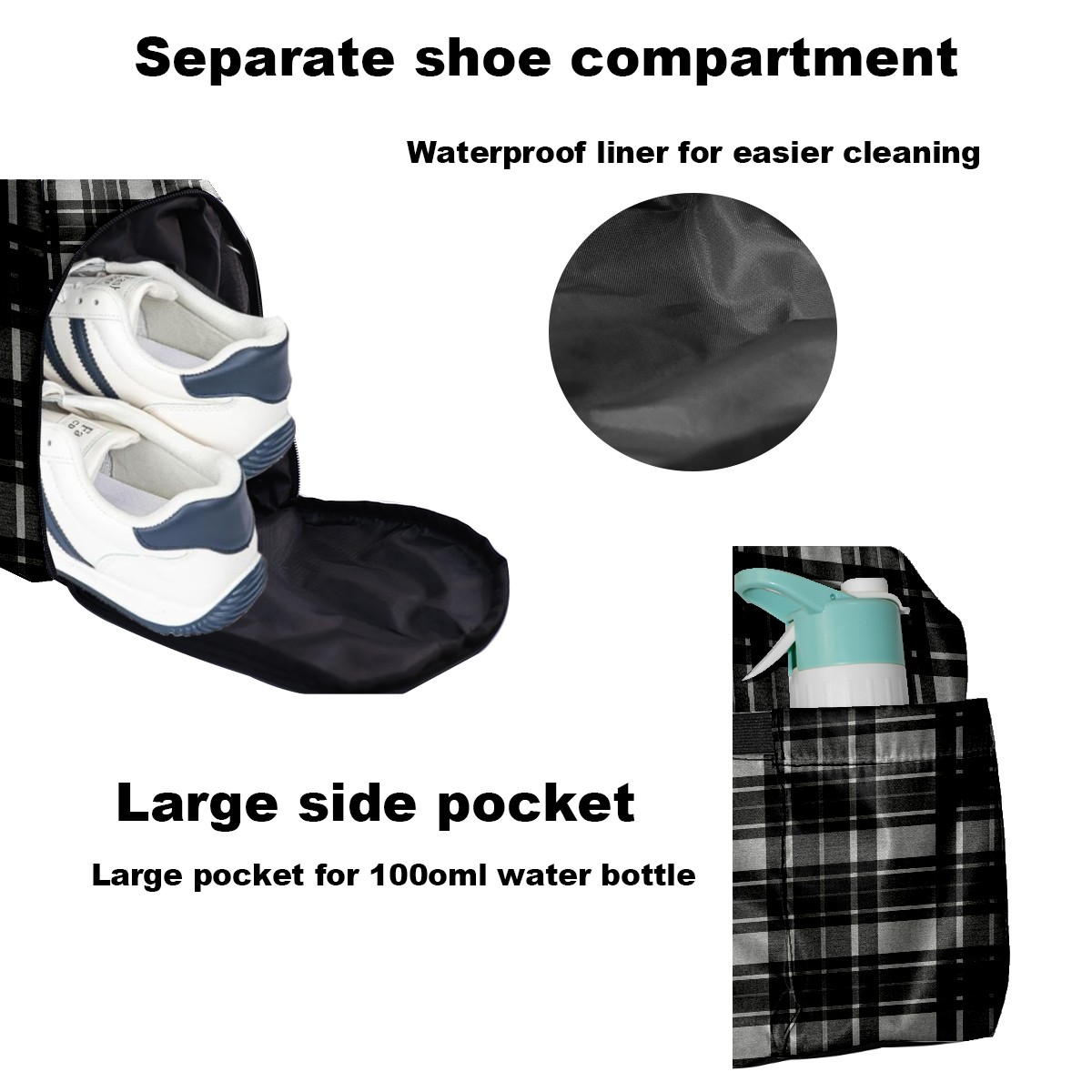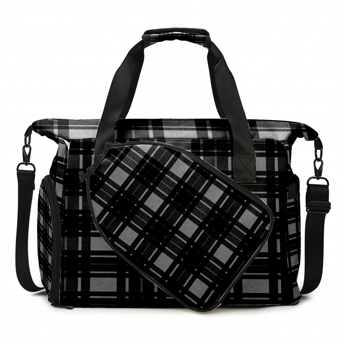 Lightweight Pickleball Tote Bag with Large Capacity, Shoe Compartment, Large Paddle Storage, Water Bottle Holder & Fence Hook for Women & Men Black White Checkered