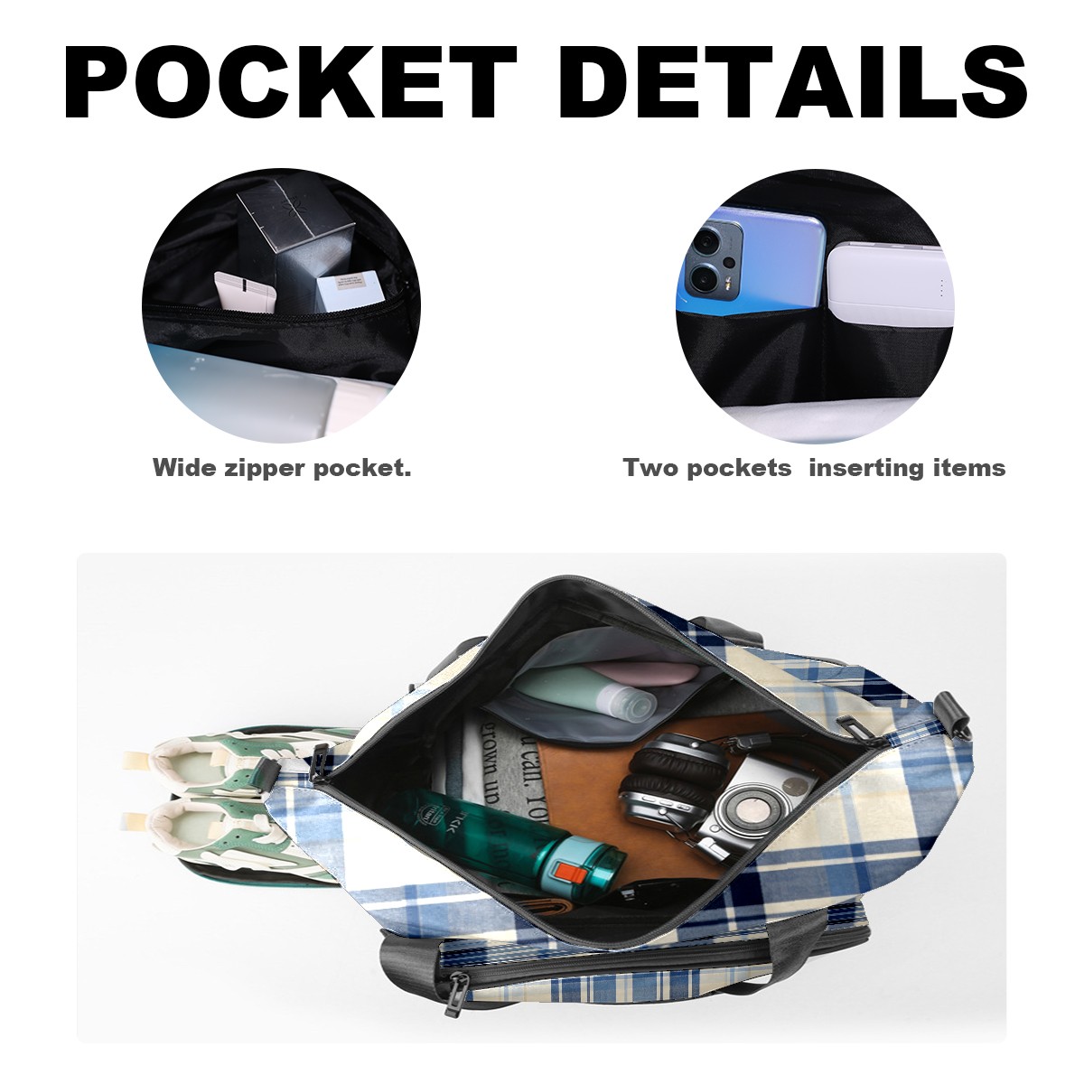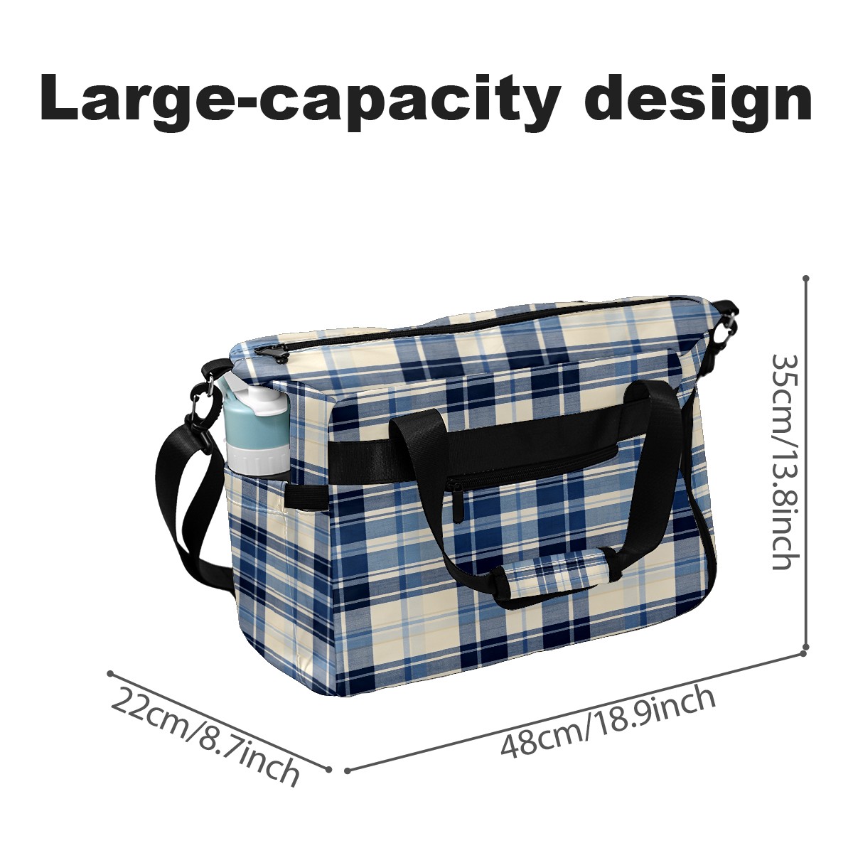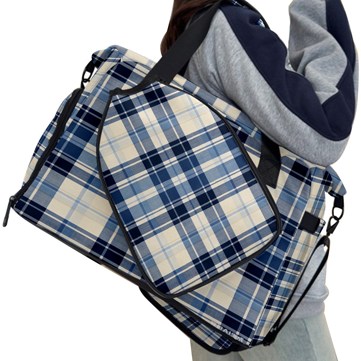 Lightweight Pickleball Tote Bag with Large Capacity, Shoe Compartment, Large Paddle Storage, Water Bottle Holder & Fence Hook for Women & Men Blue White Checkered