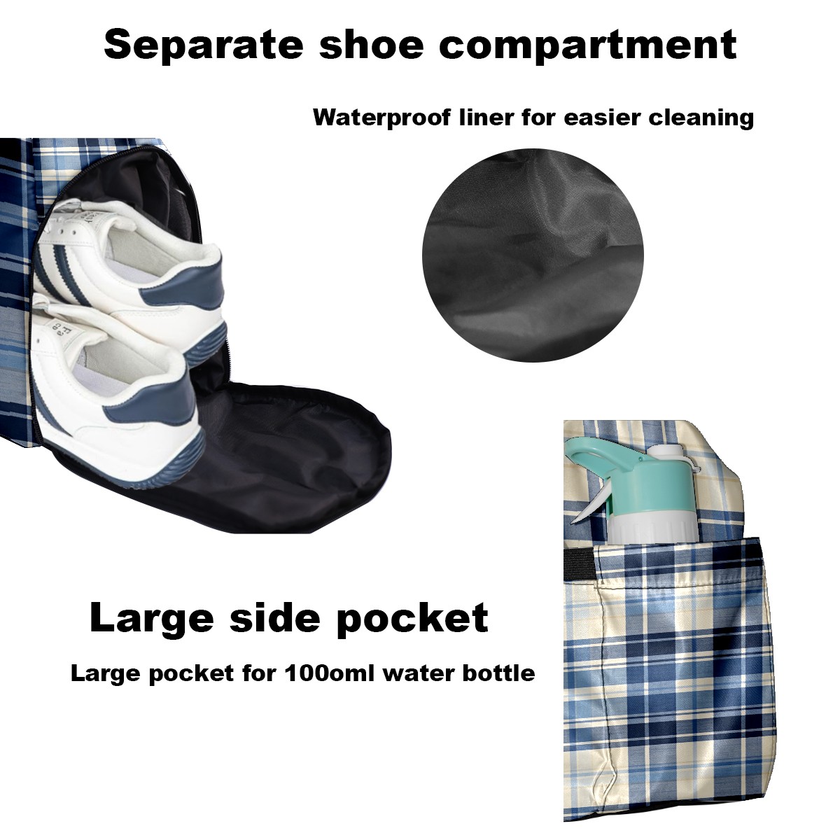 <p>Multifunctional Gym Travel Bag Made of Twill Fabric 22cm x 48cm x 35cm (8.7in x 18.9in x 13.8in) Made of lightweight and durable twill fabric, this bag is perfect for an active lifestyle. The spacious main compartment easily holds clothing, towels, and a full set of gym gear. A smart pocket precisely stores your phone, earphones, and gym membership card. A ventilated shoe compartment can hold size 10 athletic shoes, and a waterproof wet bag isolates swimwear or sweaty clothing, effectively preventing odors and clutter. It's a professional gym bag suitable for spinning and strength training, a stylish everyday handbag, and can also meet diverse needs such as pickleball, weekend trips, and overnight stays. Combining functionality and style, it seamlessly integrates into various scenarios.<br></p>