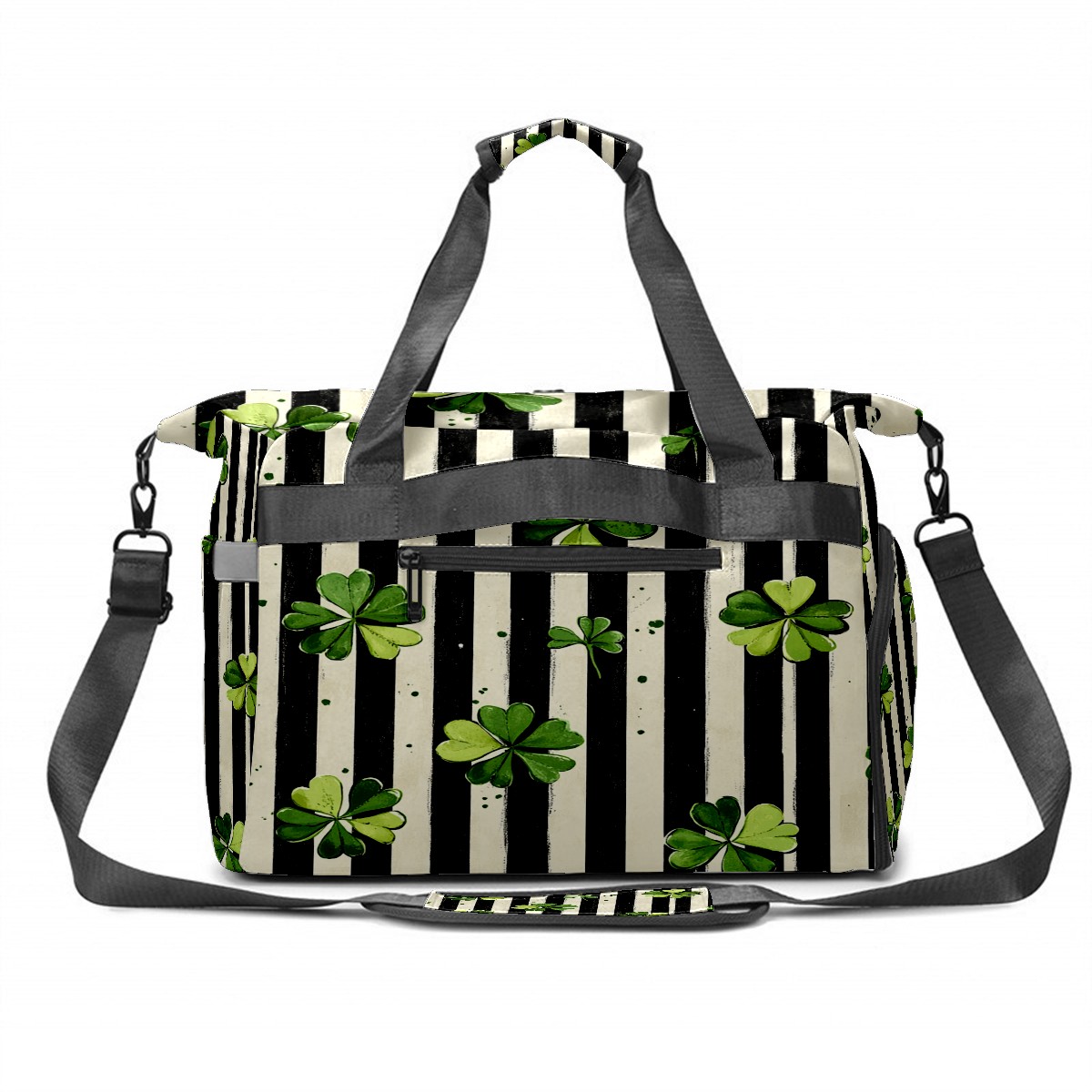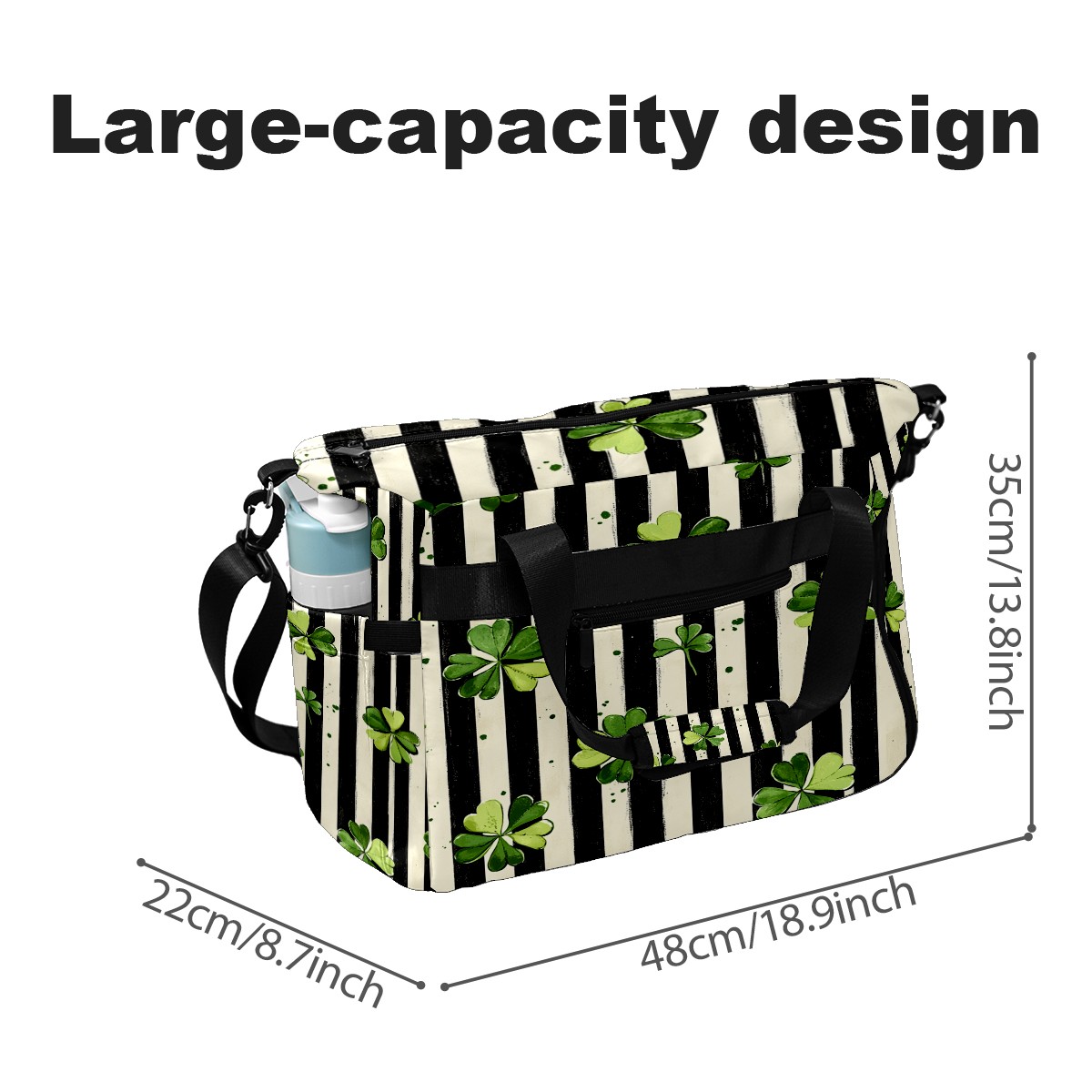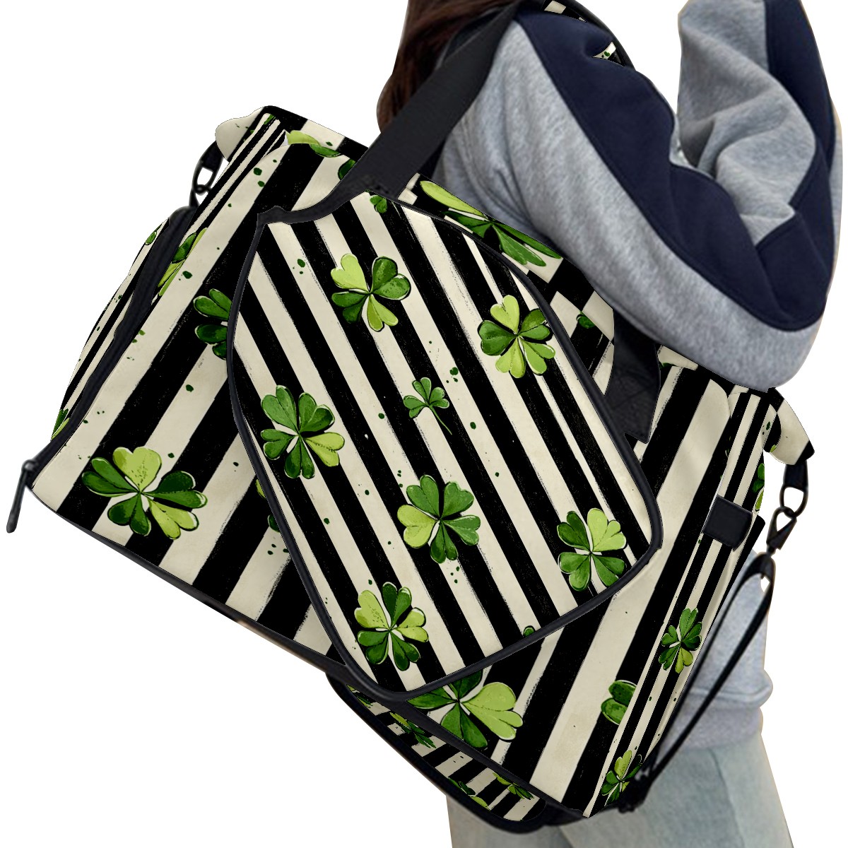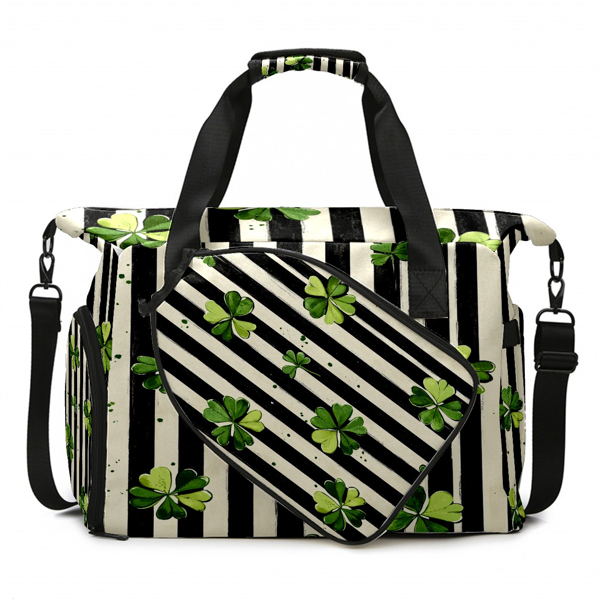 Lightweight Pickleball Tote Bag with Large Capacity, Shoe Compartment, Large Paddle Storage, Water Bottle Holder & Fence Hook for Women & Men Striped Clover Pattern3