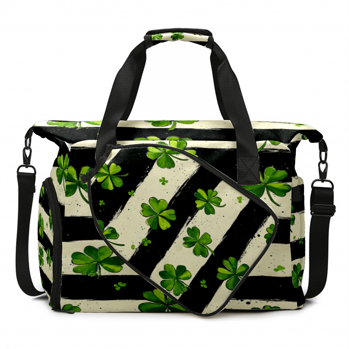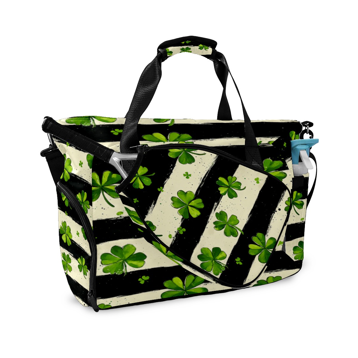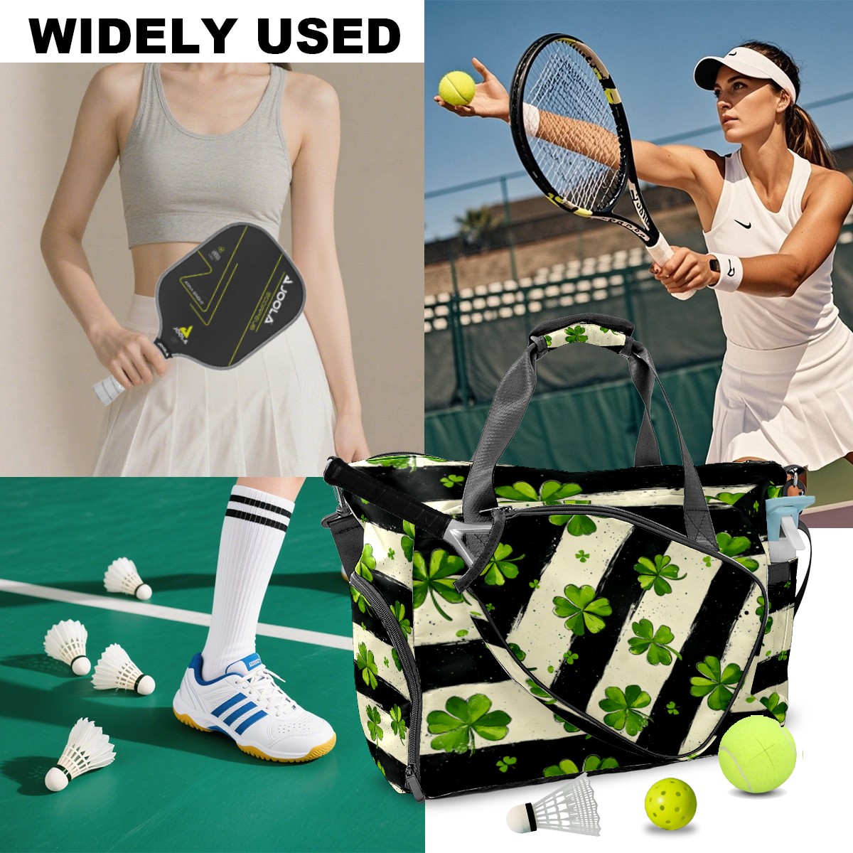 Lightweight Pickleball Tote Bag with Large Capacity, Shoe Compartment, Large Paddle Storage, Water Bottle Holder & Fence Hook for Women & Men Striped Clover Pattern4