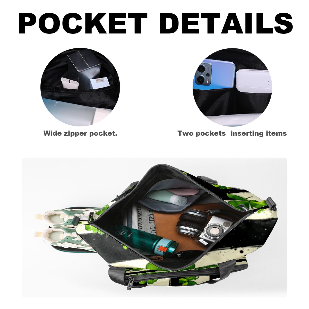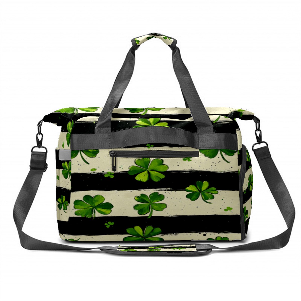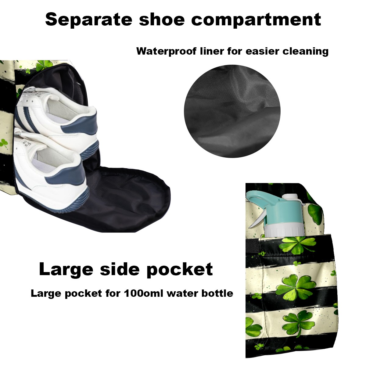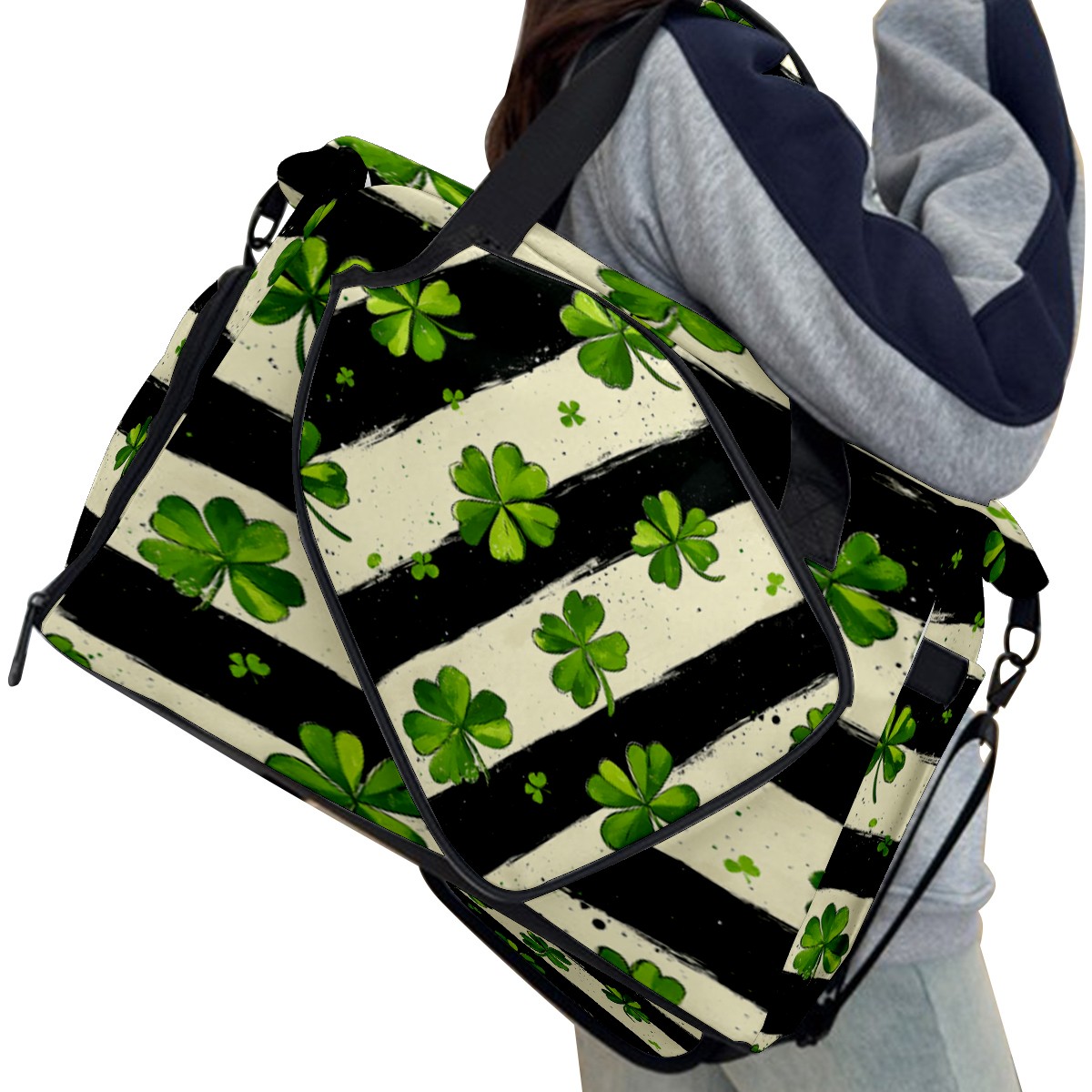 Lightweight Pickleball Tote Bag with Large Capacity, Shoe Compartment, Large Paddle Storage, Water Bottle Holder & Fence Hook for Women & Men Striped Clover Pattern4