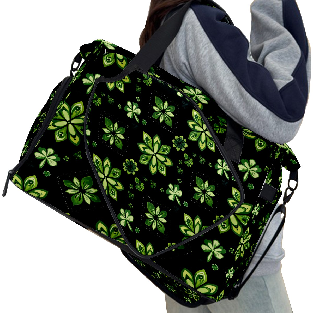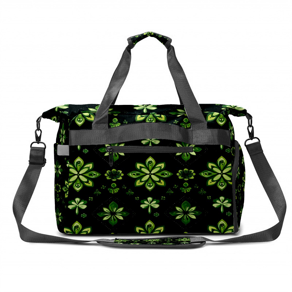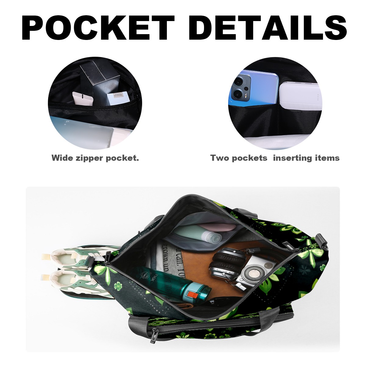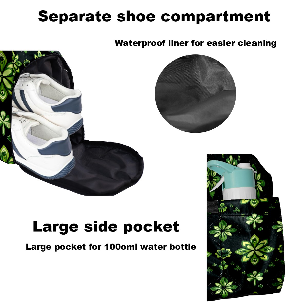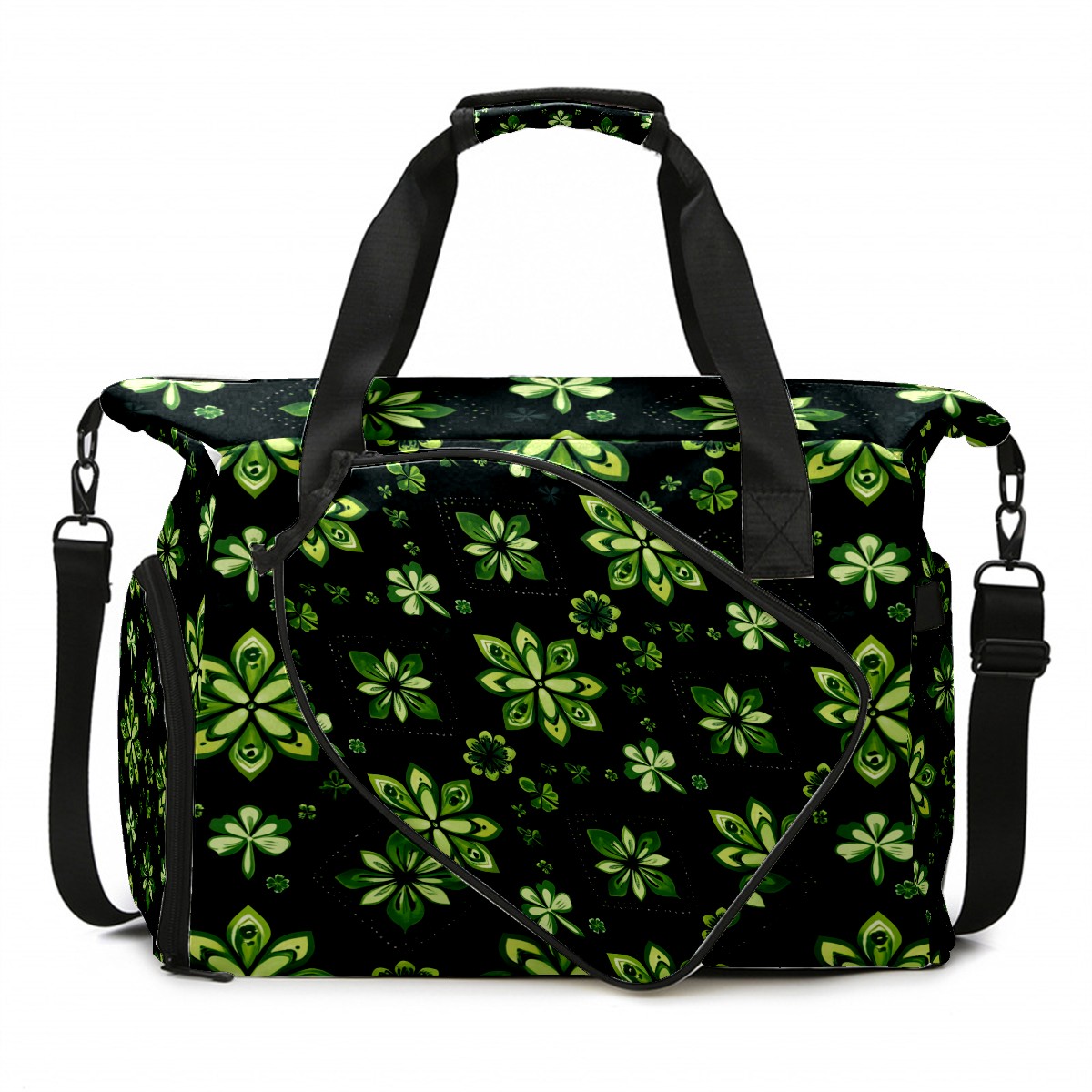 Lightweight Pickleball Tote Bag with Large Capacity, Shoe Compartment, Large Paddle Storage, Water Bottle Holder & Fence Hook for Women & Men Green Clover Pattern