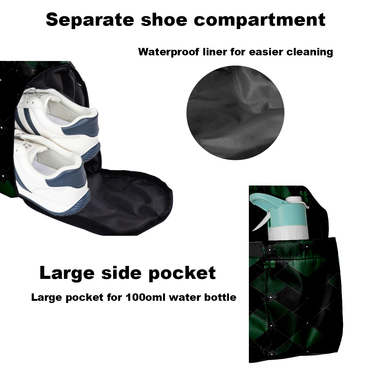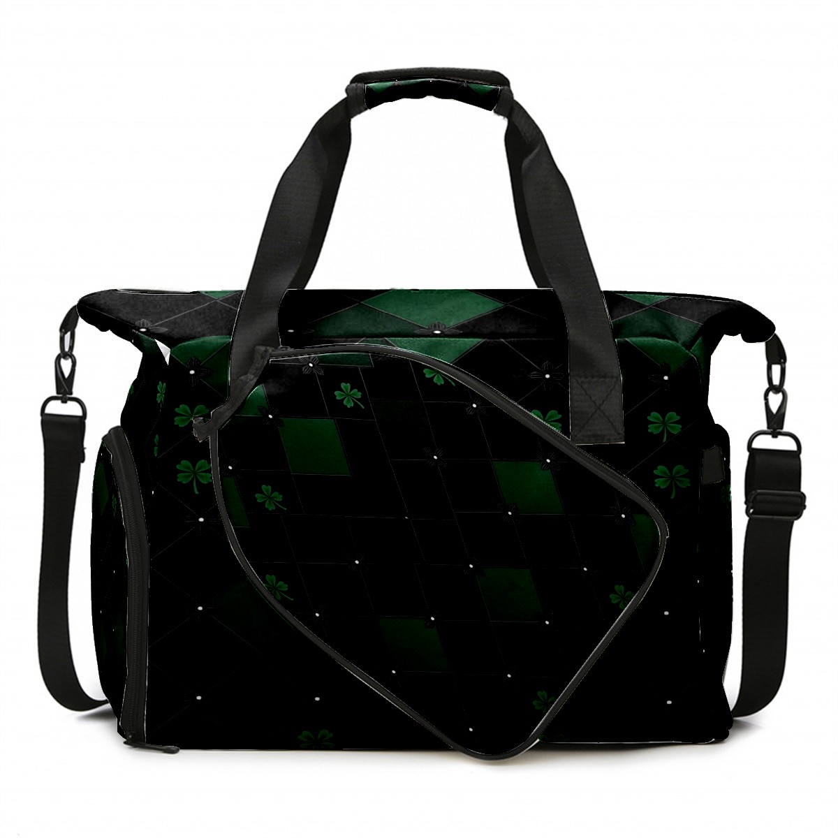 Lightweight Pickleball Tote Bag with Large Capacity, Shoe Compartment, Large Paddle Storage, Water Bottle Holder & Fence Hook for Women & Men Green Clover Pattern5