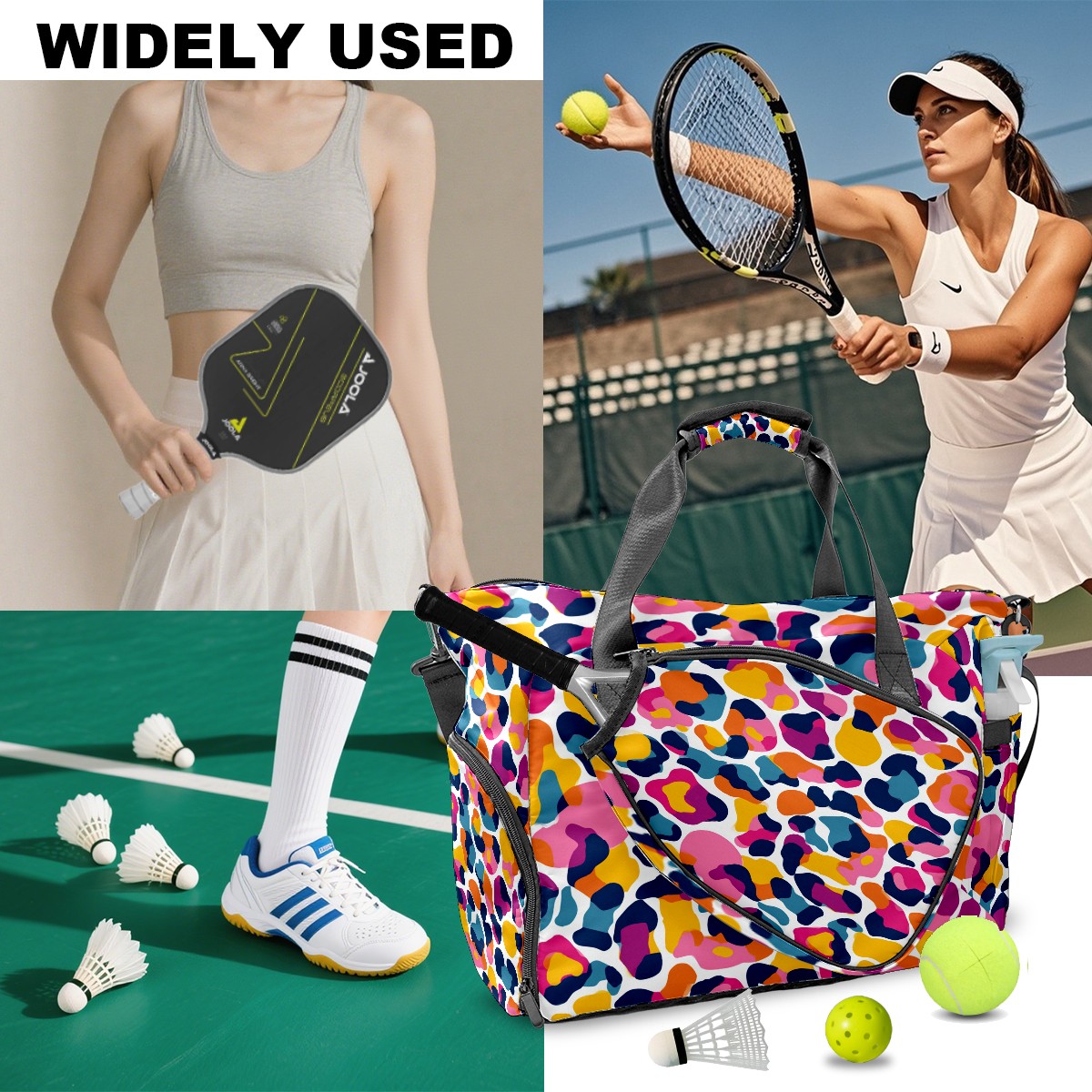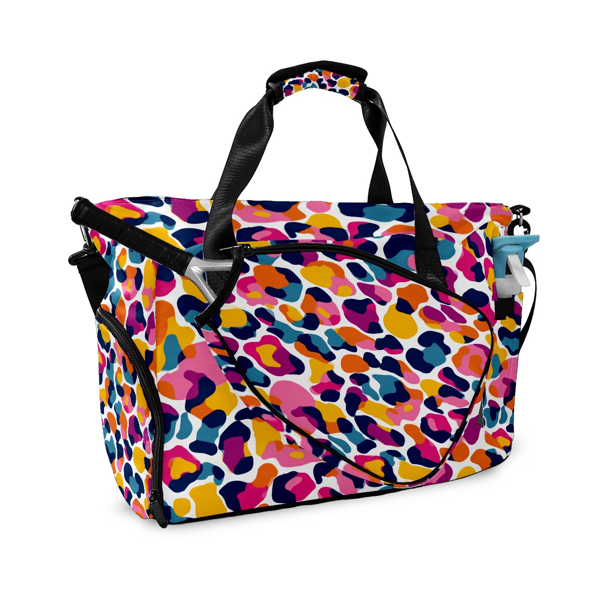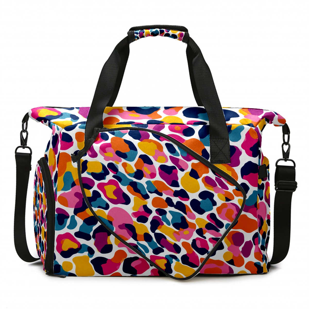 Lightweight Pickleball Tote Bag with Large Capacity, Shoe Compartment, Large Paddle Storage, Water Bottle Holder & Fence Hook for Women & Men Colorful Geometry Multi