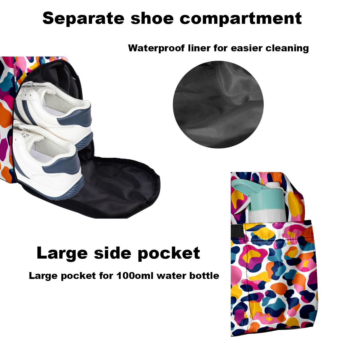 • <p>Multifunctional Gym Travel Bag Made of Twill Fabric 22cm x 48cm x 35cm (8.7in x 18.9in x 13.8in) Made of lightweight and durable twill fabric, this bag is perfect for an active lifestyle. The spacious main compartment easily holds clothing, towels, and a full set of gym gear. A smart pocket precisely stores your phone, earphones, and gym membership card. A ventilated shoe compartment can hold size 10 athletic shoes, and a waterproof wet bag isolates swimwear or sweaty clothing, effectively preventing odors and clutter. It's a professional gym bag suitable for spinning and strength training, a stylish everyday handbag, and can also meet diverse needs such as pickleball, weekend trips, and overnight stays. Combining functionality and style, it seamlessly integrates into various scenarios.<br></p>