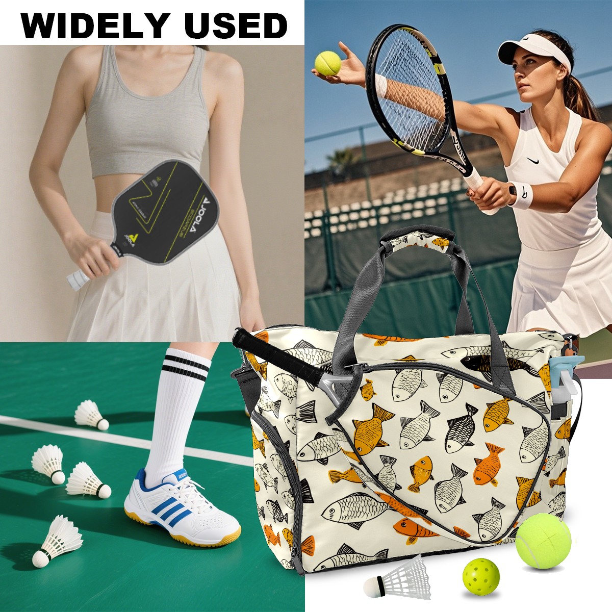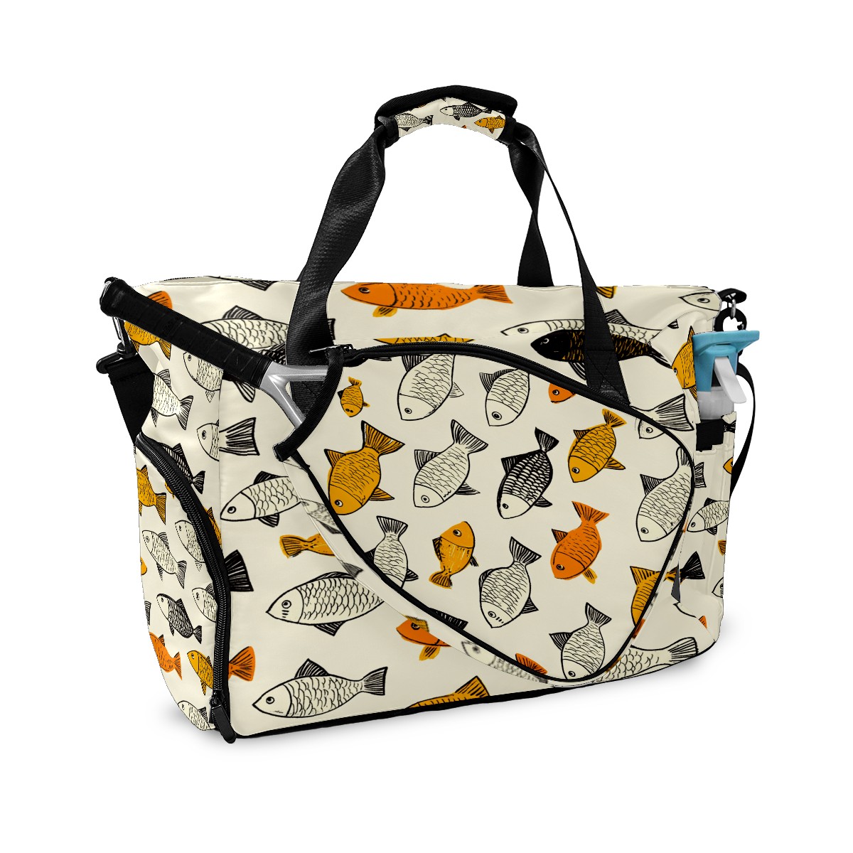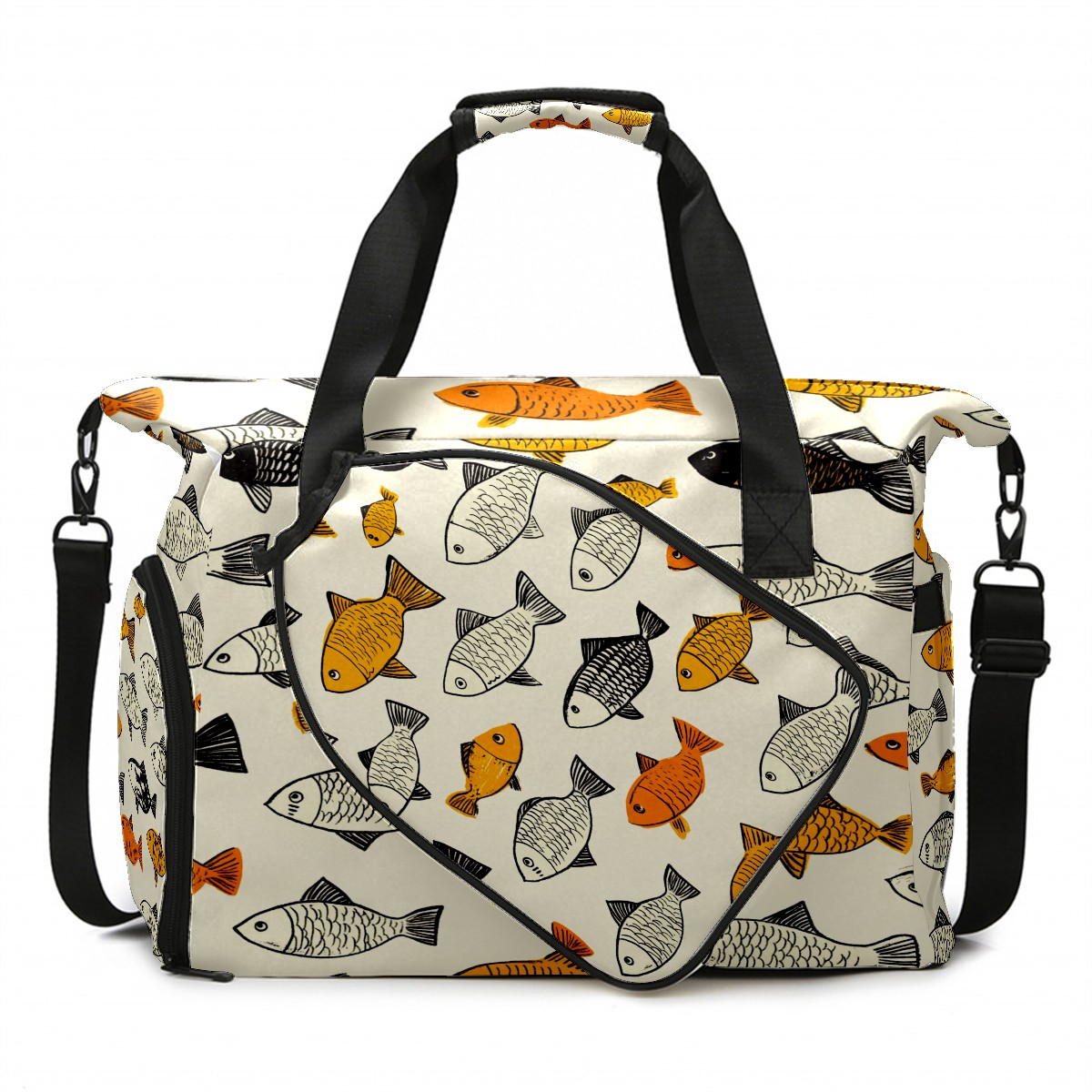 Lightweight Pickleball Tote Bag with Large Capacity, Shoe Compartment, Large Paddle Storage, Water Bottle Holder & Fence Hook for Women & Men School Of Fish