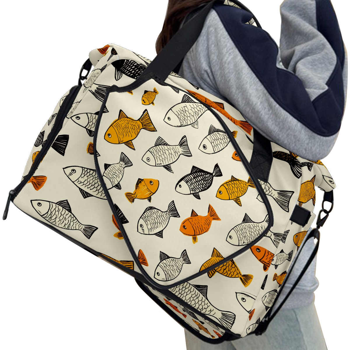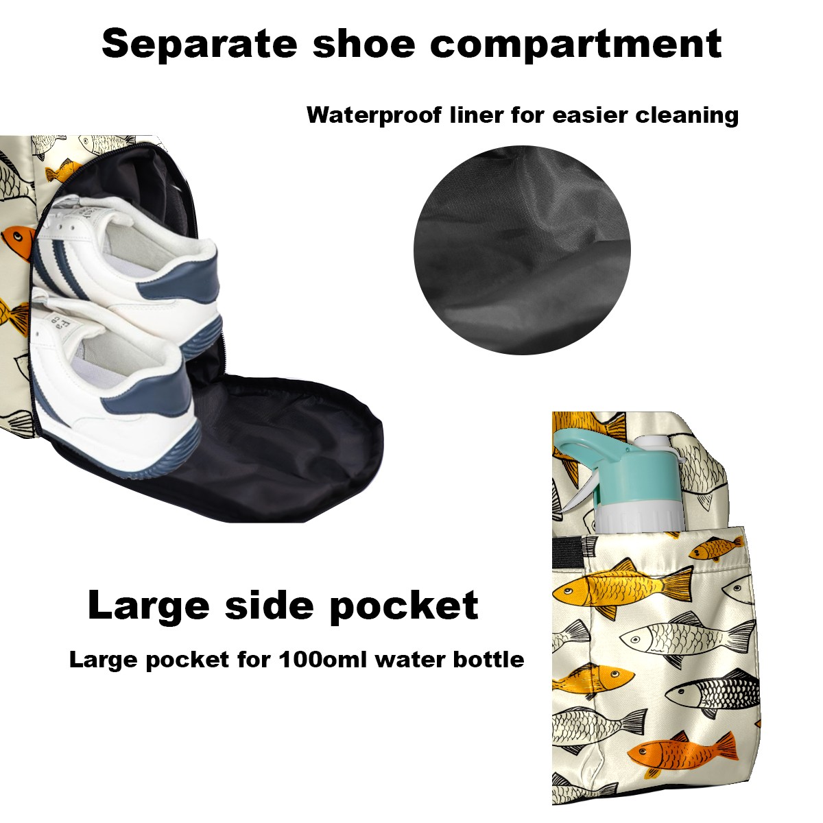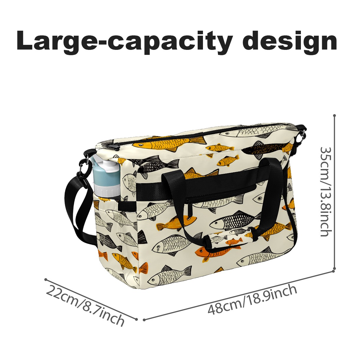Lightweight Pickleball Tote Bag with Large Capacity, Shoe Compartment, Large Paddle Storage, Water Bottle Holder & Fence Hook for Women & Men School Of Fish