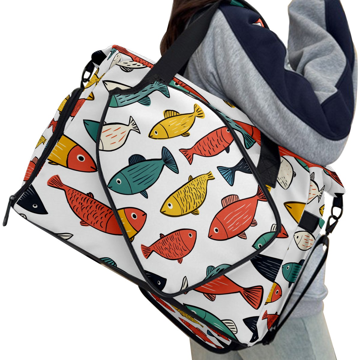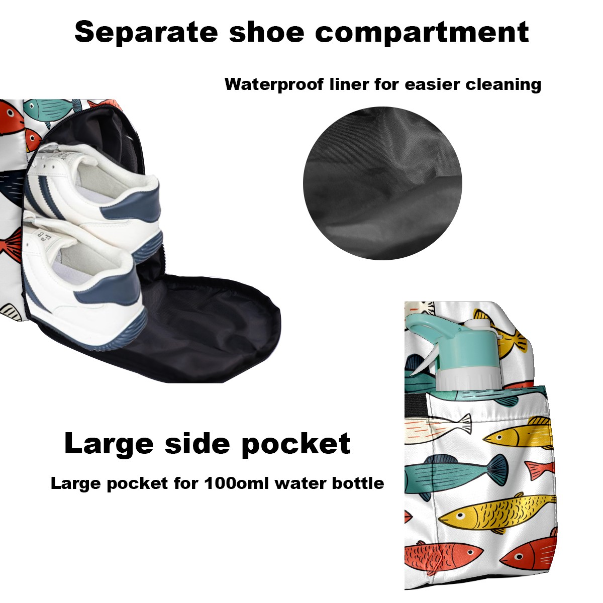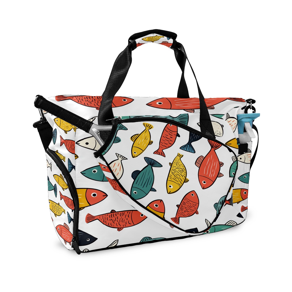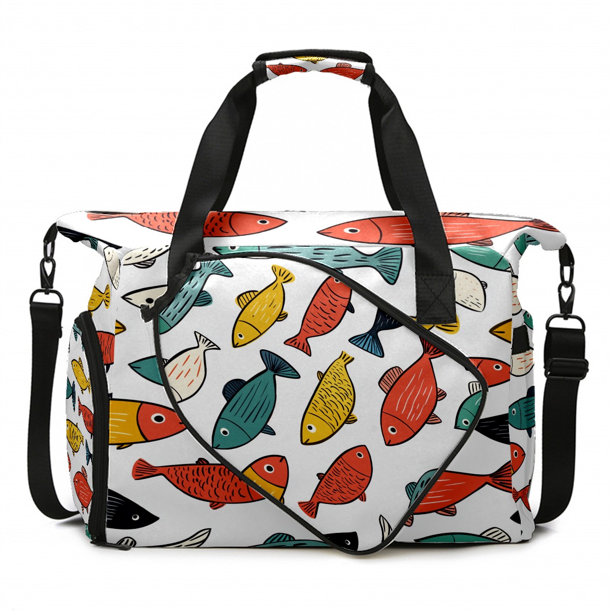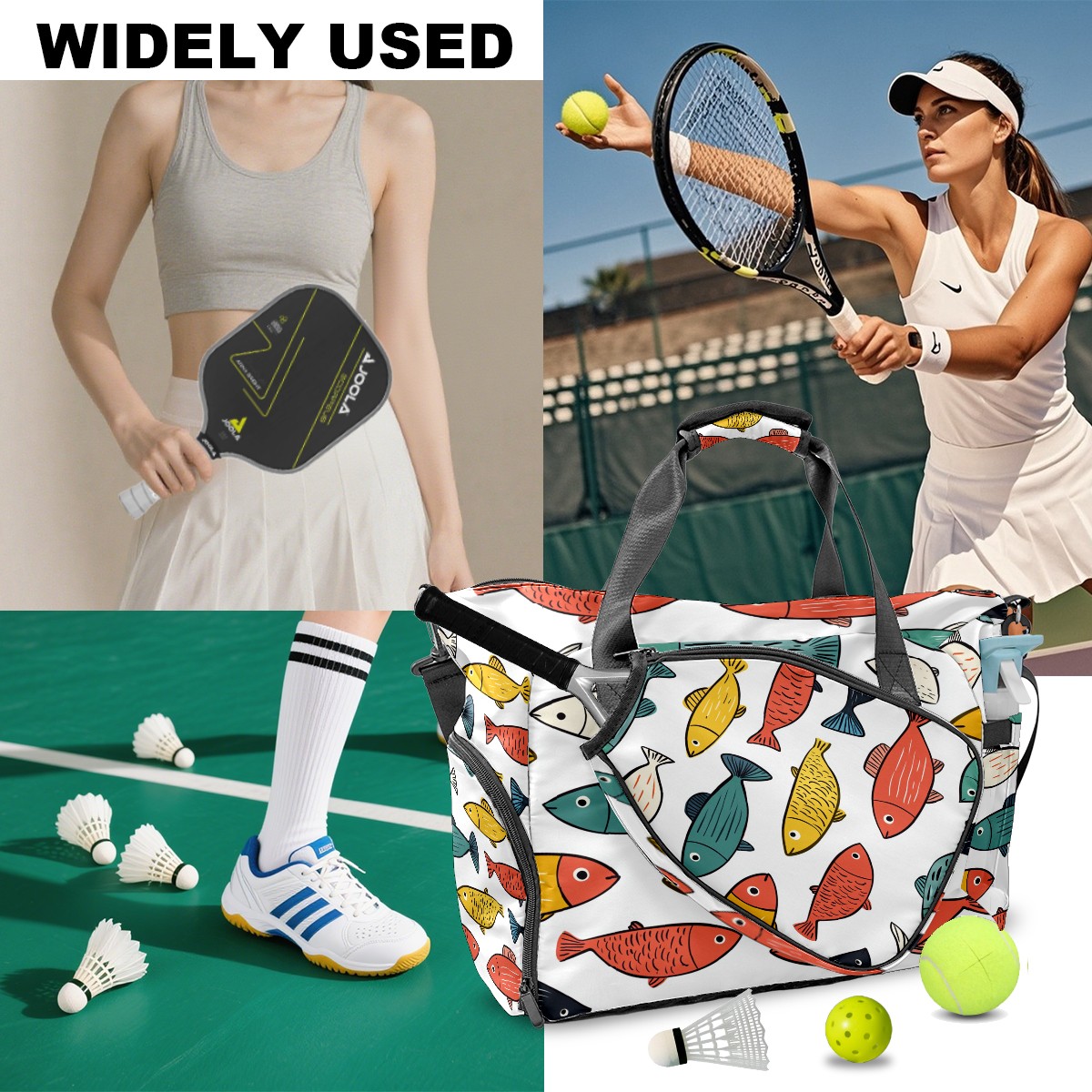 Lightweight Pickleball Tote Bag with Large Capacity, Shoe Compartment, Large Paddle Storage, Water Bottle Holder & Fence Hook for Women & Men School Of Fish 2