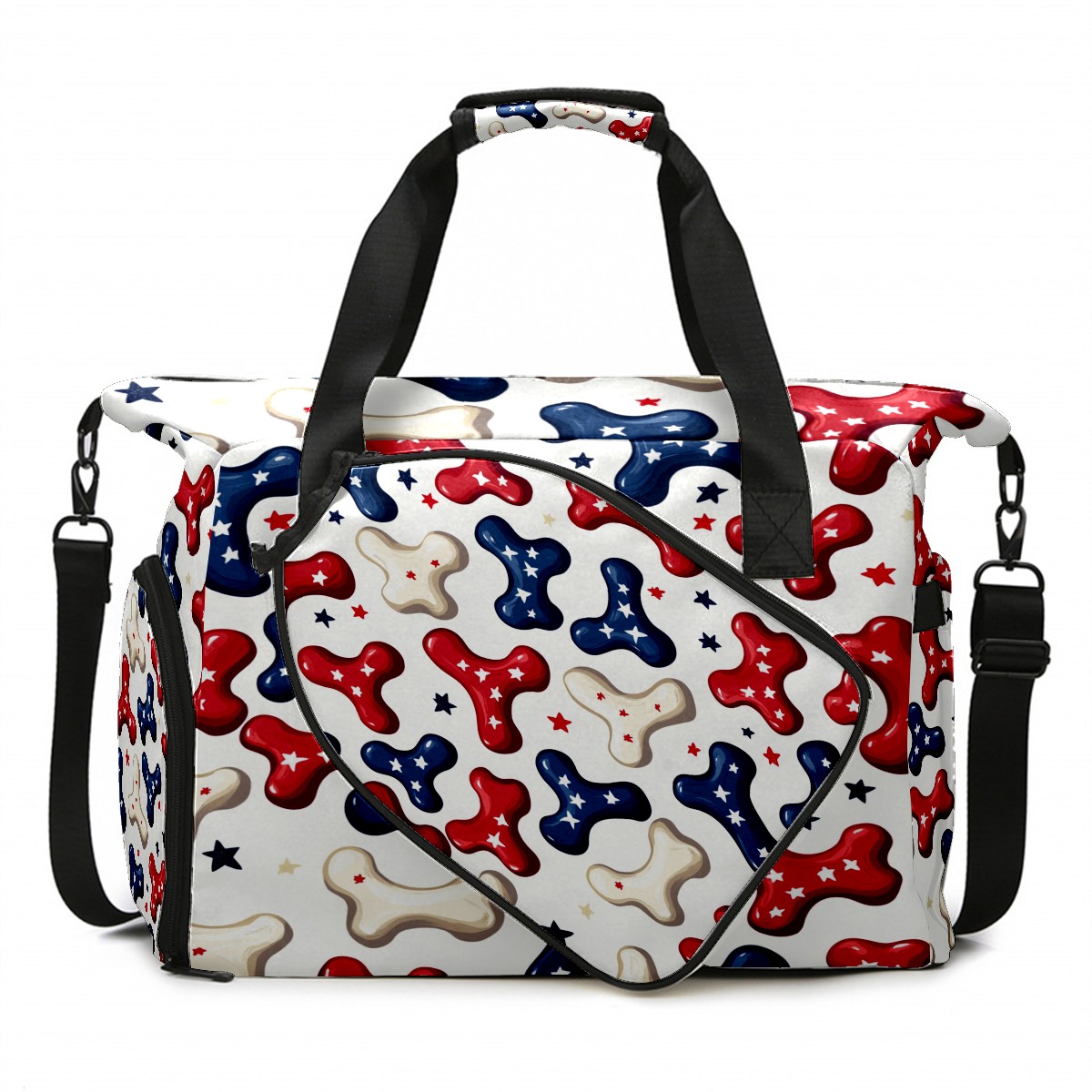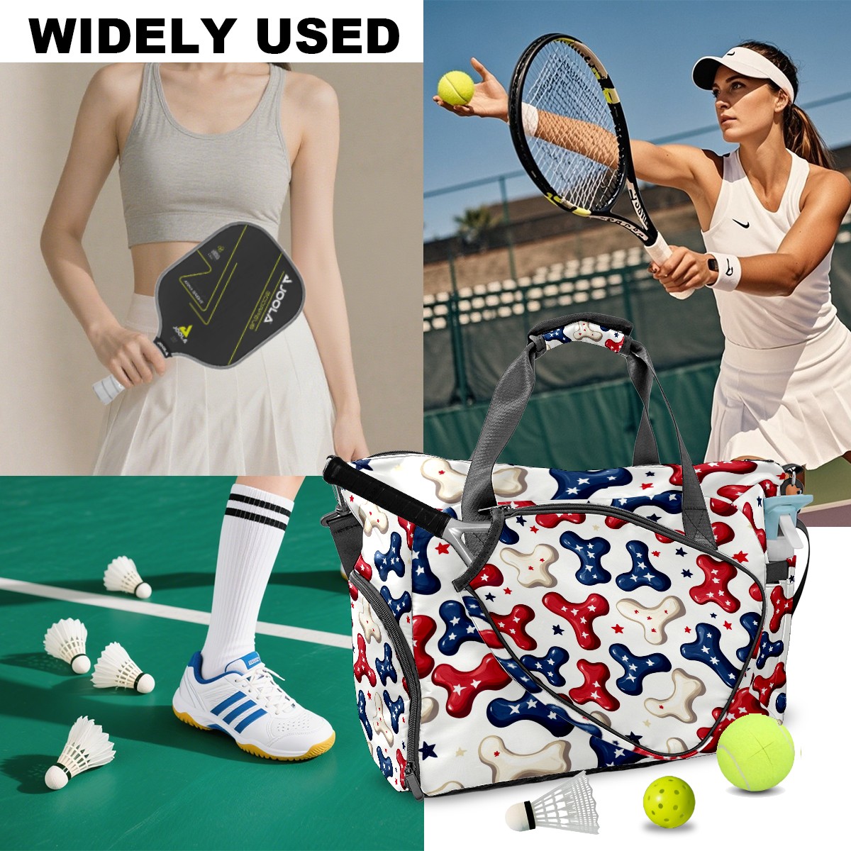 Lightweight Pickleball Tote Bag with Large Capacity, Shoe Compartment, Large Paddle Storage, Water Bottle Holder & Fence Hook for Women & Men Bone Star Pattern6