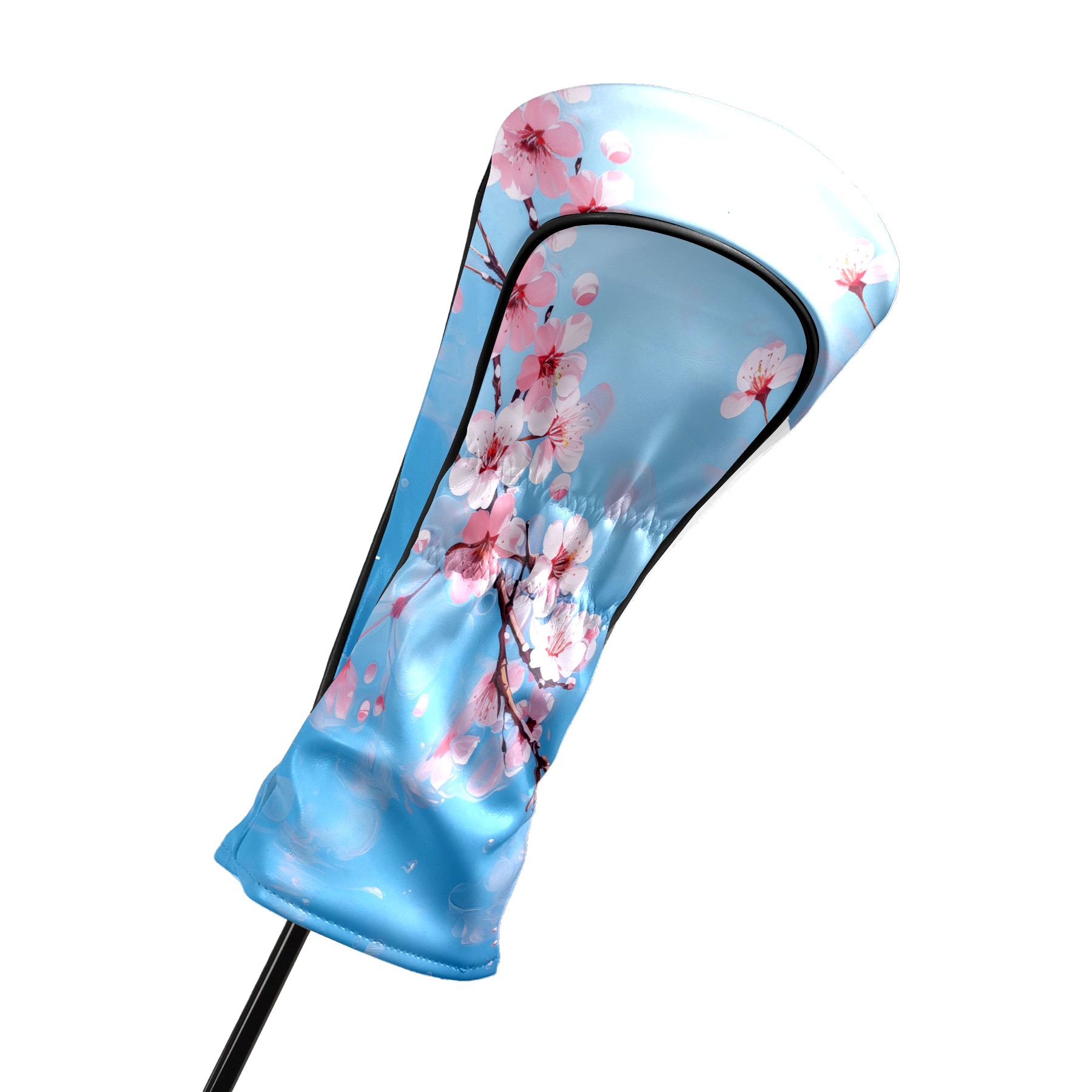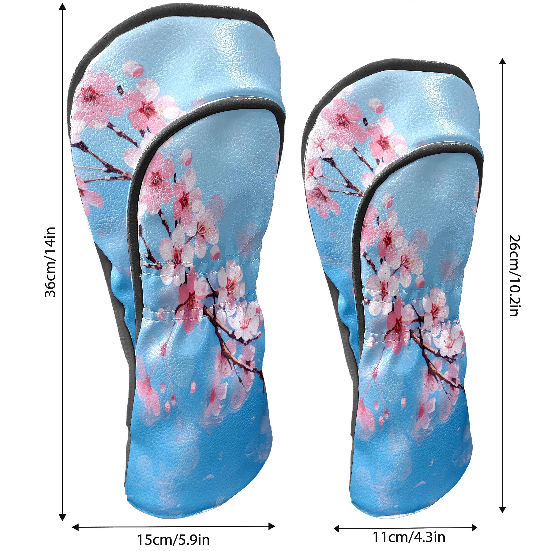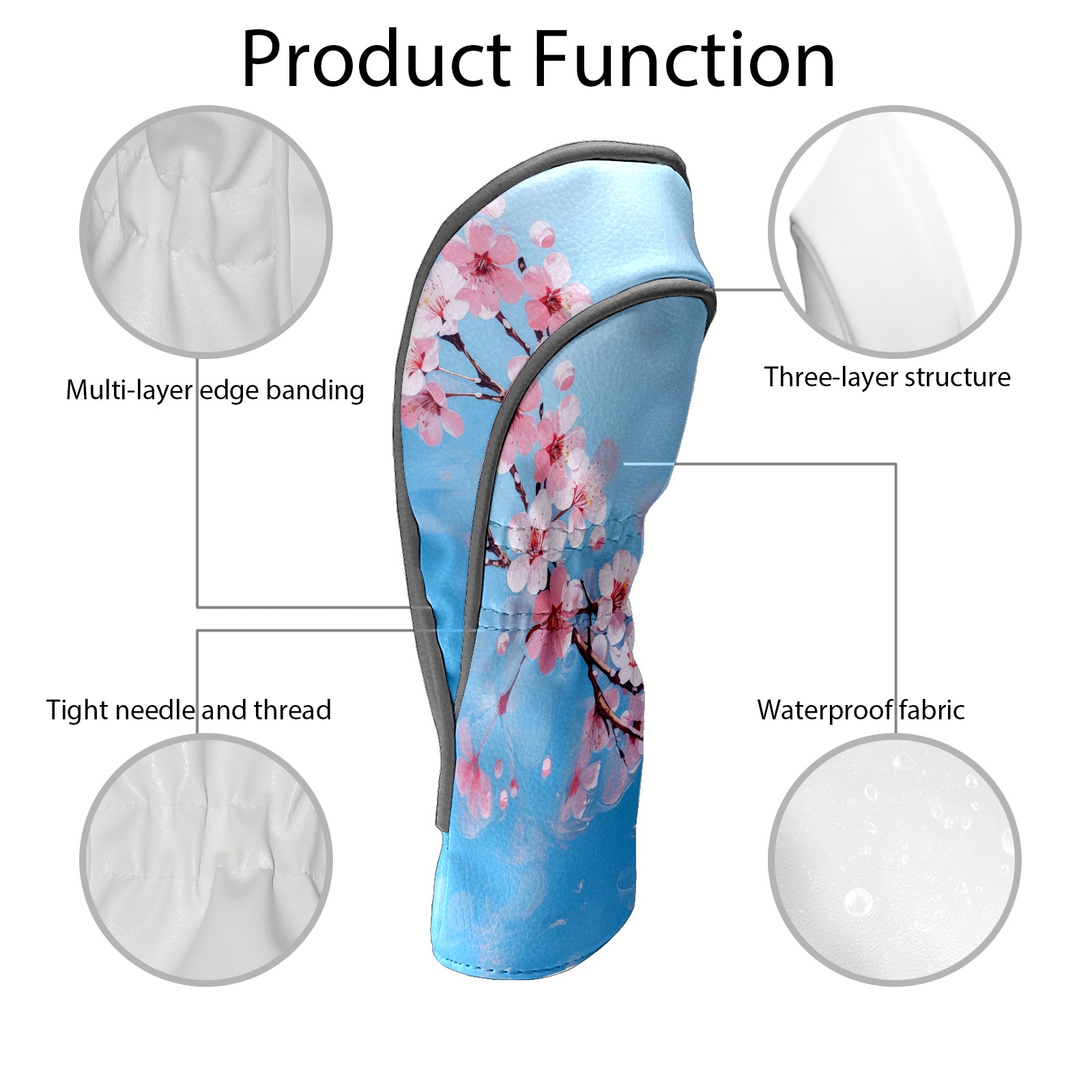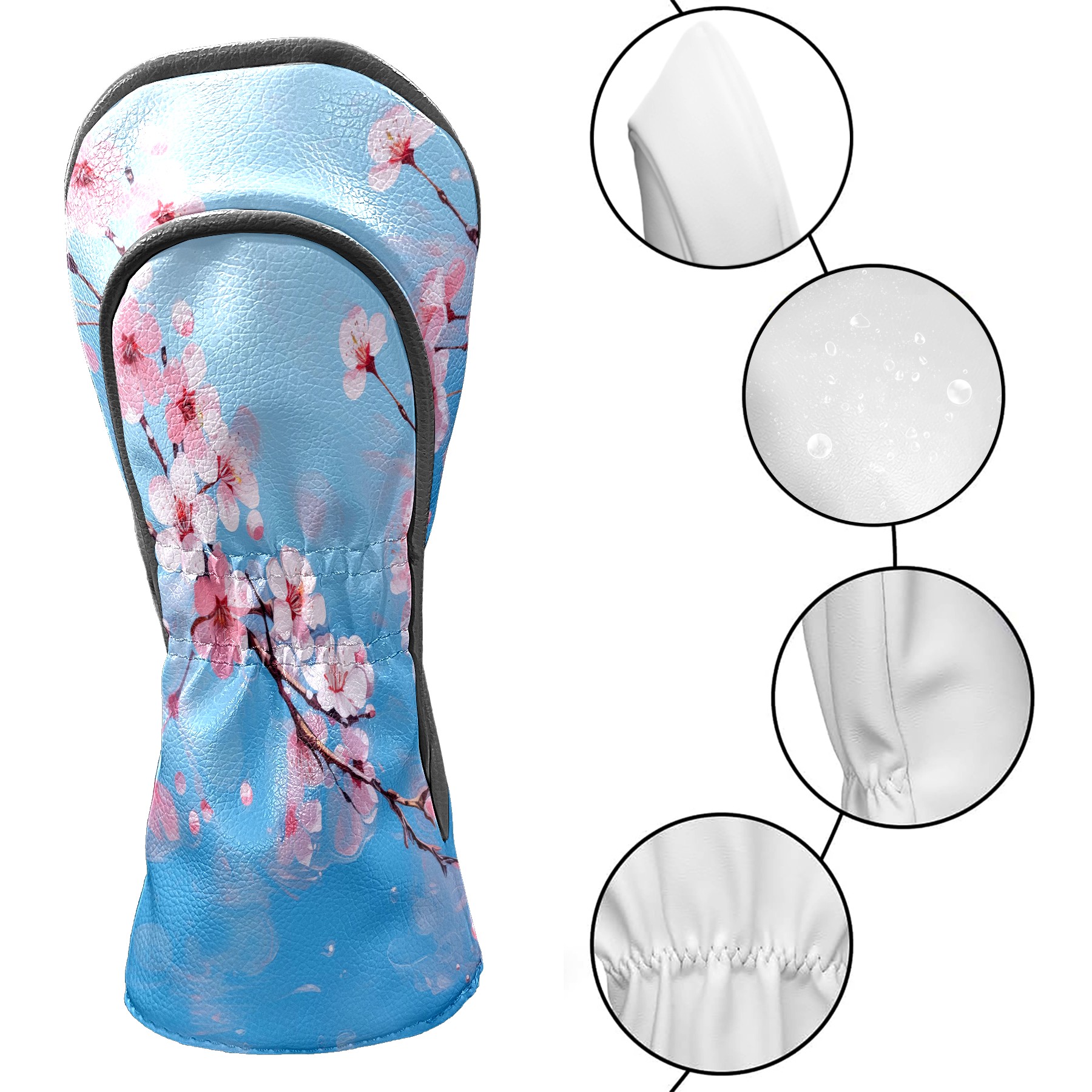 Golf Club Head Covers Premium Leather Driver Head Cover, Golf Head Covers for Woods and Driver Waterproof Golf Headcovers with Anti-Scratch Lining for Men Women (Cherry Blossom Branches)