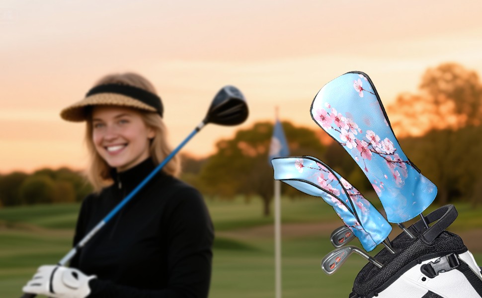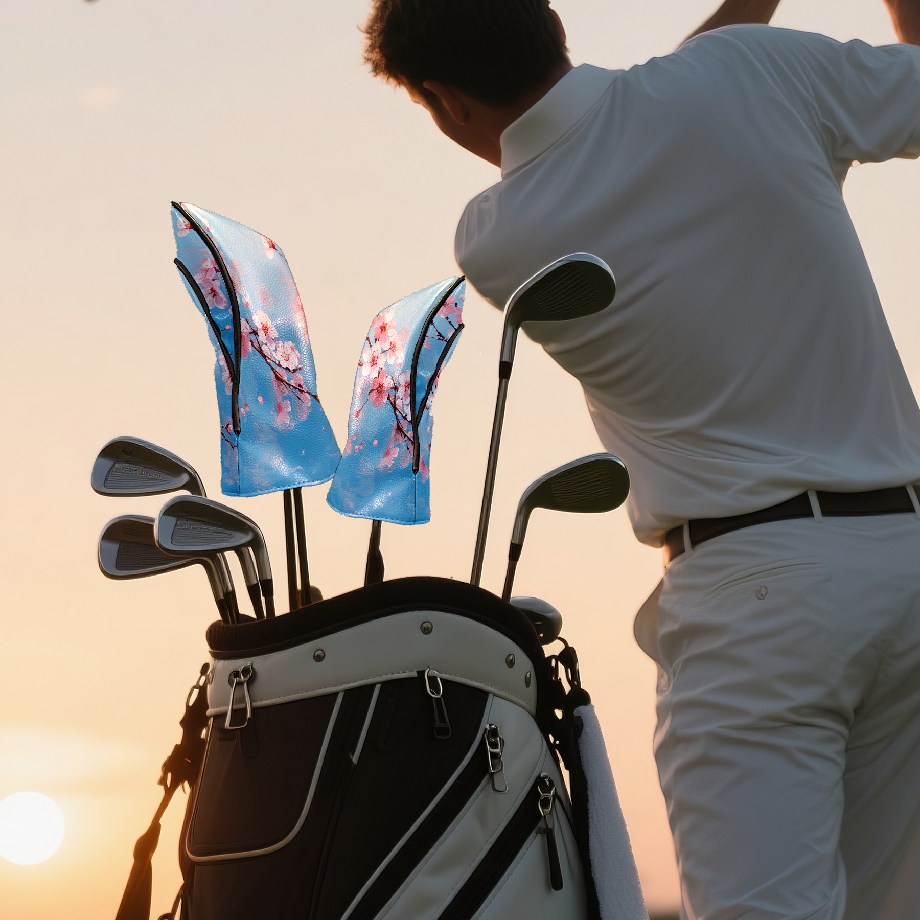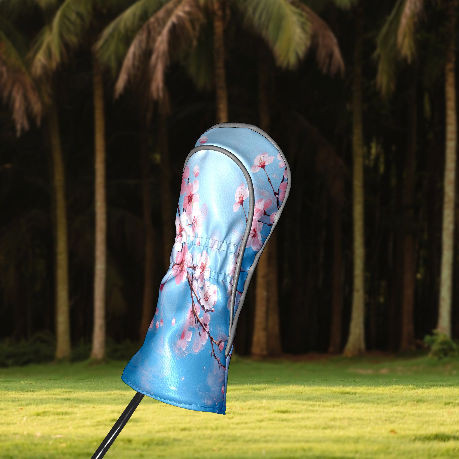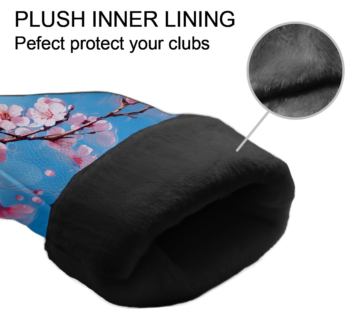 Golf Club Head Covers Premium Leather Driver Head Cover, Golf Head Covers for Woods and Driver Waterproof Golf Headcovers with Anti-Scratch Lining for Men Women (Cherry Blossom Branches)