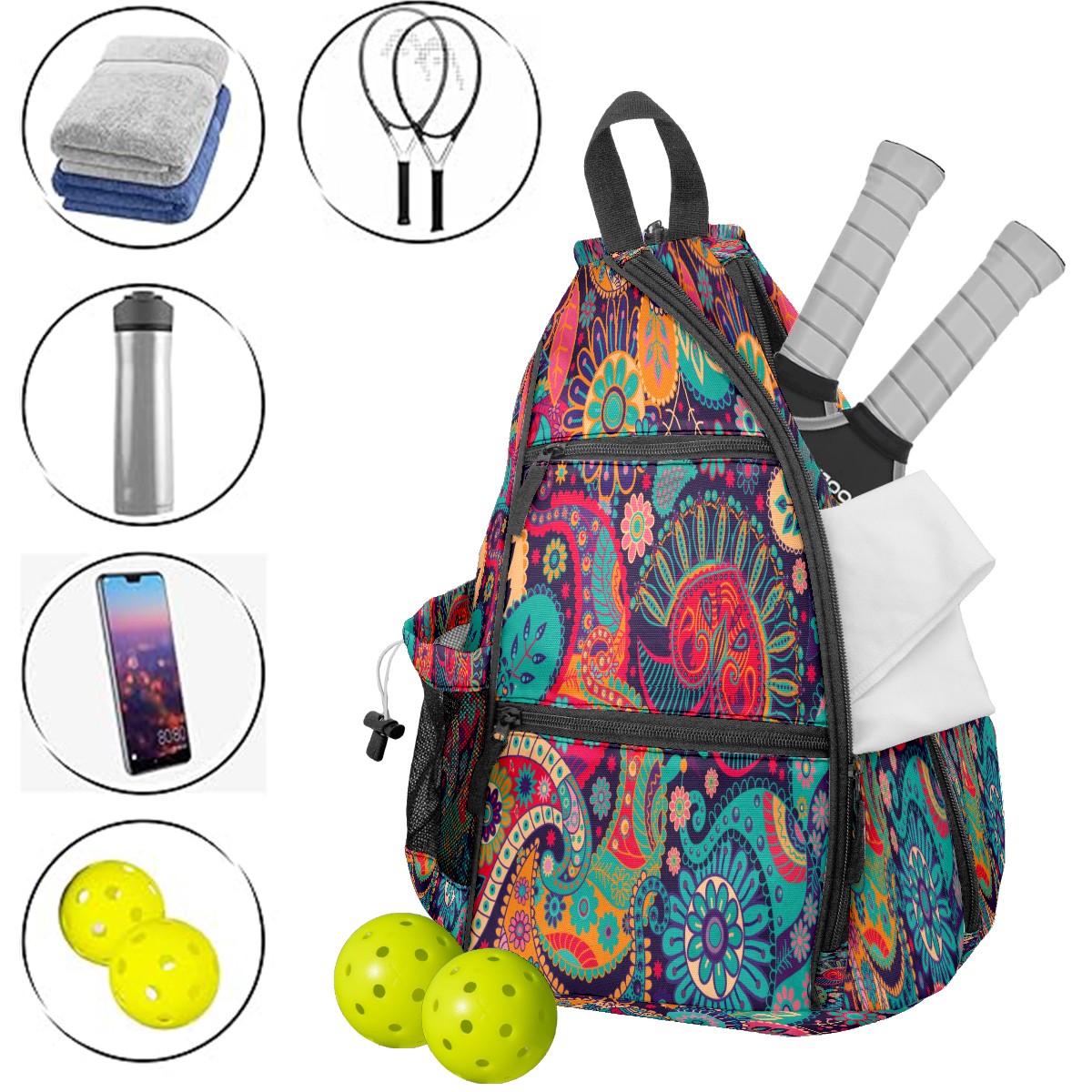 <p>If you’re tired of juggling scattered pickleball gear, or settling for a one-note sports bag that only works on the court — this <strong>exclusive original pickleball backpack</strong> made for you.</p><p><strong>Spacious Pickleball Storage</strong>: Fits 2 pickleball paddles + full game gear, no extra bags required</p><p><strong>Switchable Convertible Straps</strong>: 10-second switch between backpack/shoulder/crossbody, matches any activity</p><p><strong>Breathable &amp; Lightweight</strong>: No sticky sweat buildup, comfortable for long pickleball matches</p><p><strong>Exclusive Original Prints &amp; Durable</strong>: One-of-a-kind designs + scratch-resistant fabric, stylish &amp; long-lasting</p><p><strong>Multi-Scenario Versatile</strong>: Doubles as commute/short trip bag, 1 bag for all needs</p>